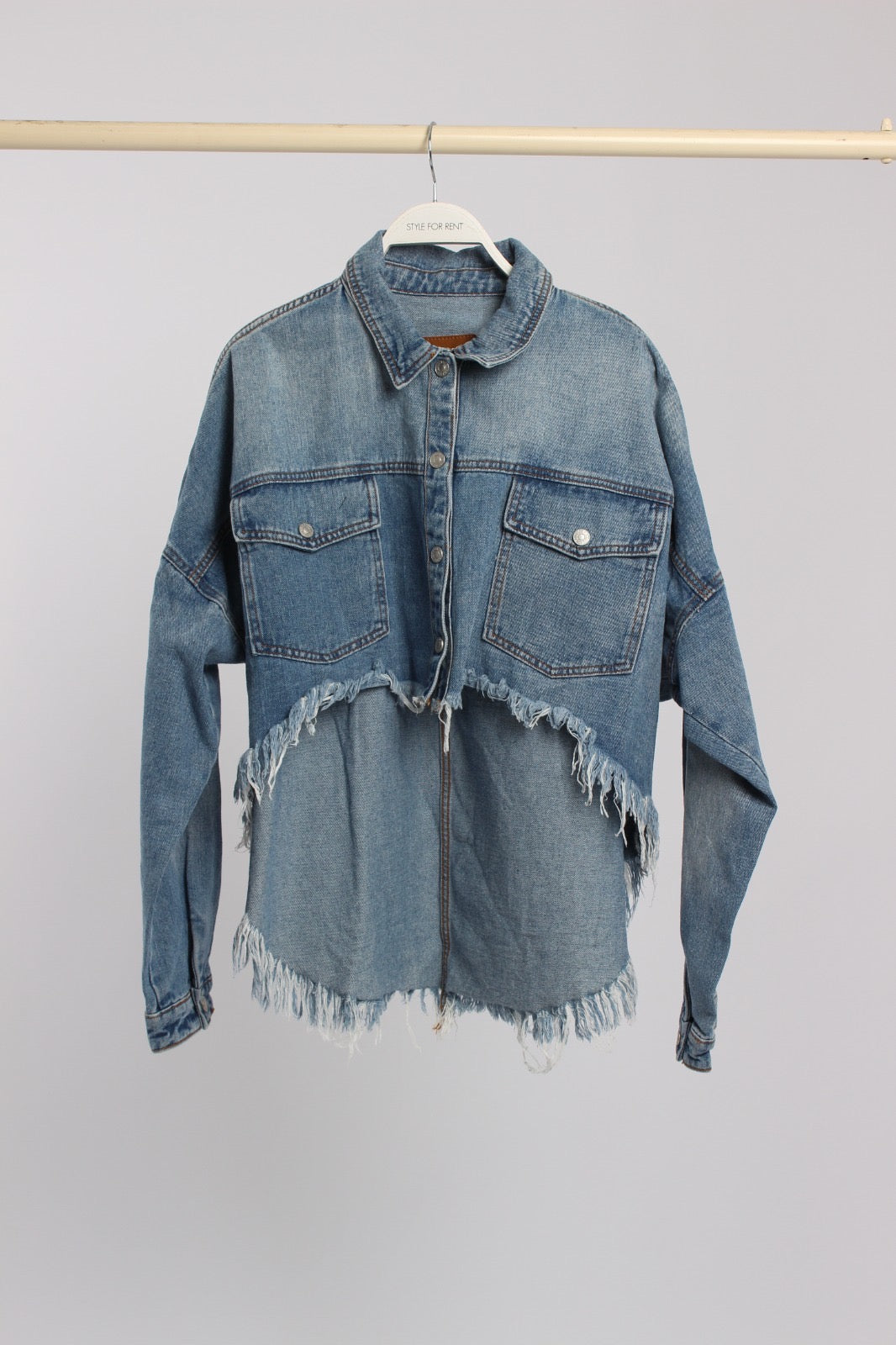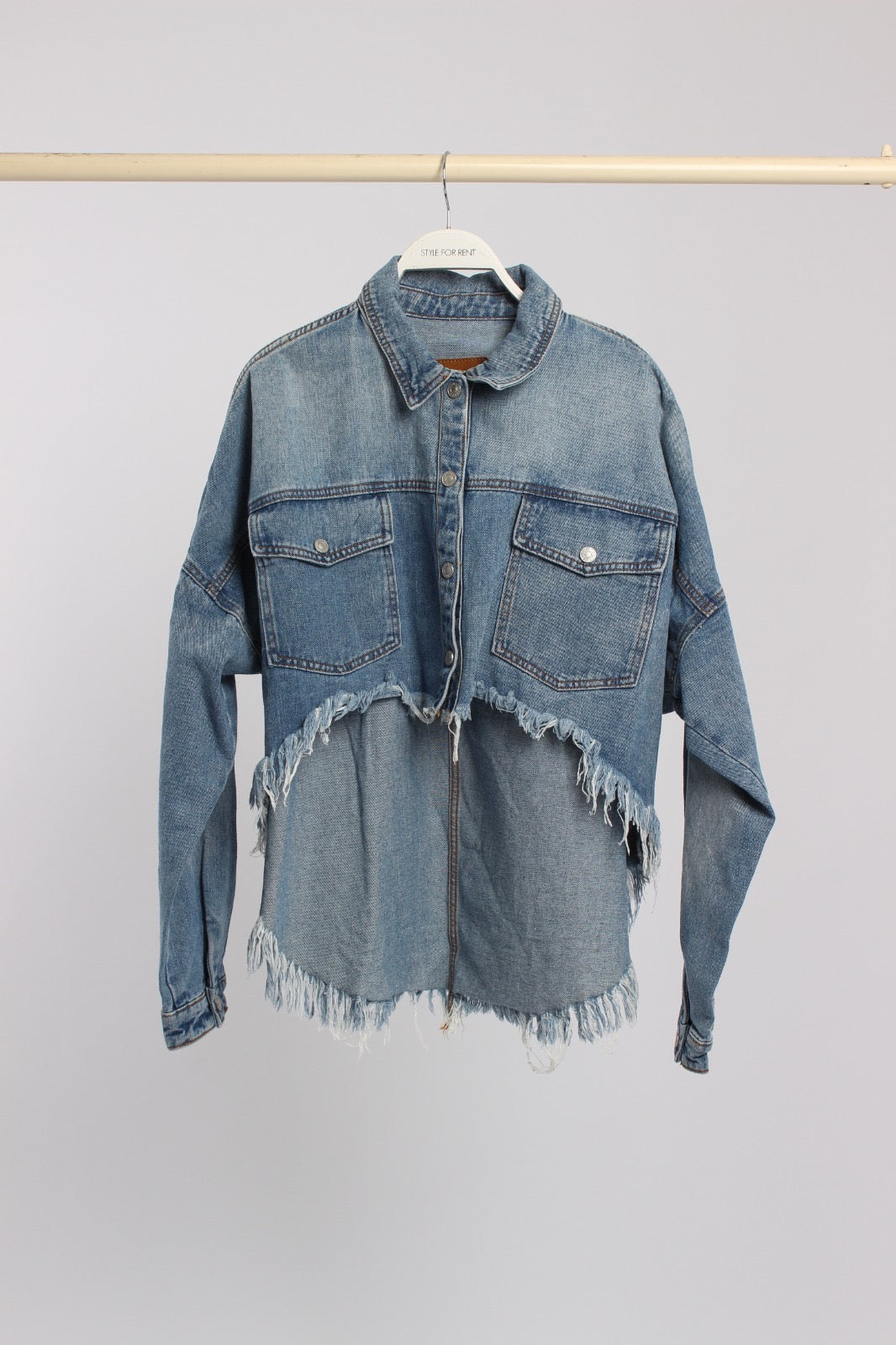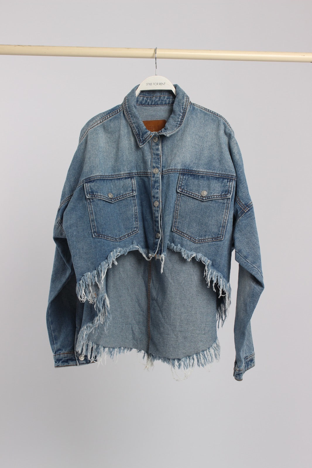 חולצת גינס קצרה בגזרת קרופמקדימה וארוך מאחור
