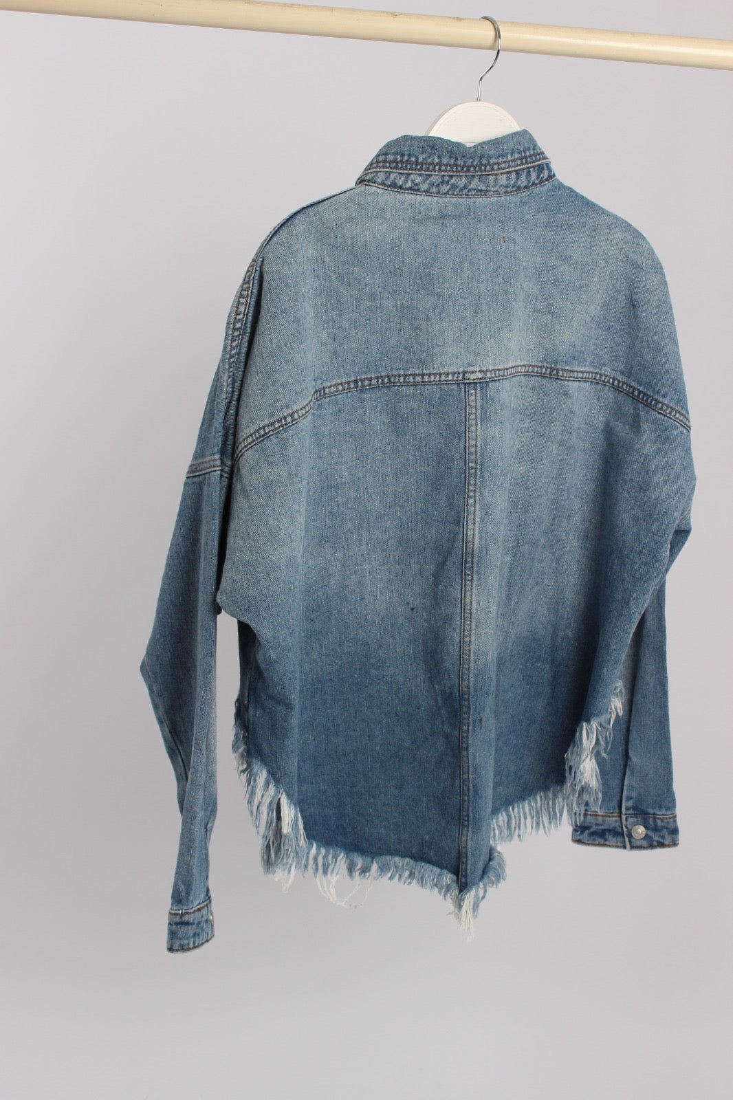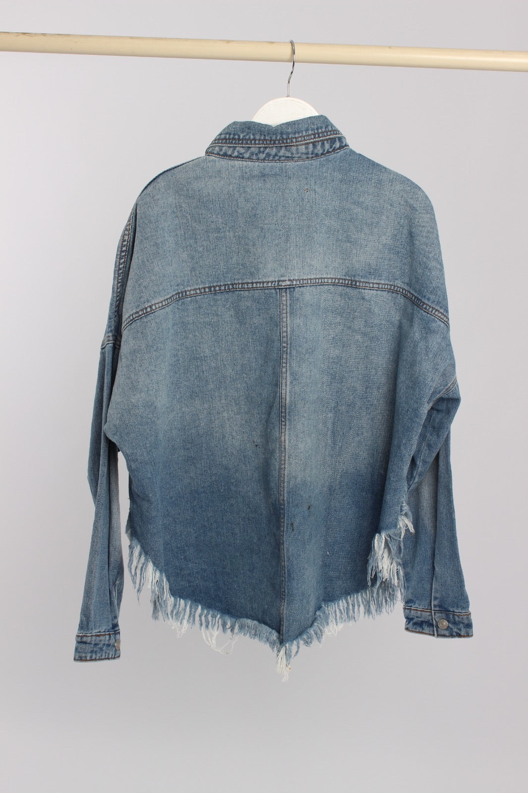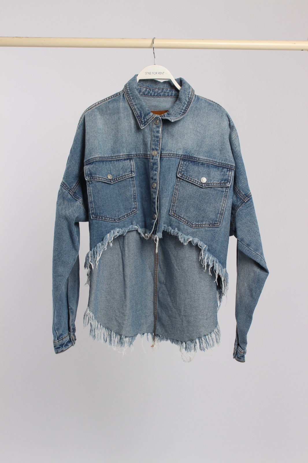 חולצת גינס קצרה בגזרת קרופמקדימה וארוך מאחור