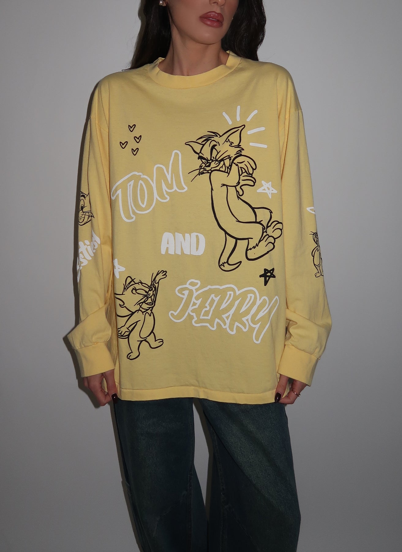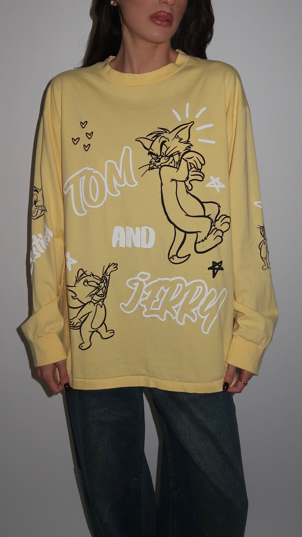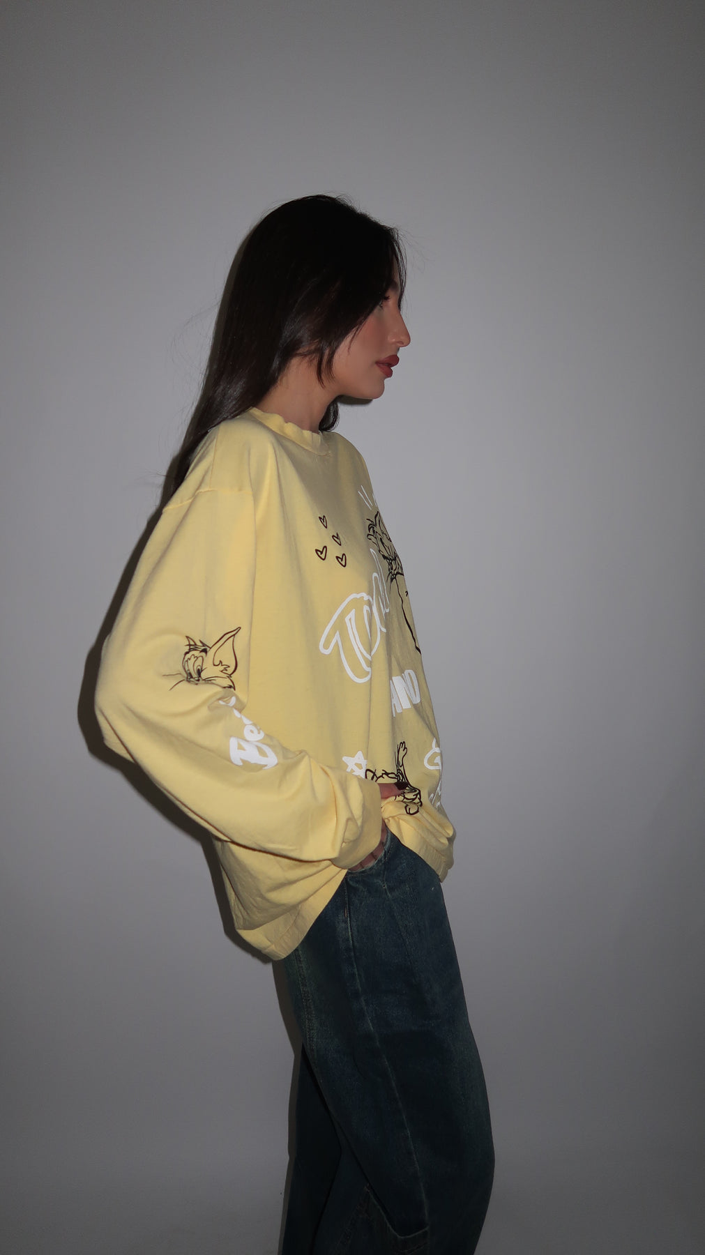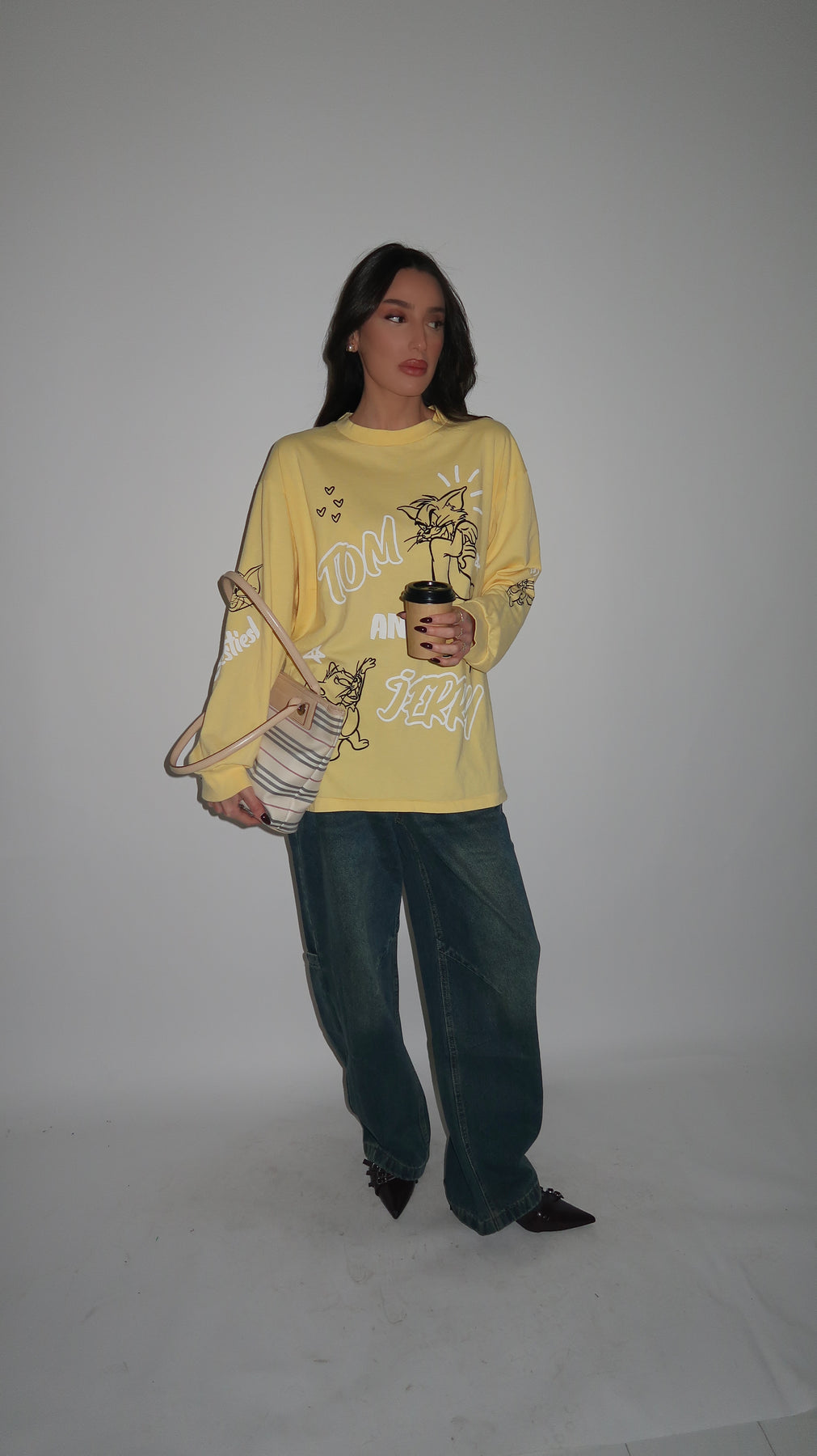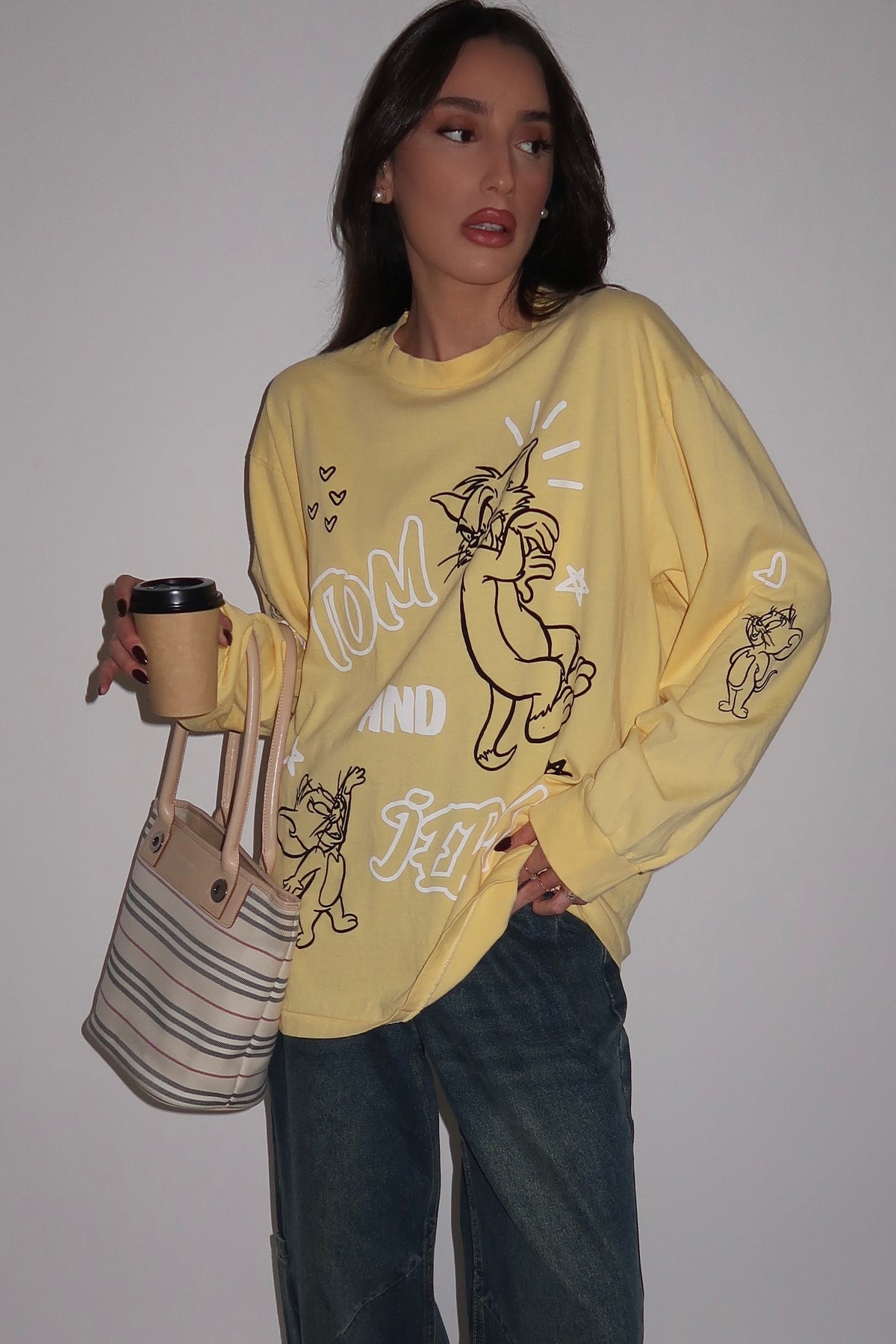 חולצה ארוכה אוברסייז עם הדפס מקדימה ומאחור