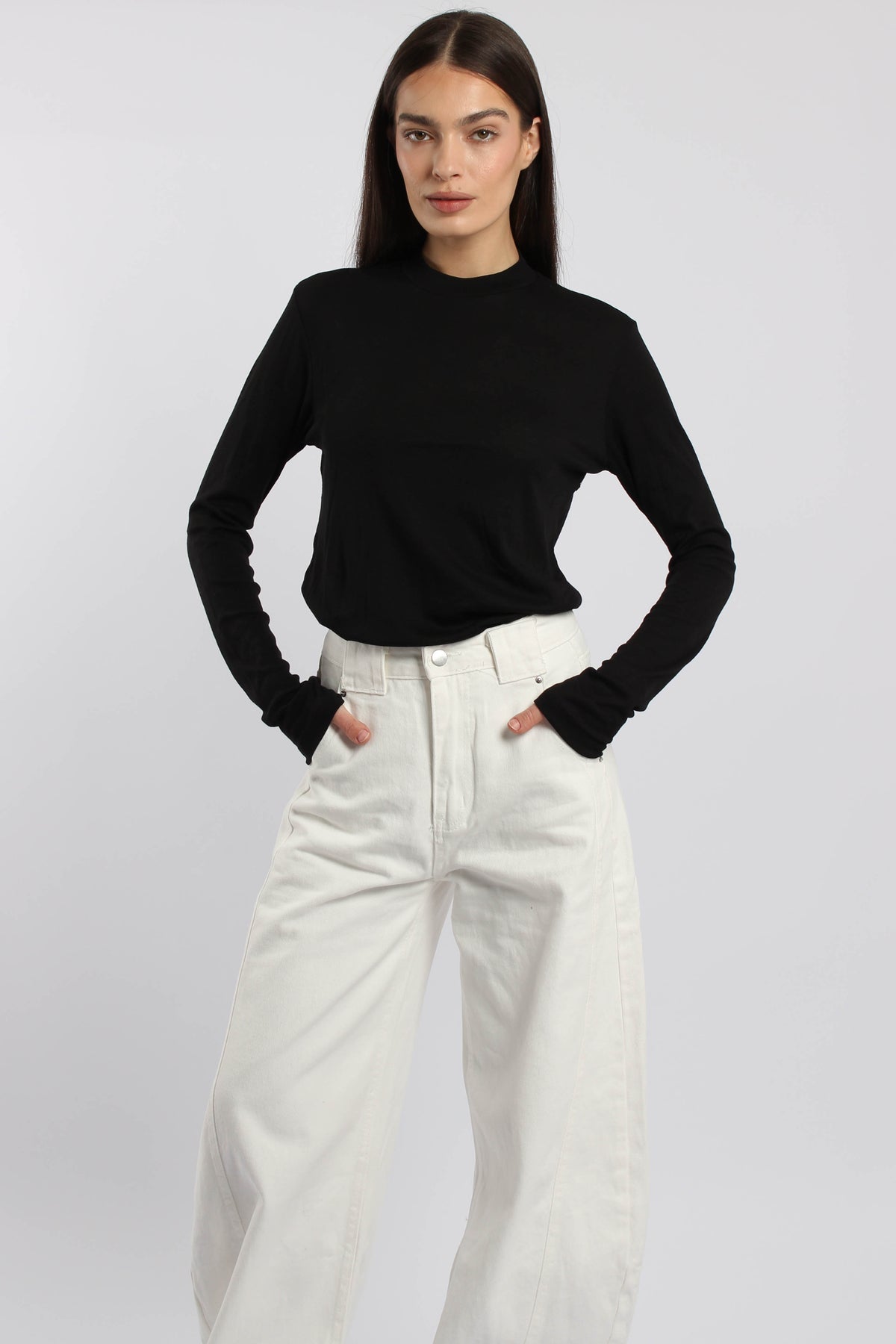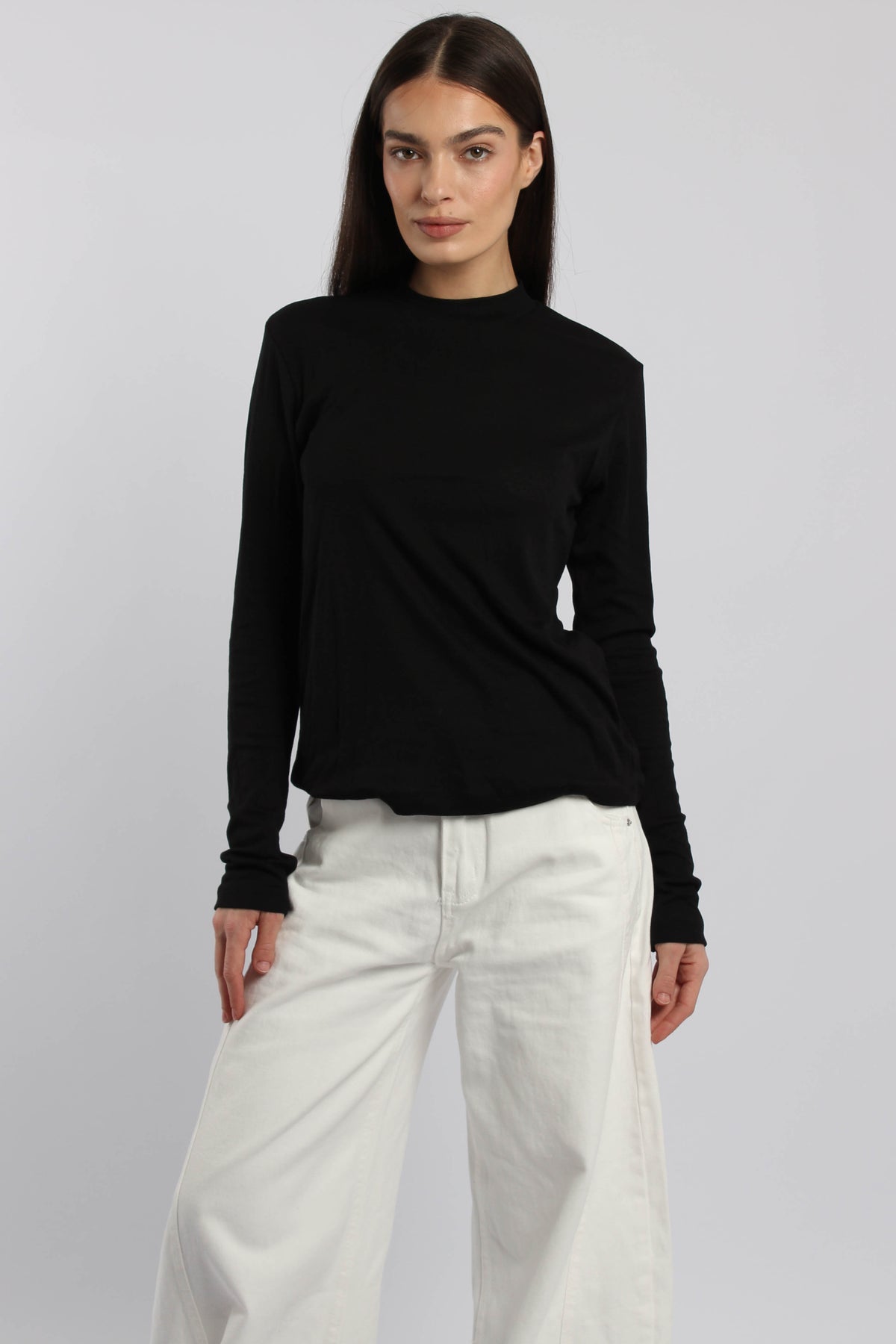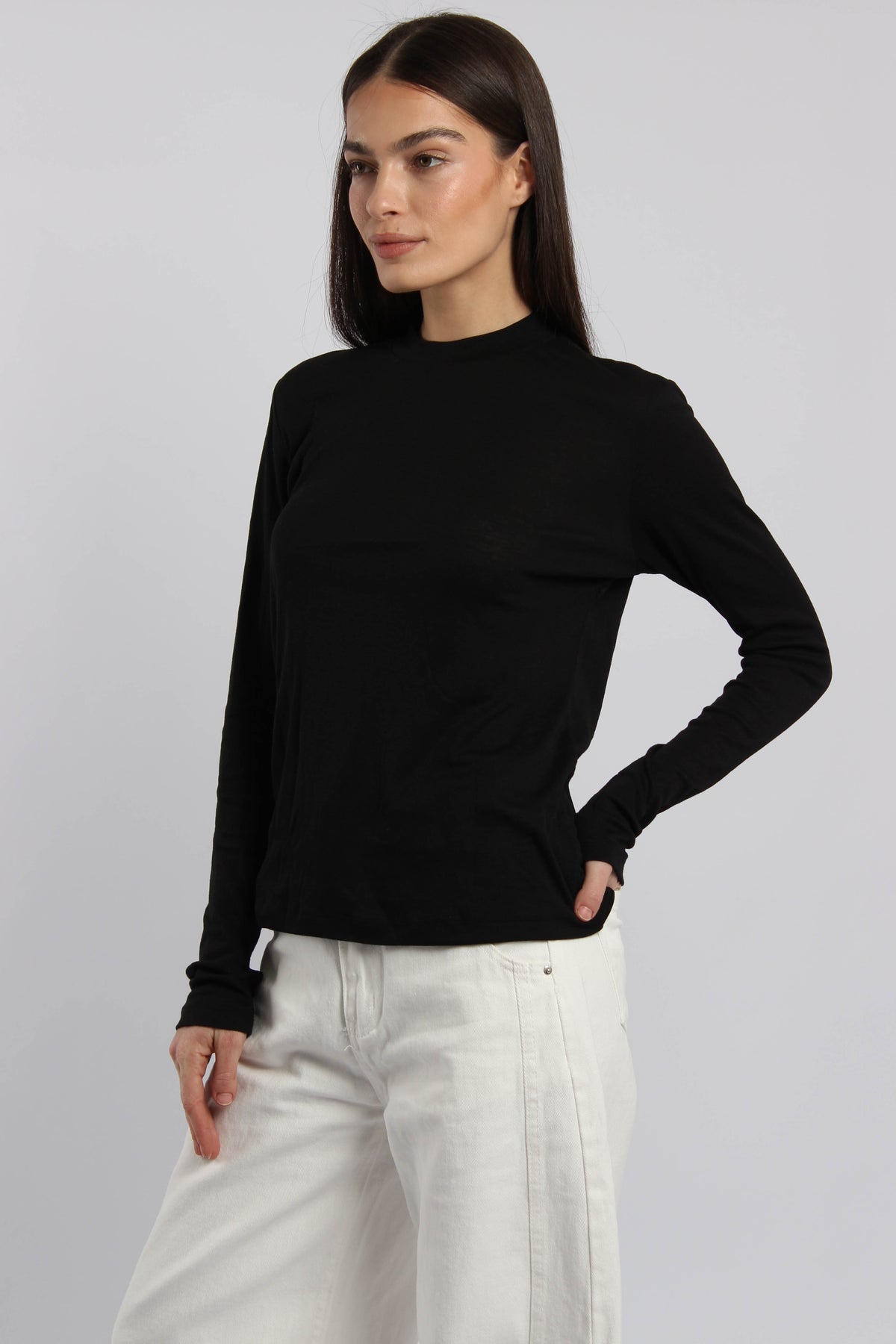 חולצת שרוול ארוך בגזרה צמודה עם כפפת יד מובנית, בד רך ונעים ללוק נקי ויומיומי.
