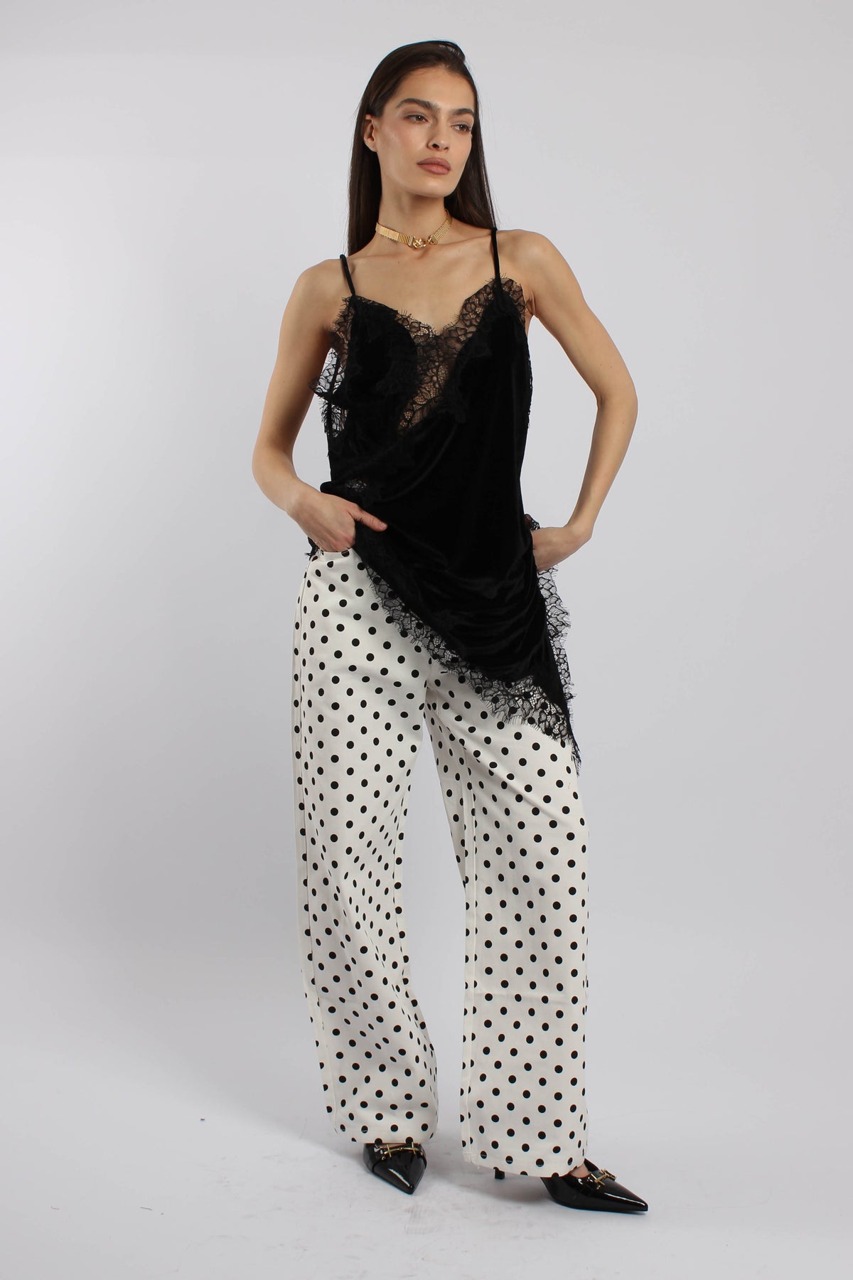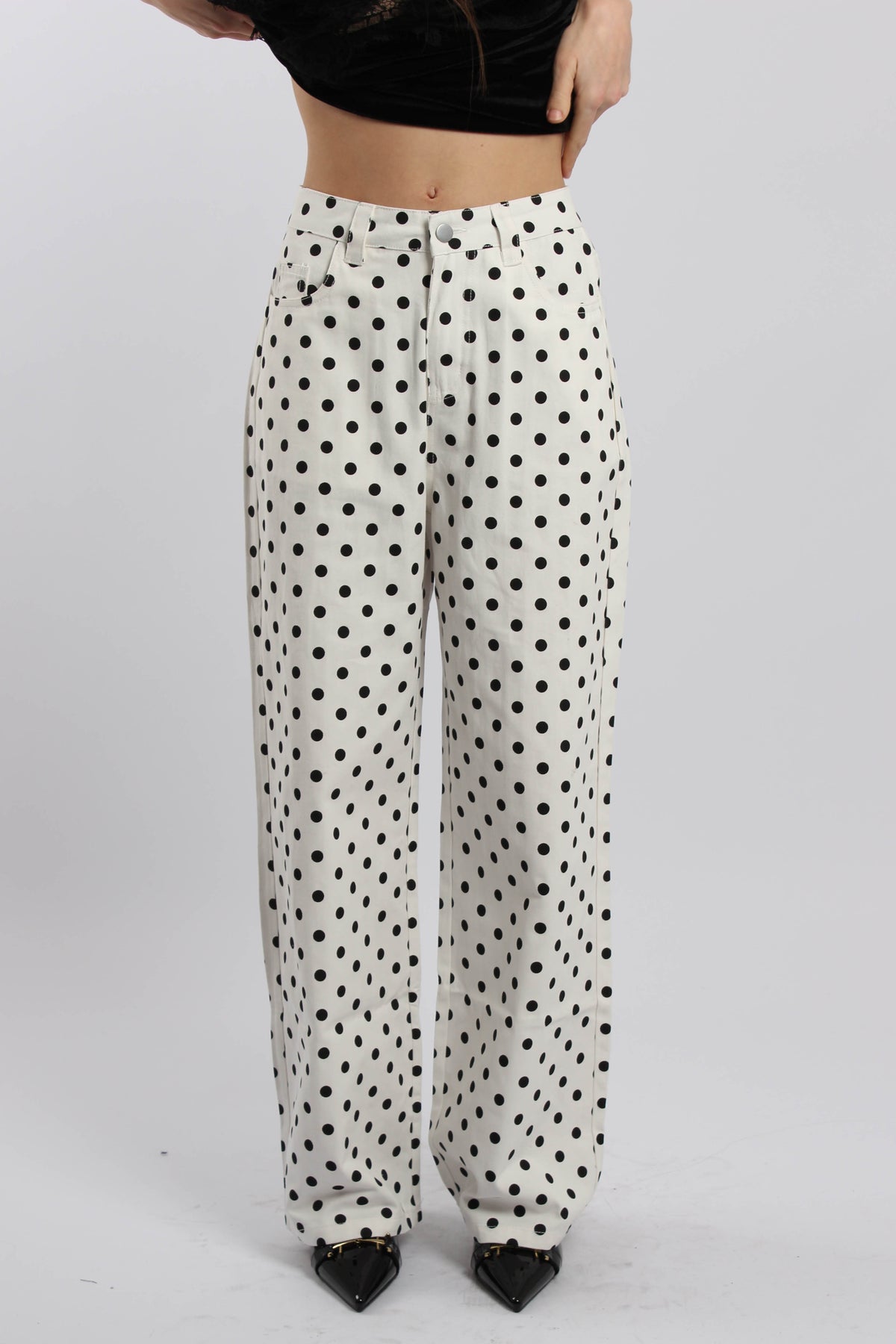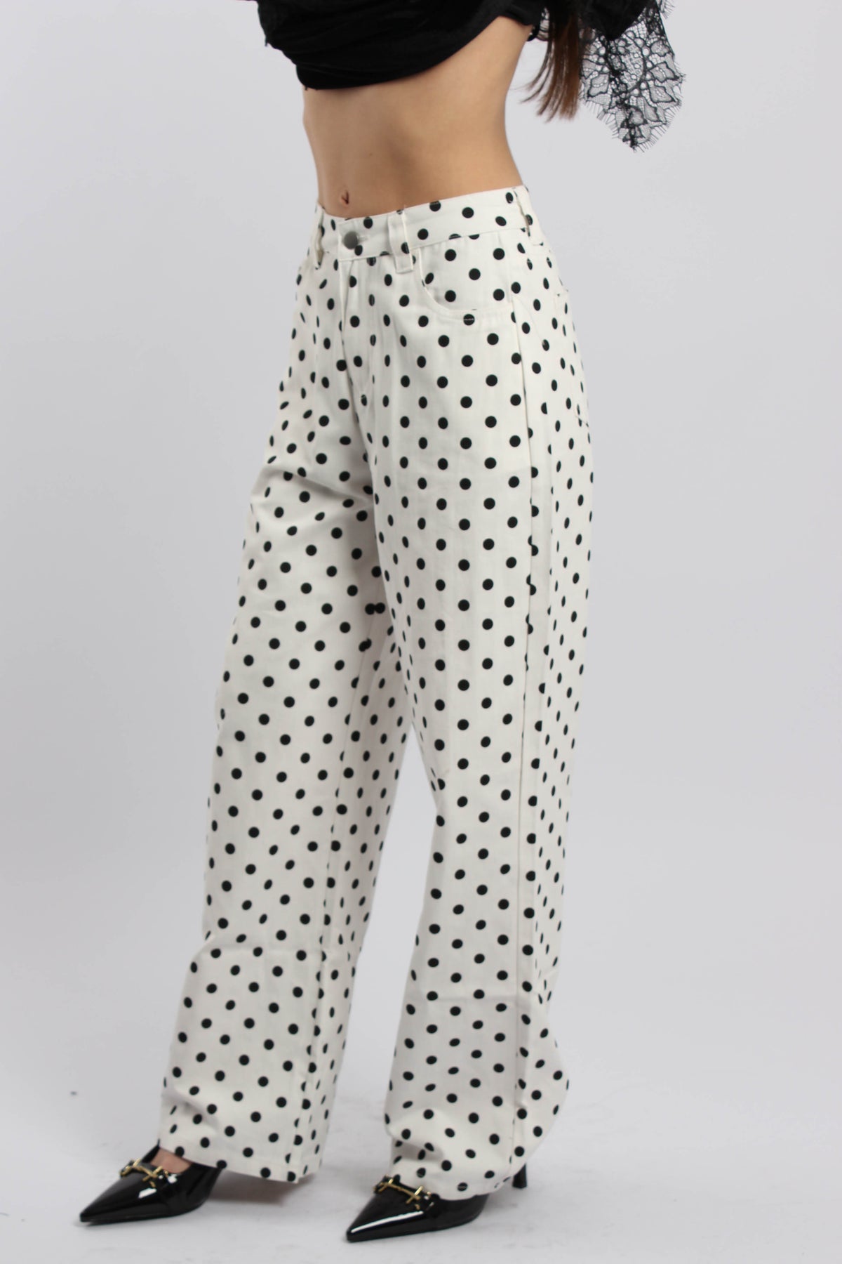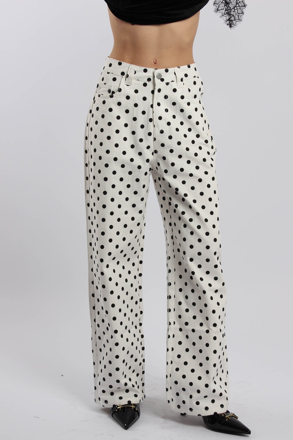 ג׳ינס סת נקודות עם הדפס נקודות קלאסי, יושב גבוה ומחמיא לקו הגוף למראה אופנתי עם טוויסט ייחודי.