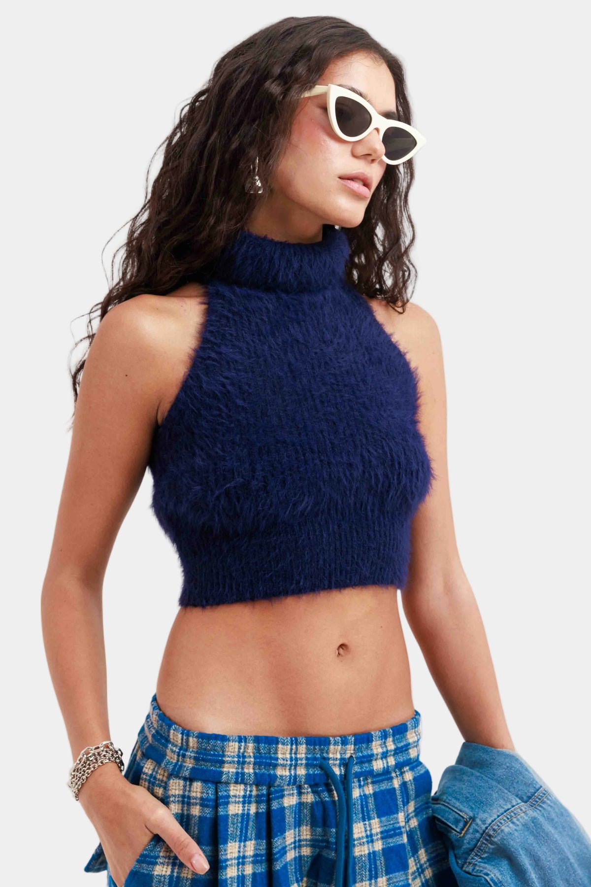 טופ קרופ סרוג במרקם רך ומלטף, עם צווארון גולף וגזרה נקייה שמדגישה את הכתפיים. פריט סטייטמנט מחמיא שמתאים לשילוב עם ג’ינס, חצאית או מכנסיים בגזרה גבוהה.