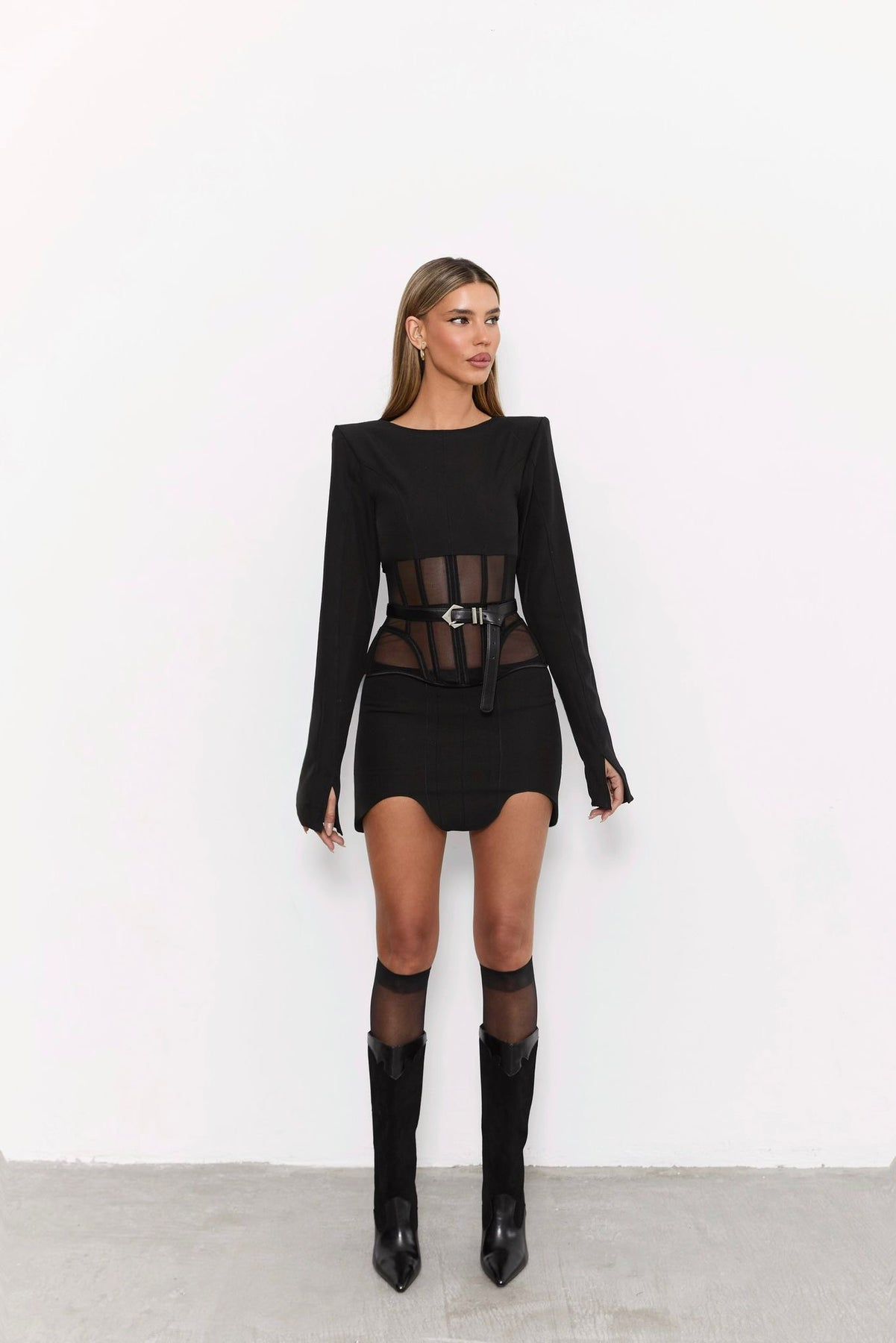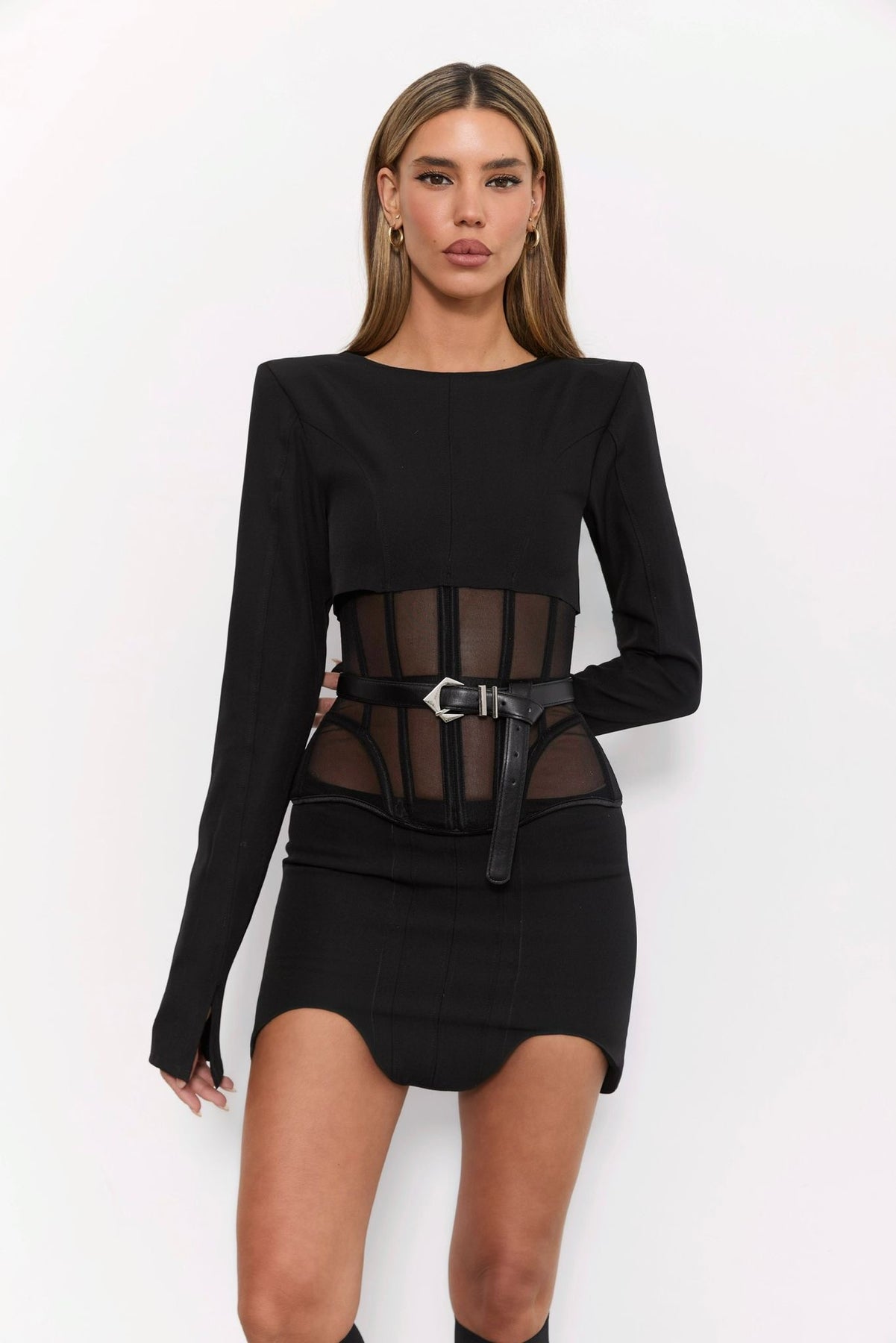 Taylorסט של 3 חלקים + חגורה קרופ-טופ, מחוך שקפקף , חצאית מיני וחגורההסט מגיע במידות S/M וכל היופי - שכל חלק בסט שימושי ככ גם בנפרד!