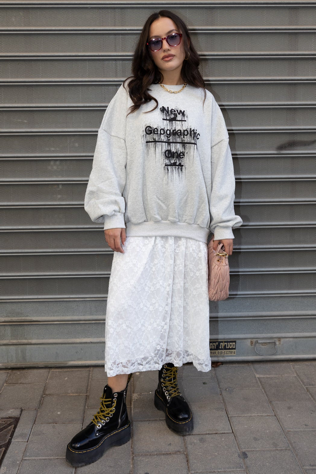 סווטשירט אוברסייז בגזרה רחבה עם הדפס קדמי, בד רך ונוח למראה קז׳ואלי עם טוויסט אורבני.