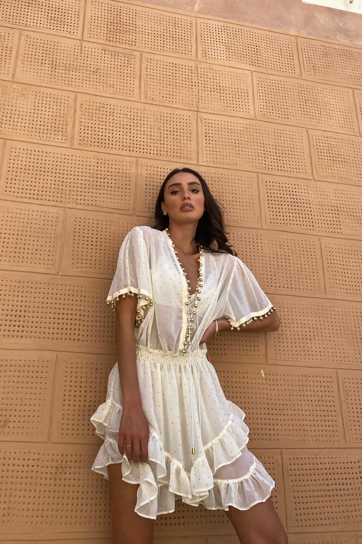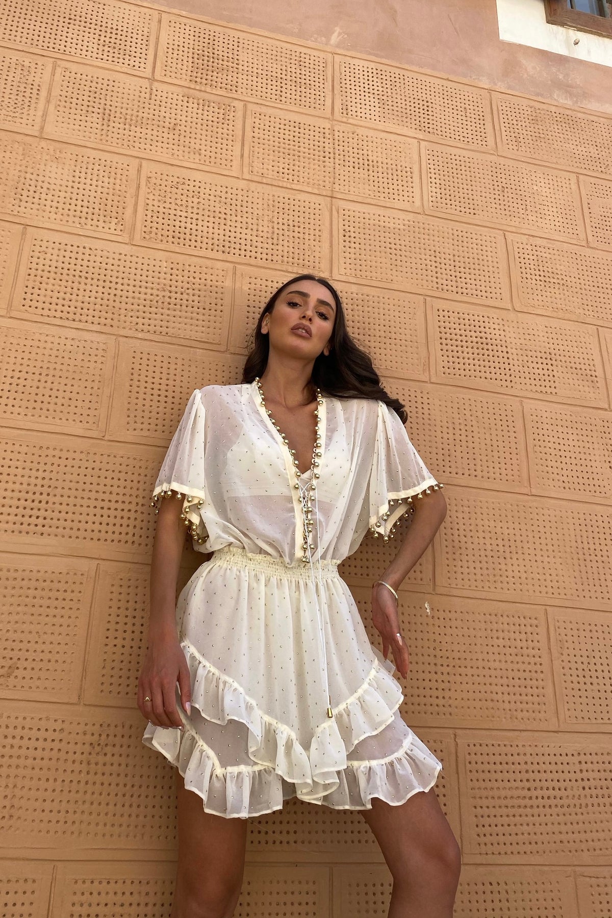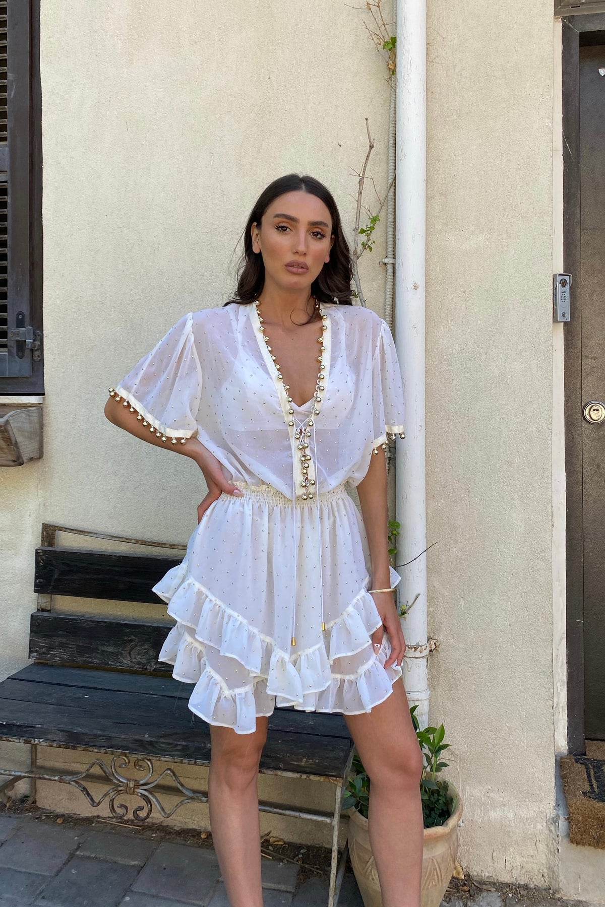 שקופה בחלקה התחתון- נדרשת ללבישה עם תחתית/מכנסון כמו בתמונה