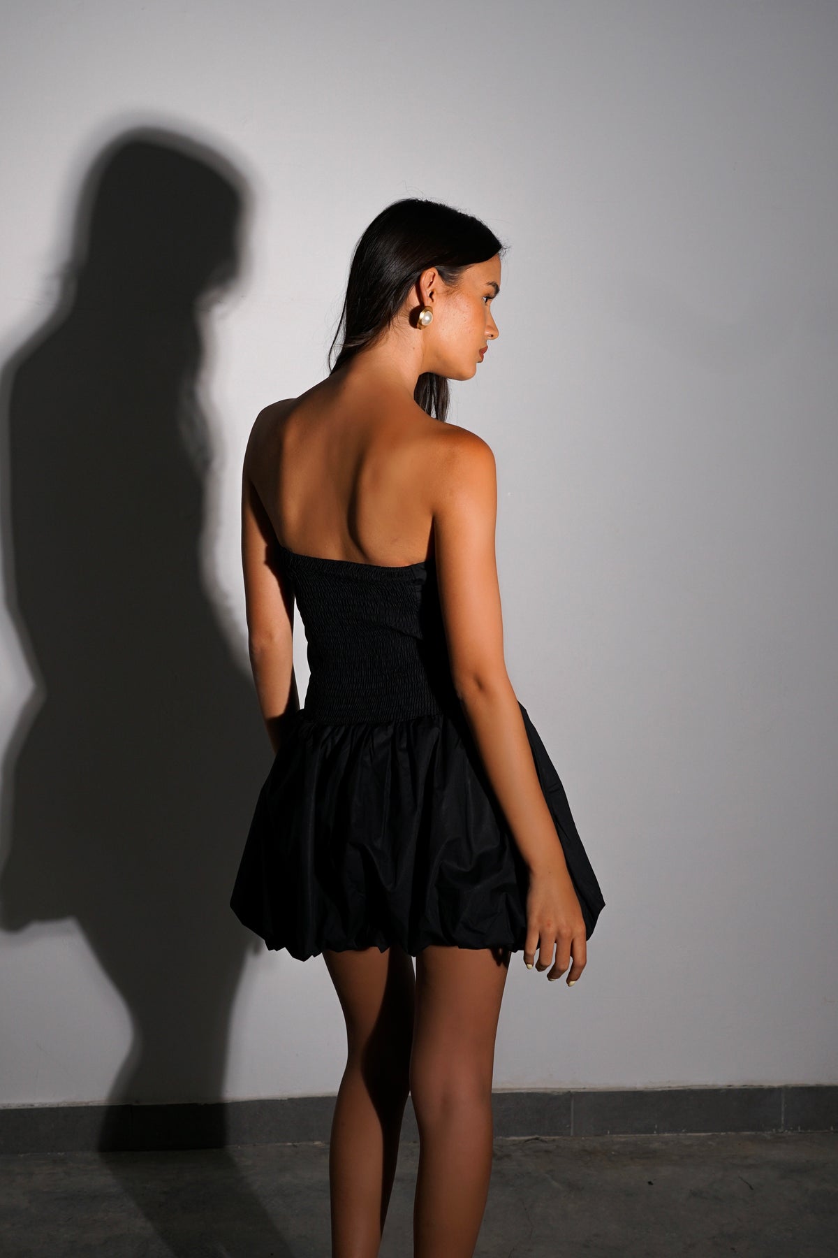 שמלת מיני סטרפלס| חלק עליון קפלים | חלק תחתון חצאית בלון קיימת בצבעים: צהוב בננה-שחורמידות: S 34-36 M 36-38