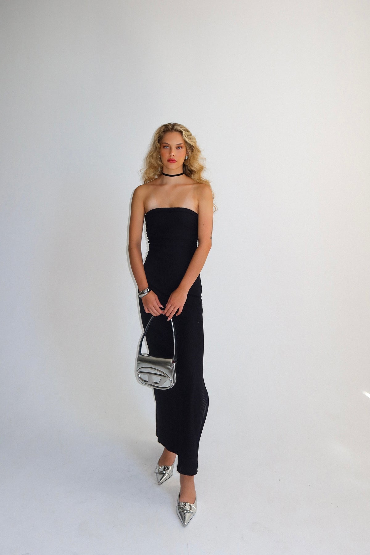שמלת מקסי מבד סריג בגזרה צמודה