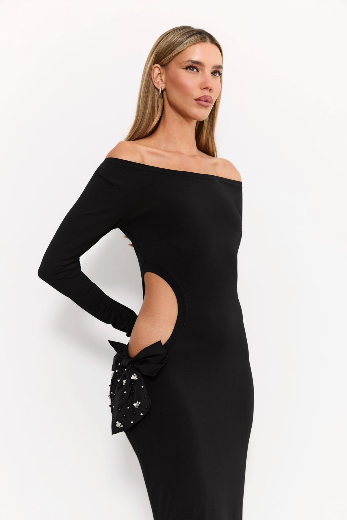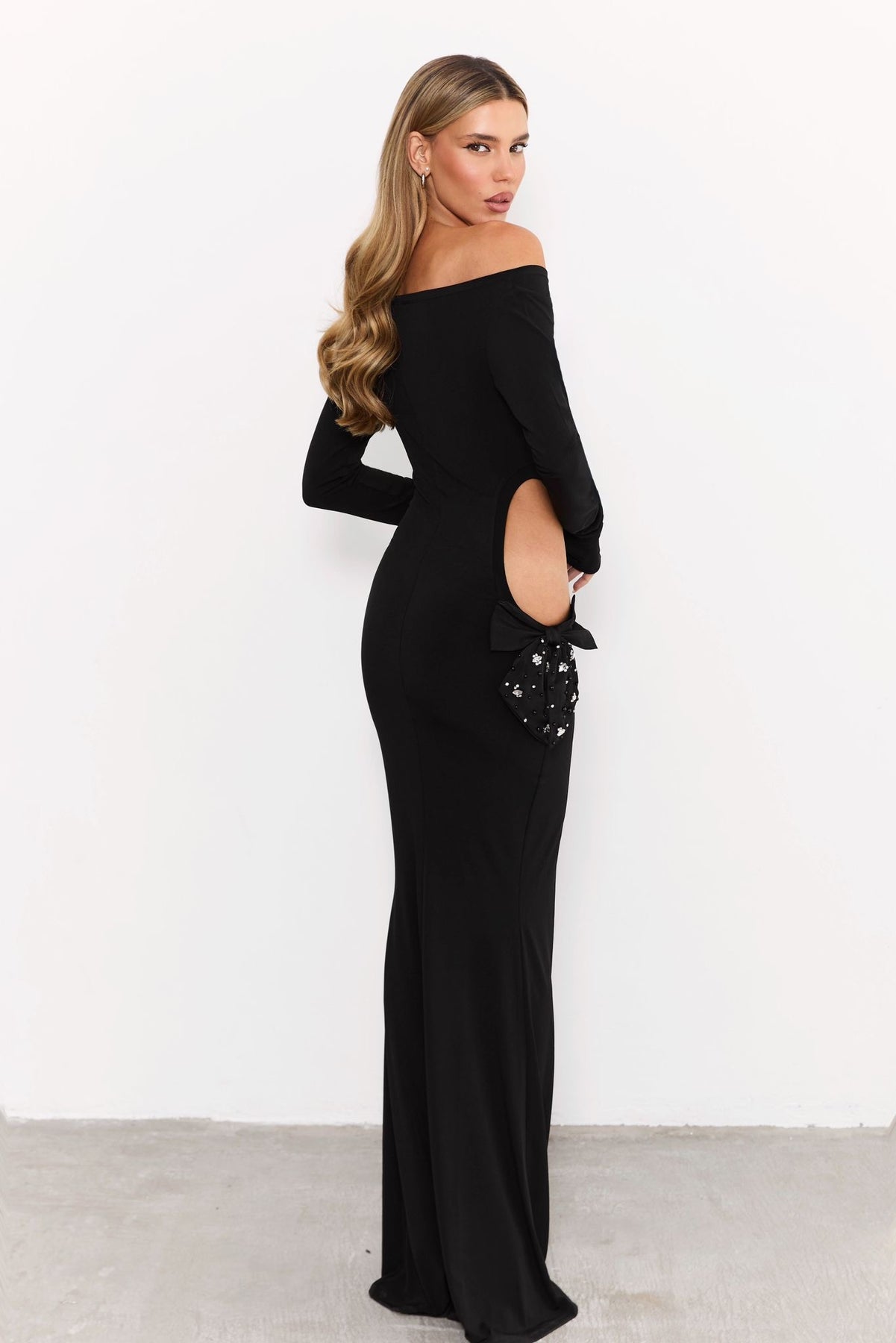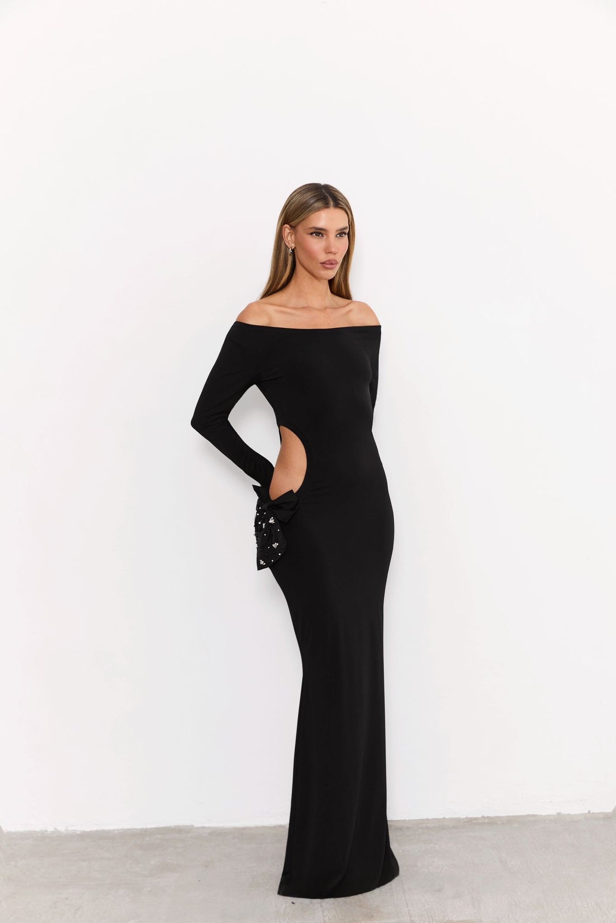 שמלת מקסי שחורה צמודה