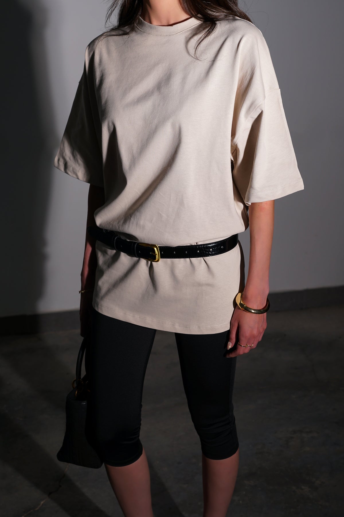 חולצת בייסיק בגזרה רחבה בד סופר נעים | שרוולים קצרים