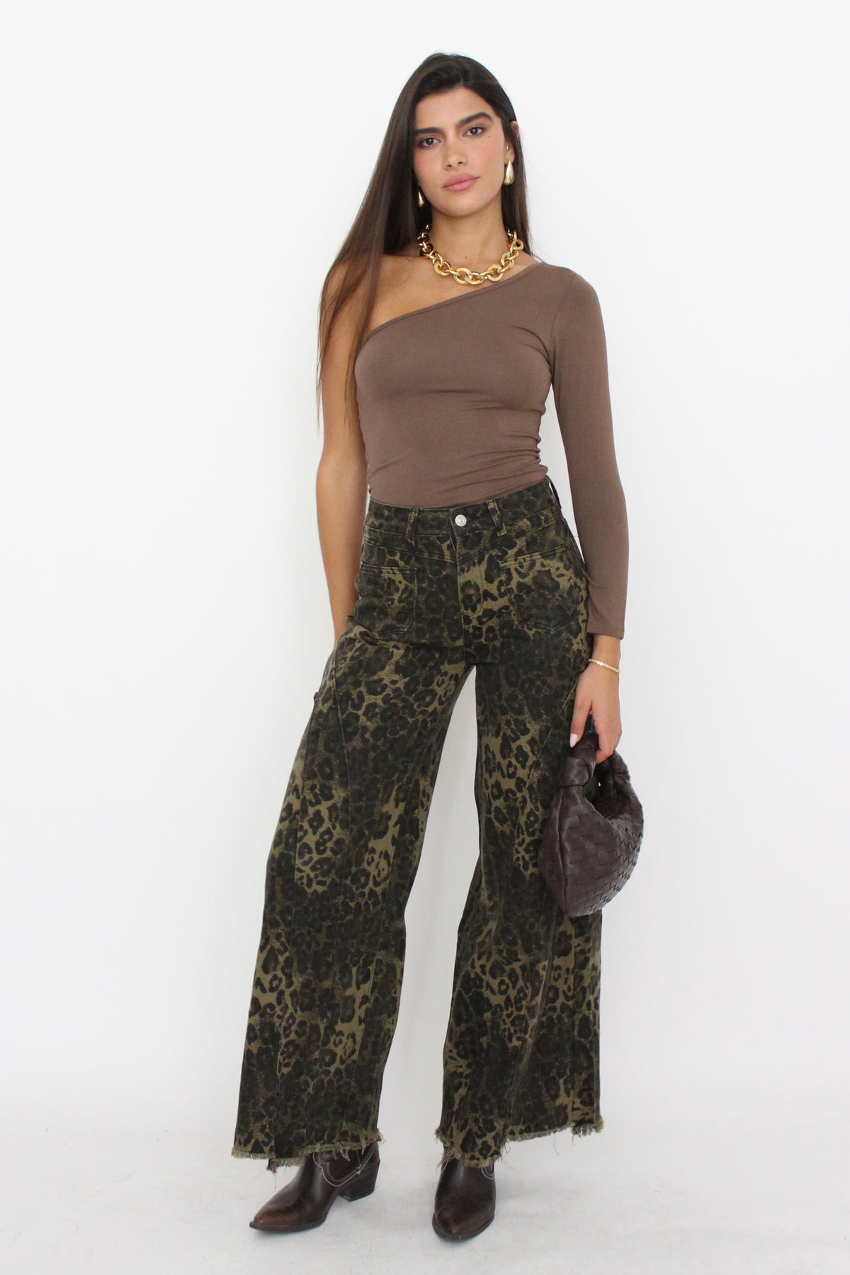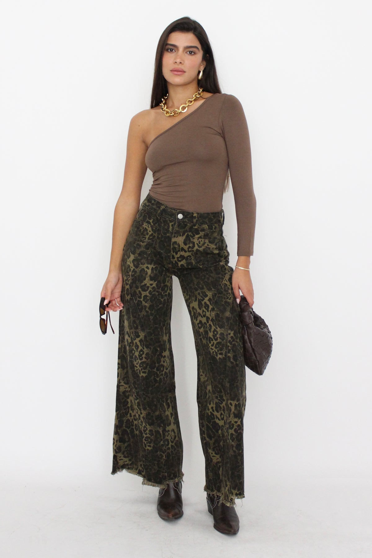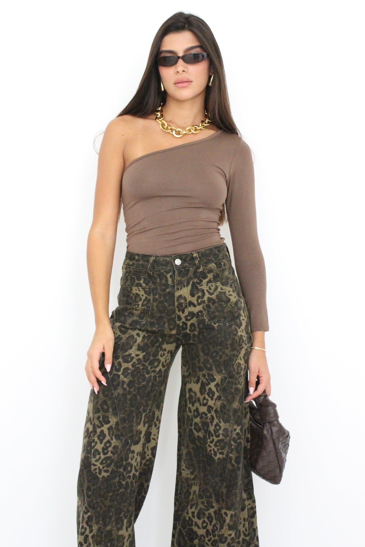 חולצת אליס כתף אחת - חום EXCLUSIVE
