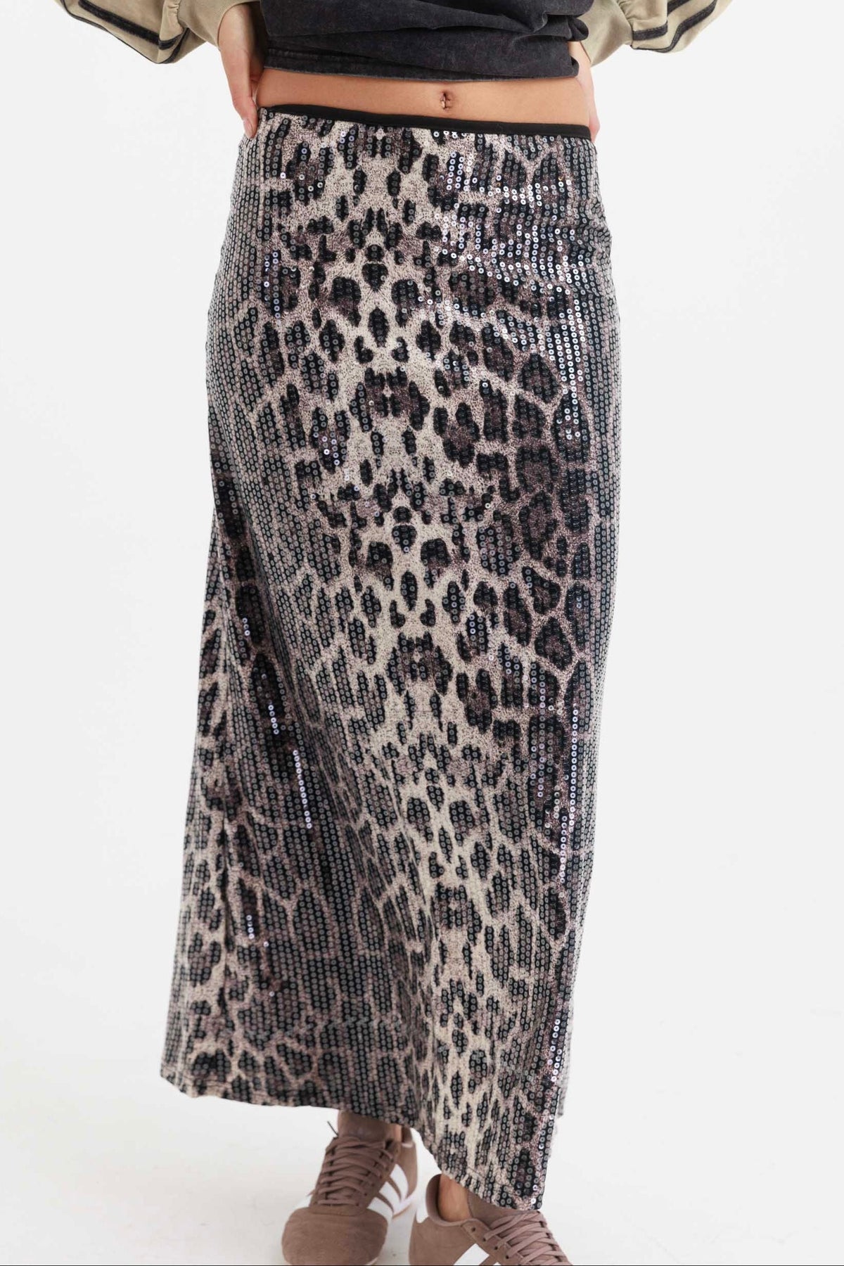 חצאיצ מבד פאייטים עם הדפס מנוחש אפור