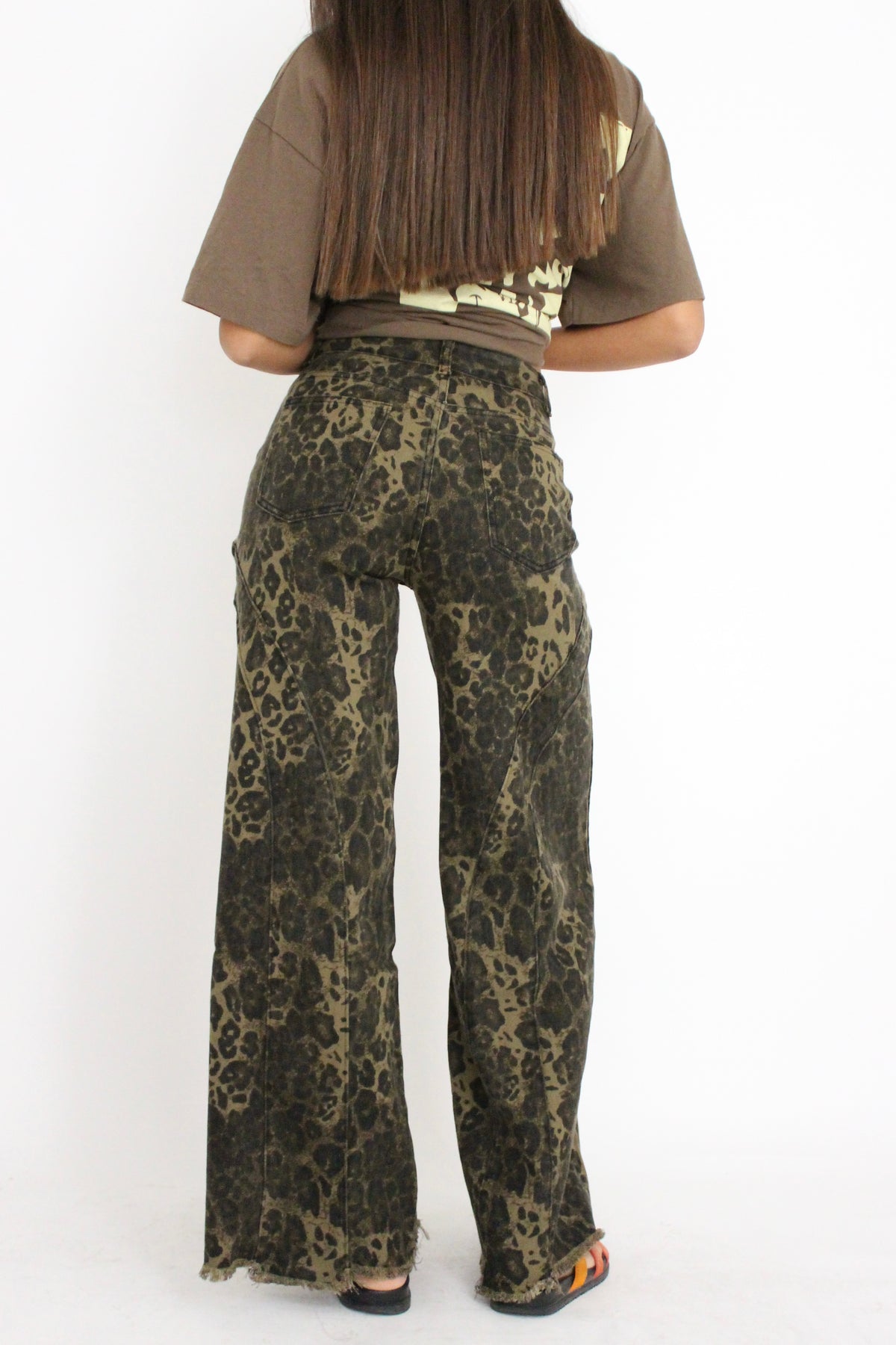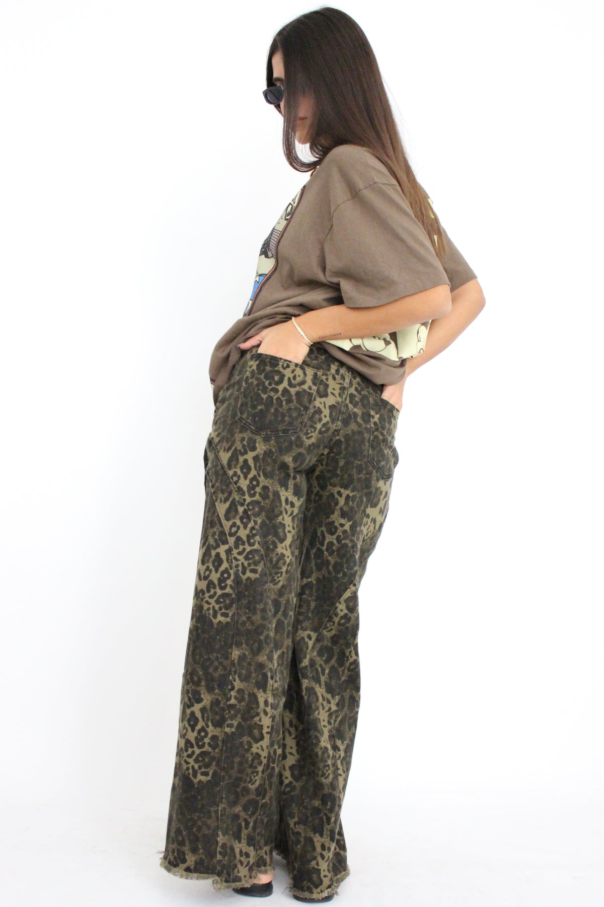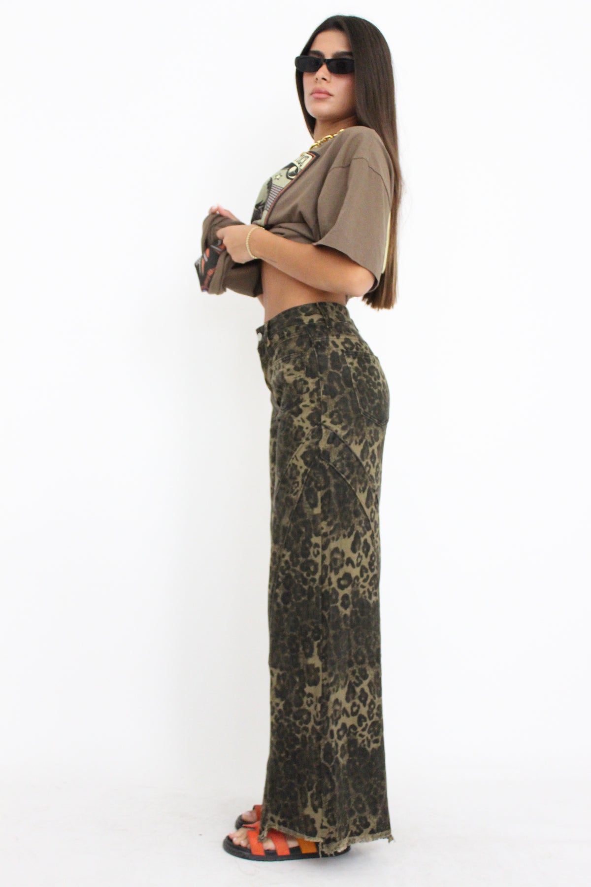מכנסי גינס עם הדפס מנומר בגזרה ישרה