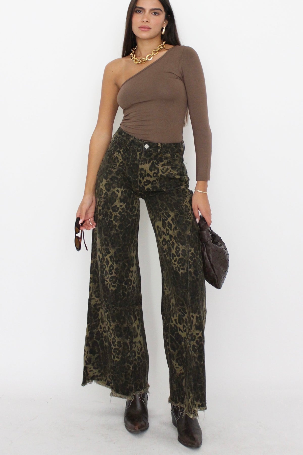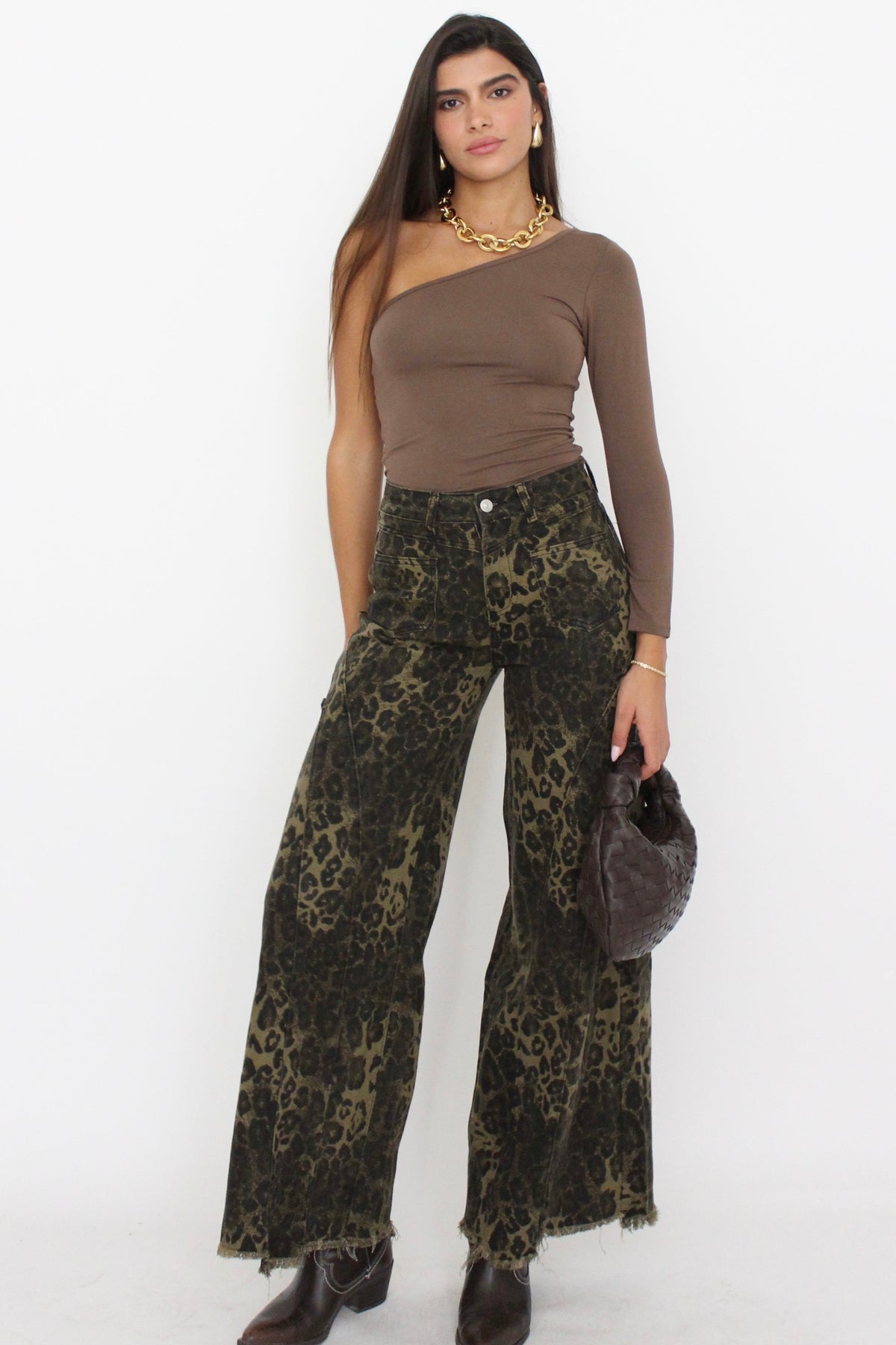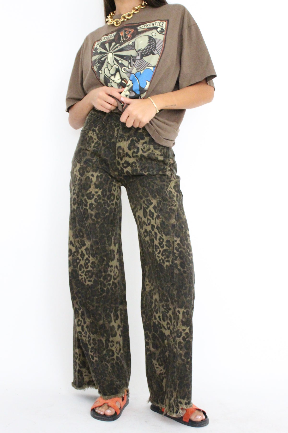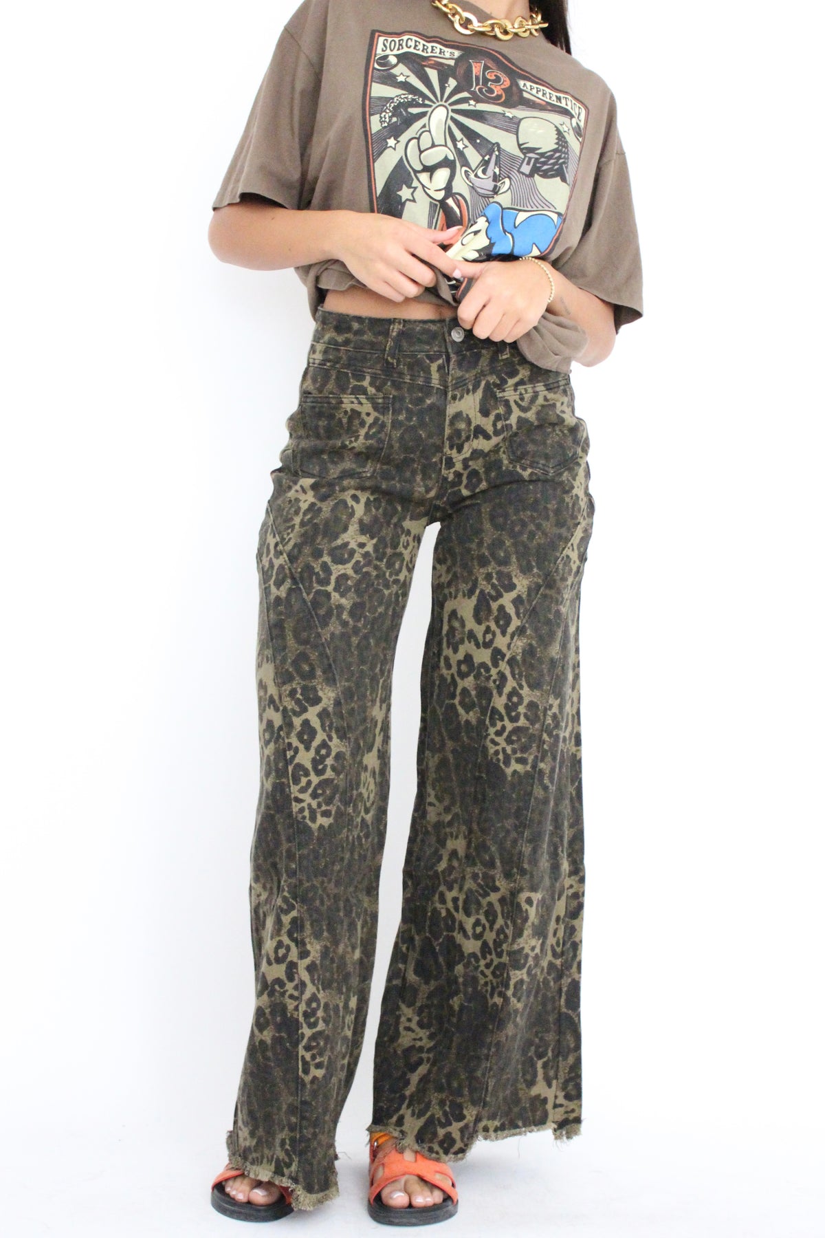 מכנסי גינס עם הדפס מנומר בגזרה ישרה