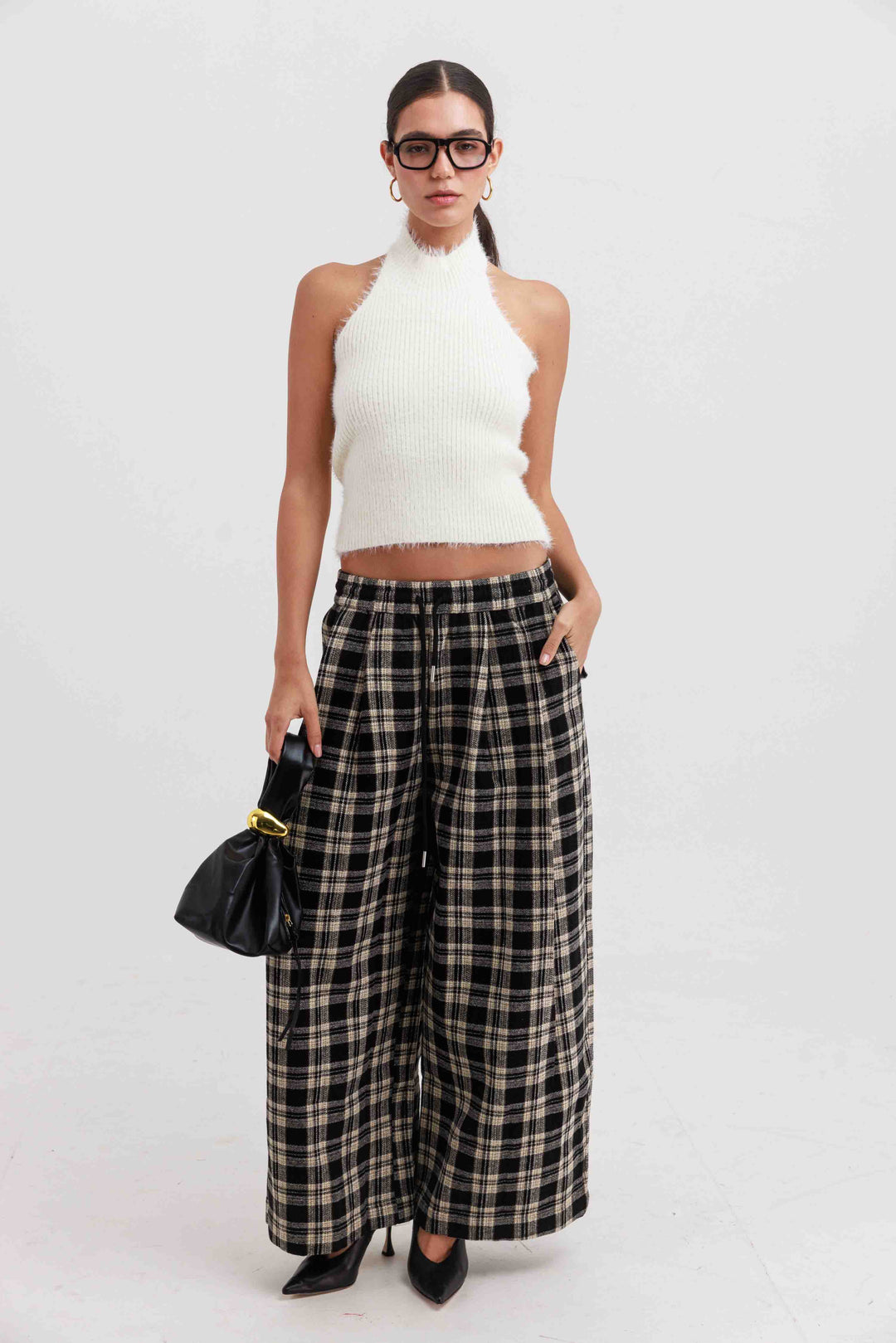 מכנסי סטיב משובצים - שחור