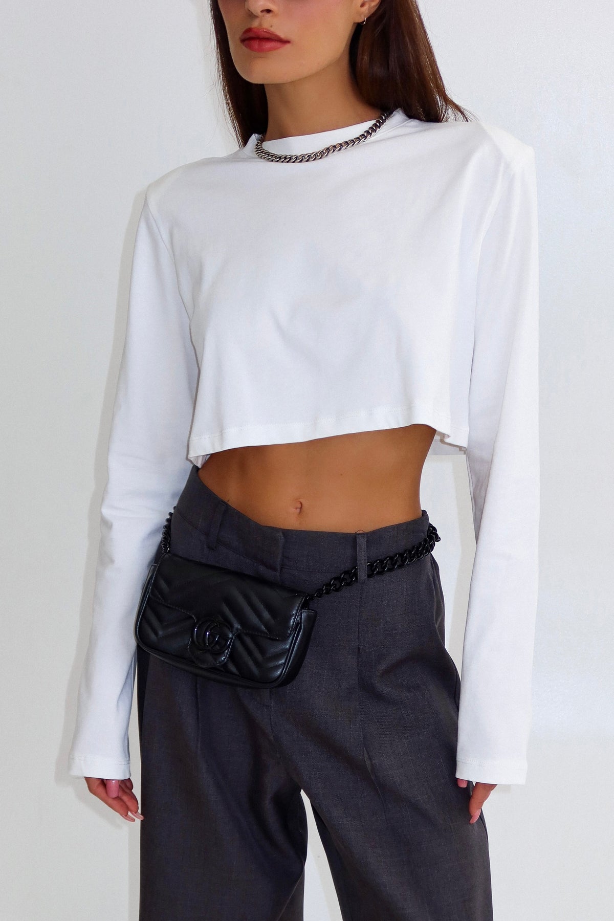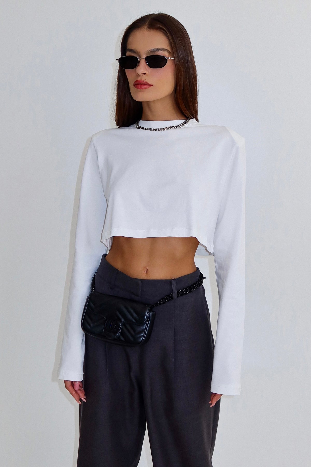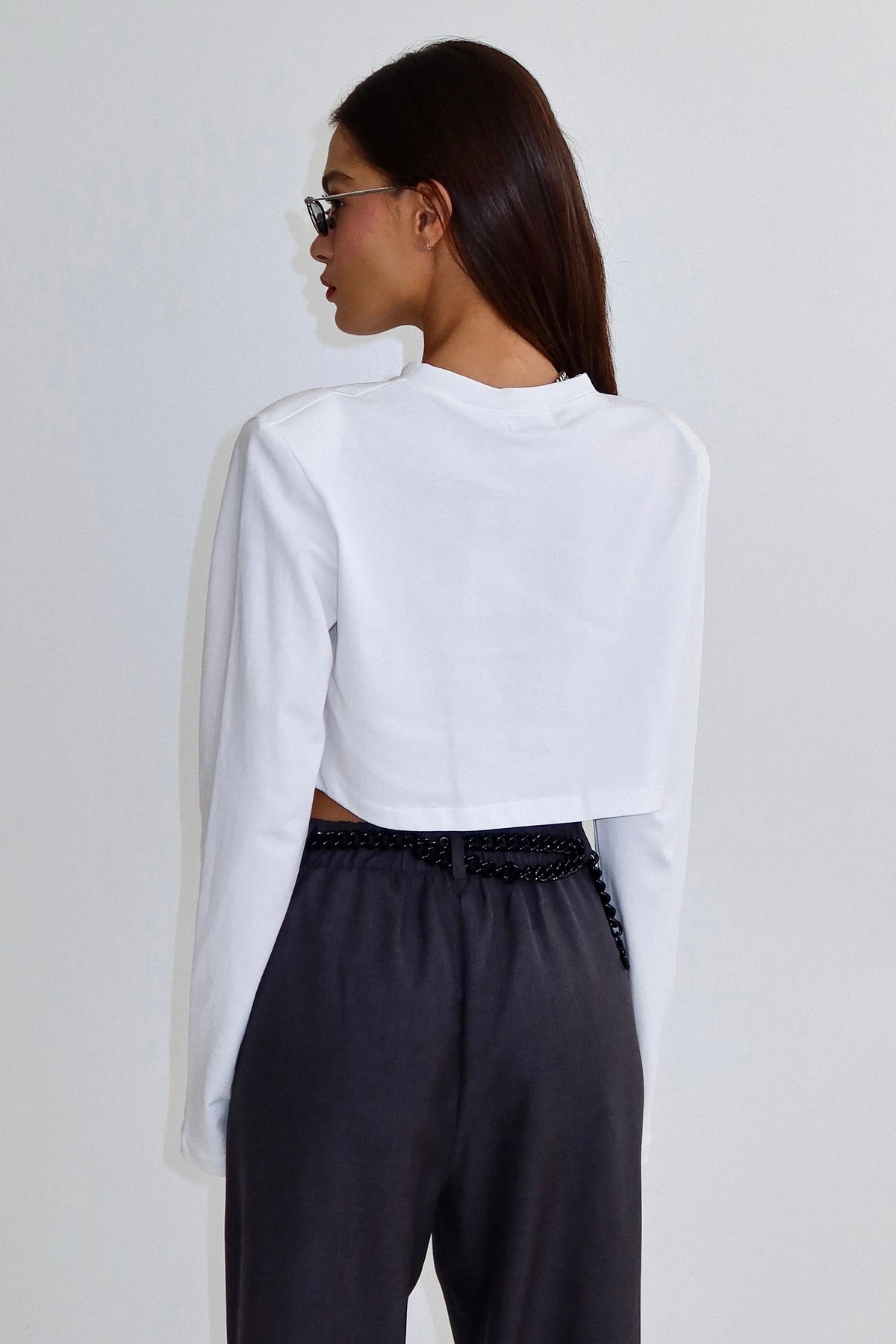 חולצת קרופ בייסיק מטריפה שסוגרת לך פינה עם מפתח צוואר עגול ושרוול ארוך