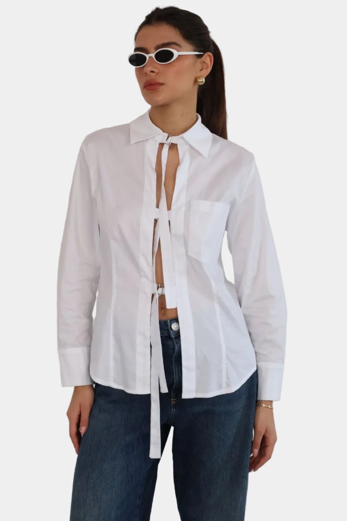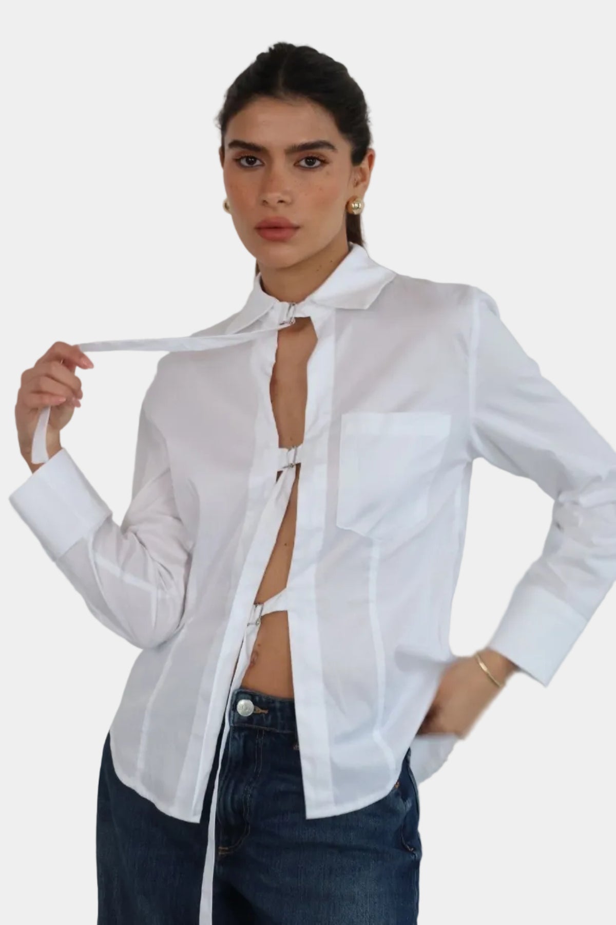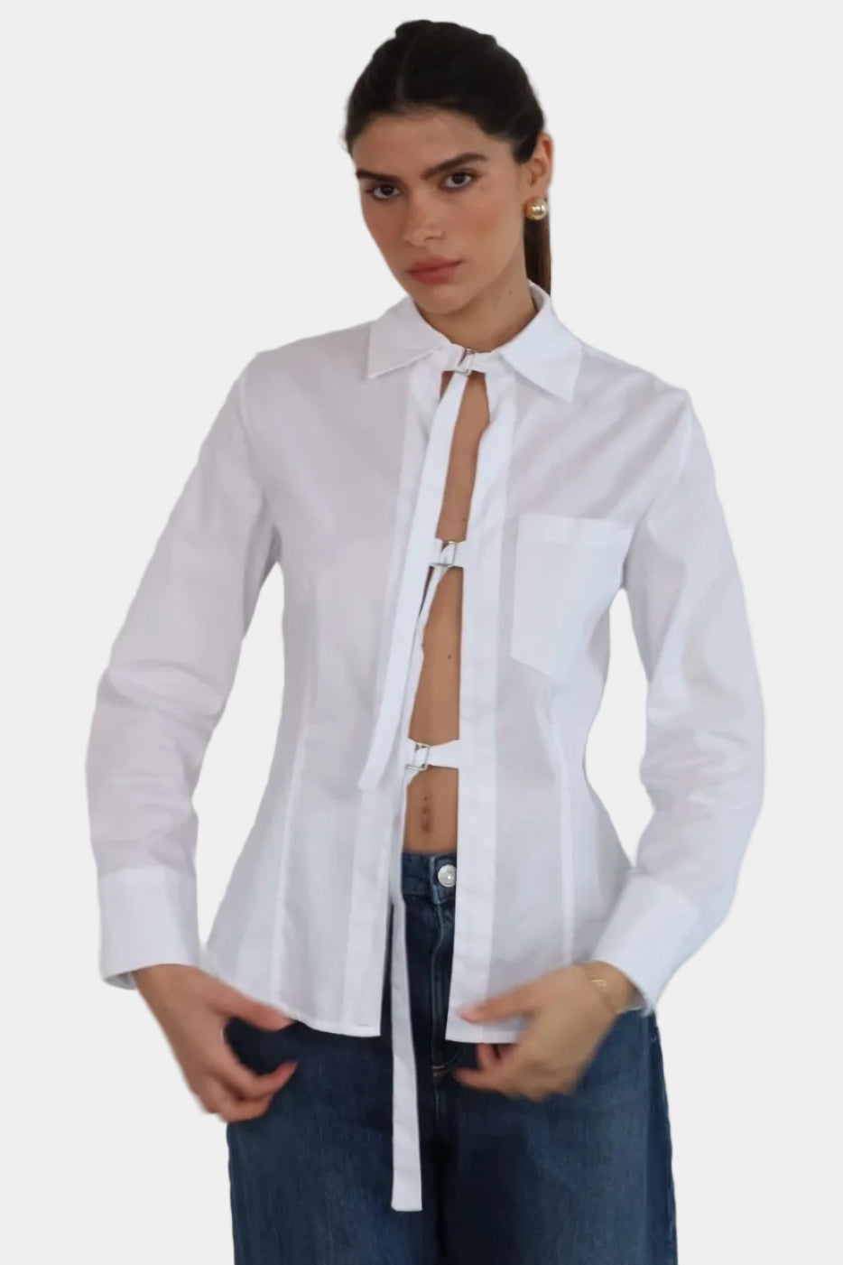 חולצה מכופתרת בגזרה ישרה עם פתחים קדמיים וסגירת קליפסים, למראה מודרני ונועז.