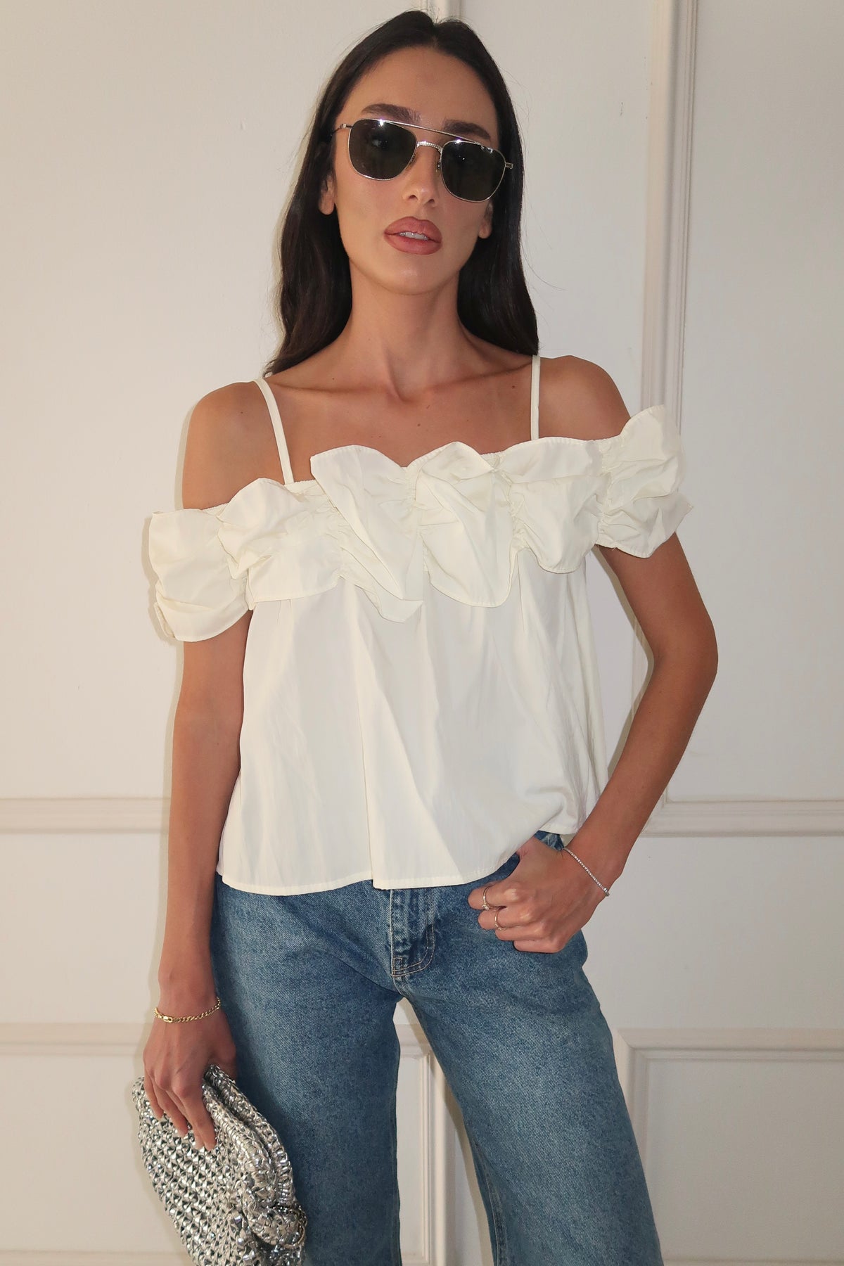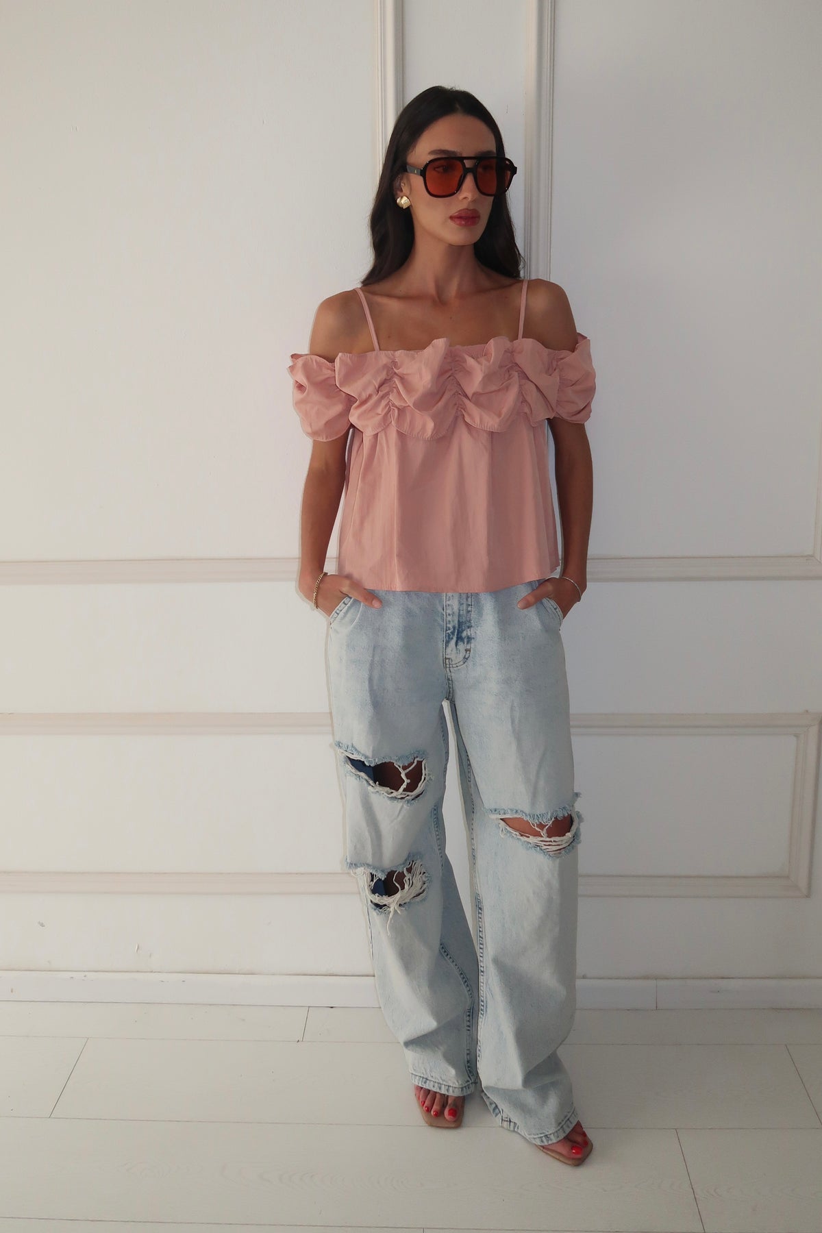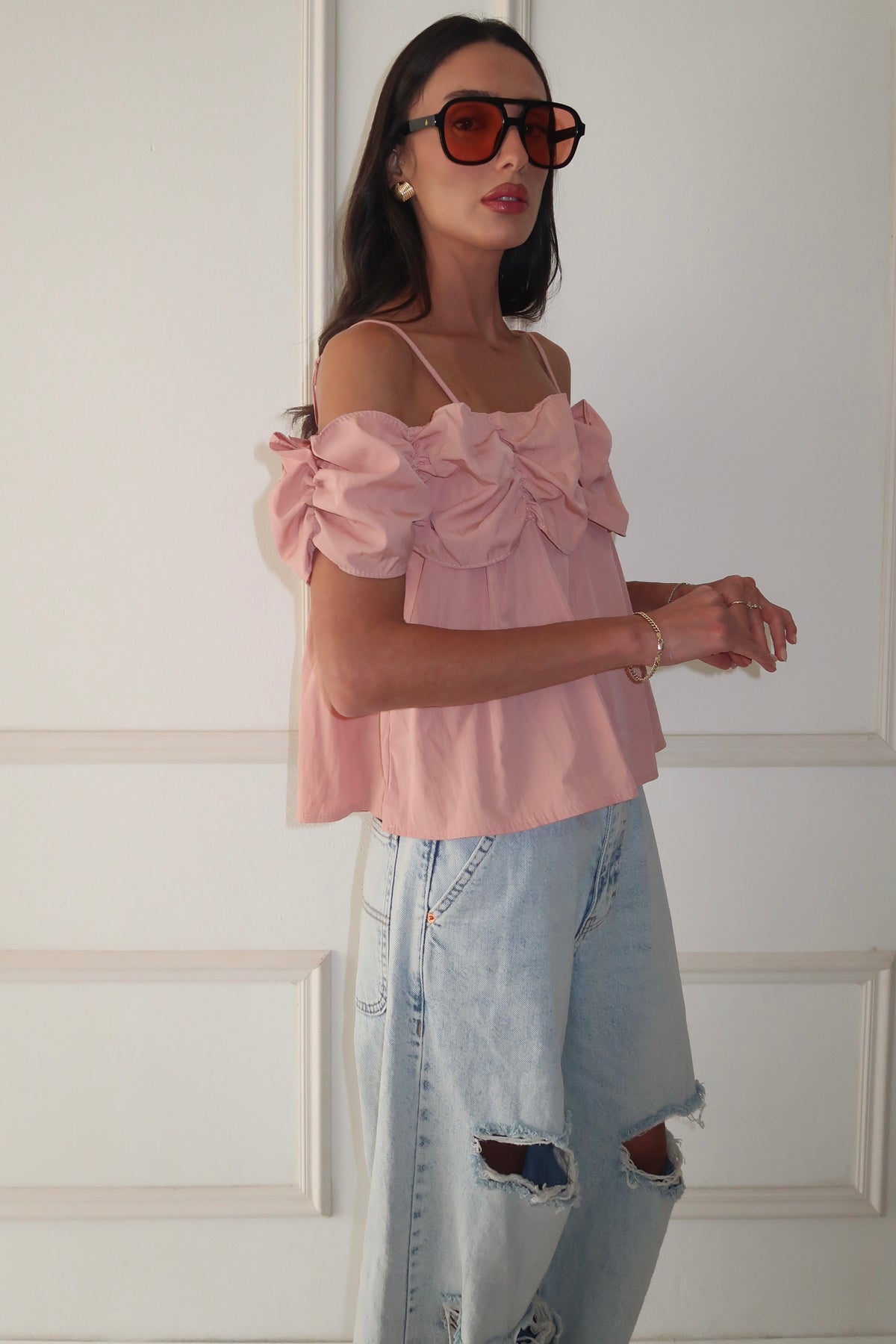 מתיקות עם טוויסט. טופ ורוד עם רפלסים דרמטיים + דנים משוחרר וקרוע = הלוק האורבני המנצח. 🌸
