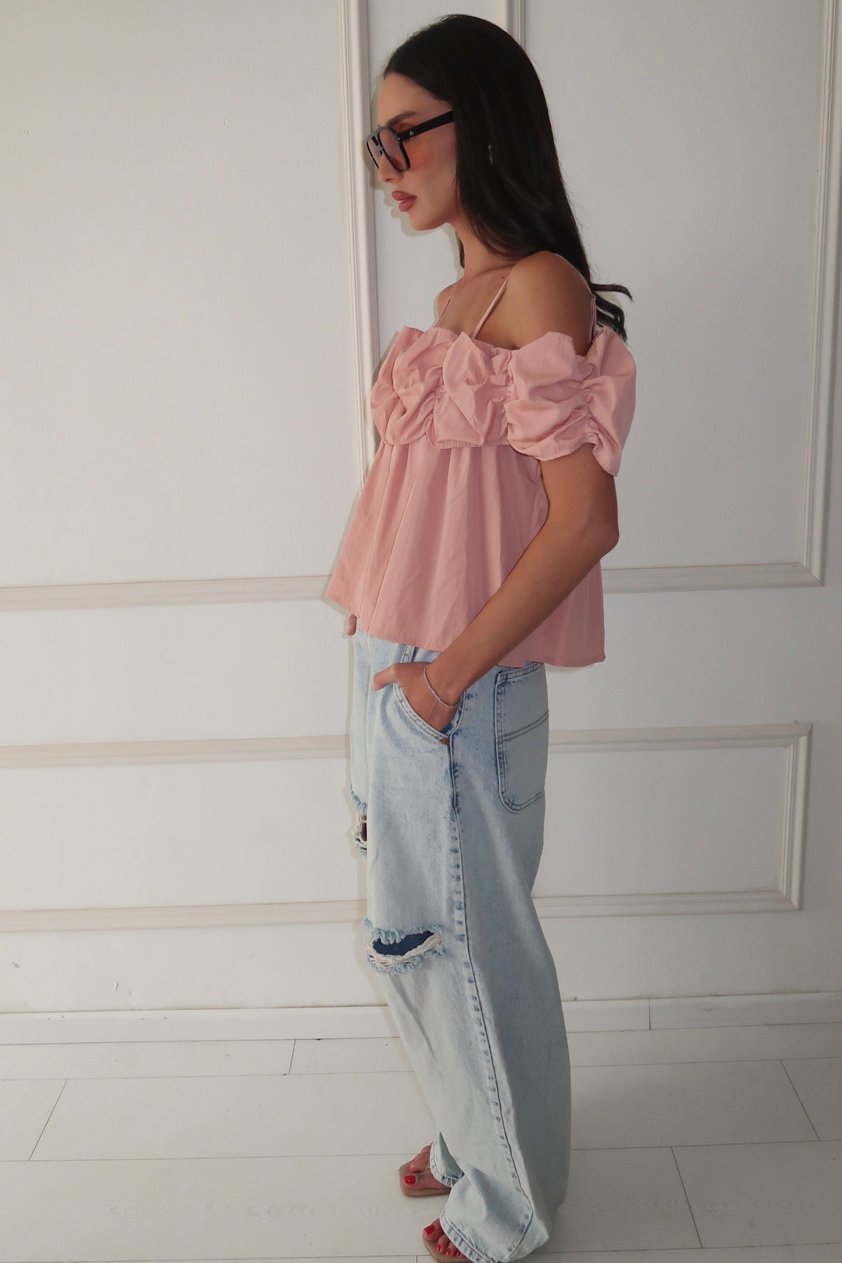 חולצת ראפל -ורוד