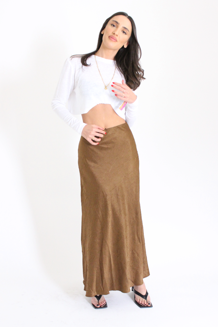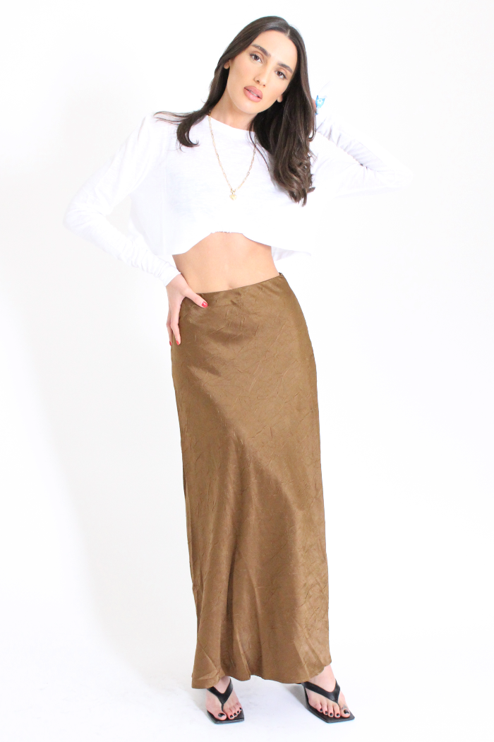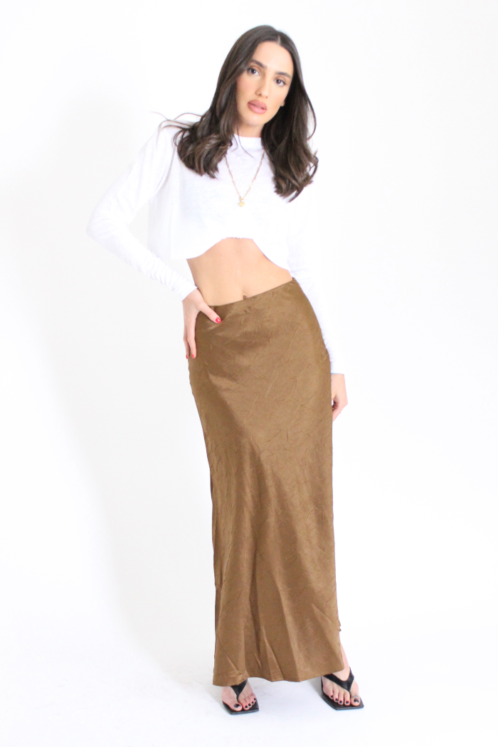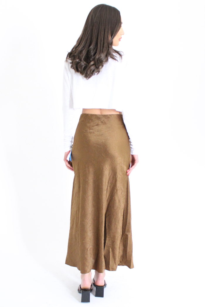 חצאית נשפכת יפייפיה מבד דמוי משי עם חיתוכים , בגזרה גבוהה