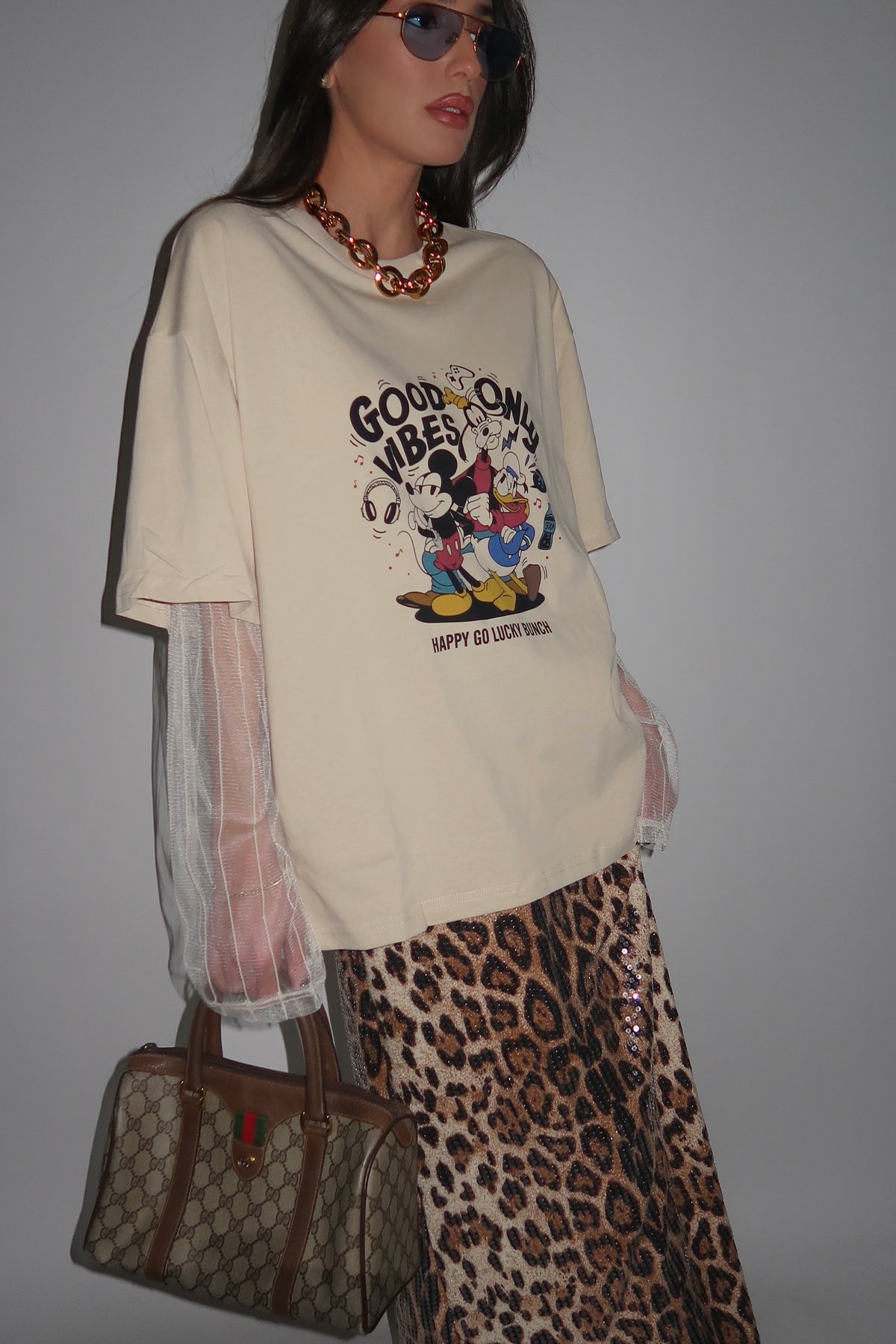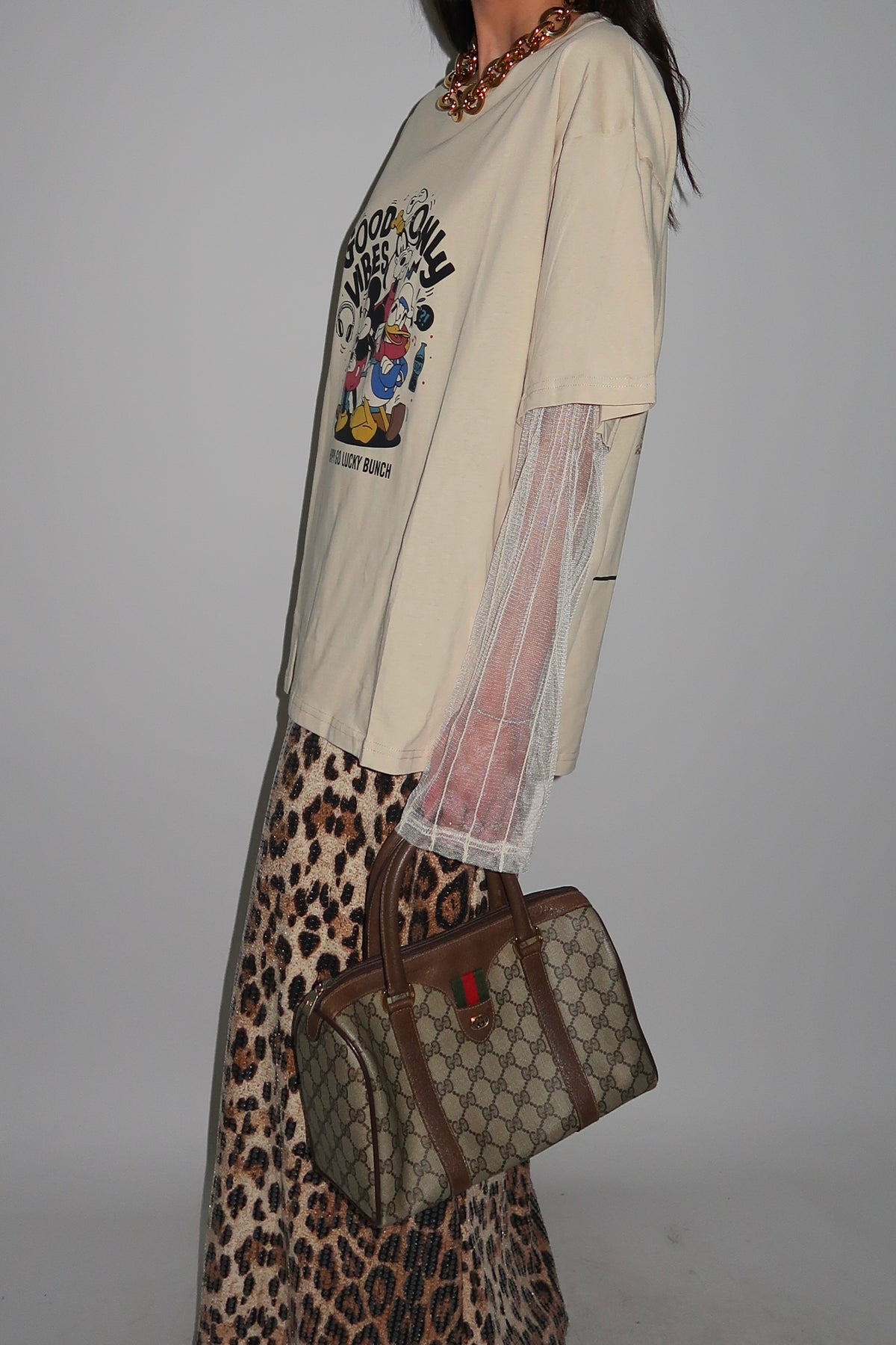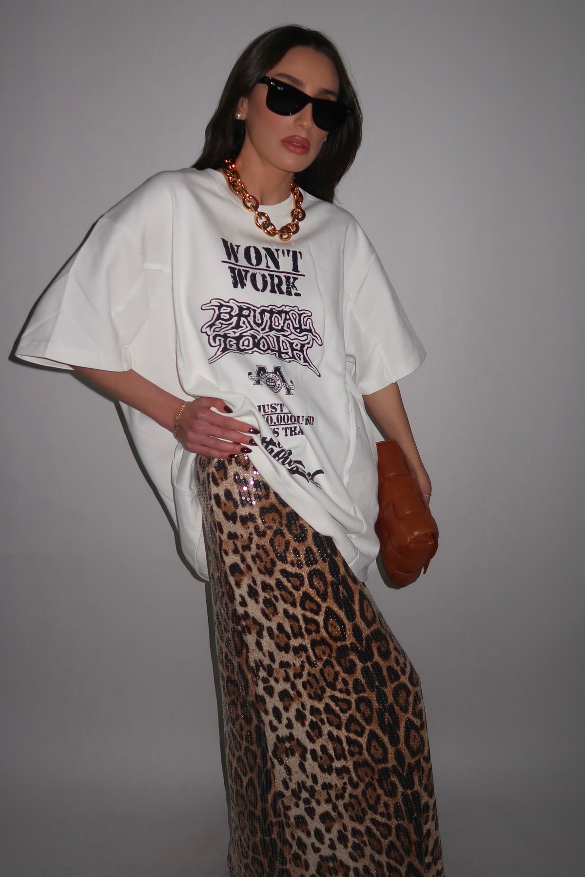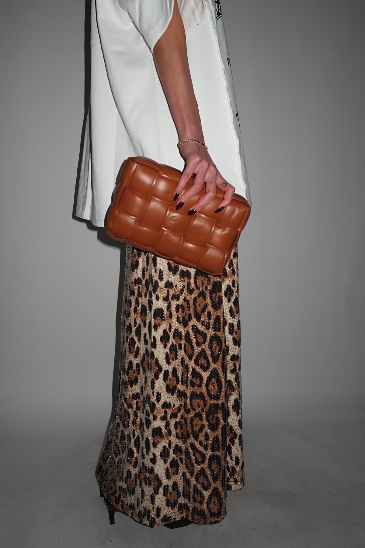 חצאית מקסי מנומרת מבד פאייטים צמודים