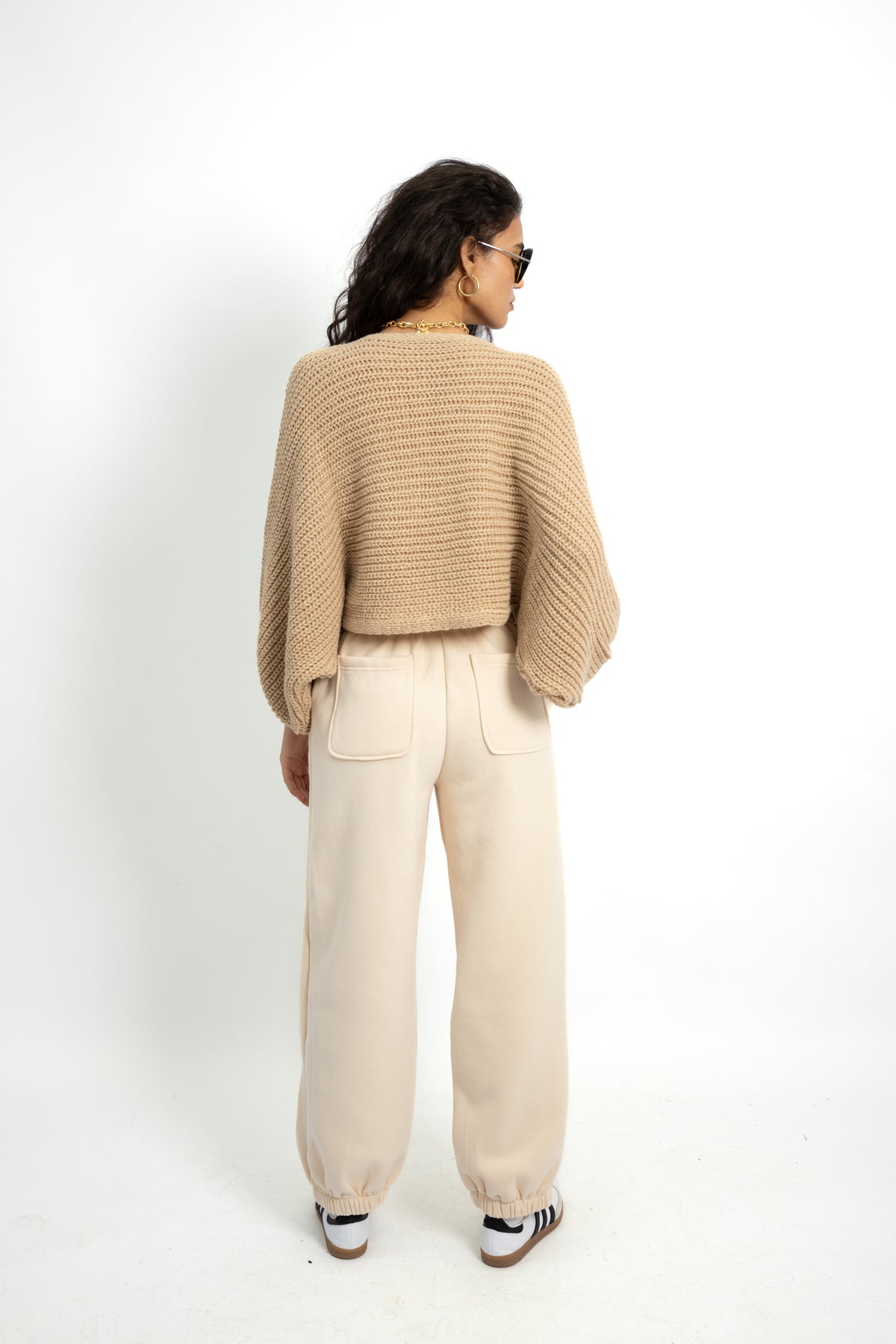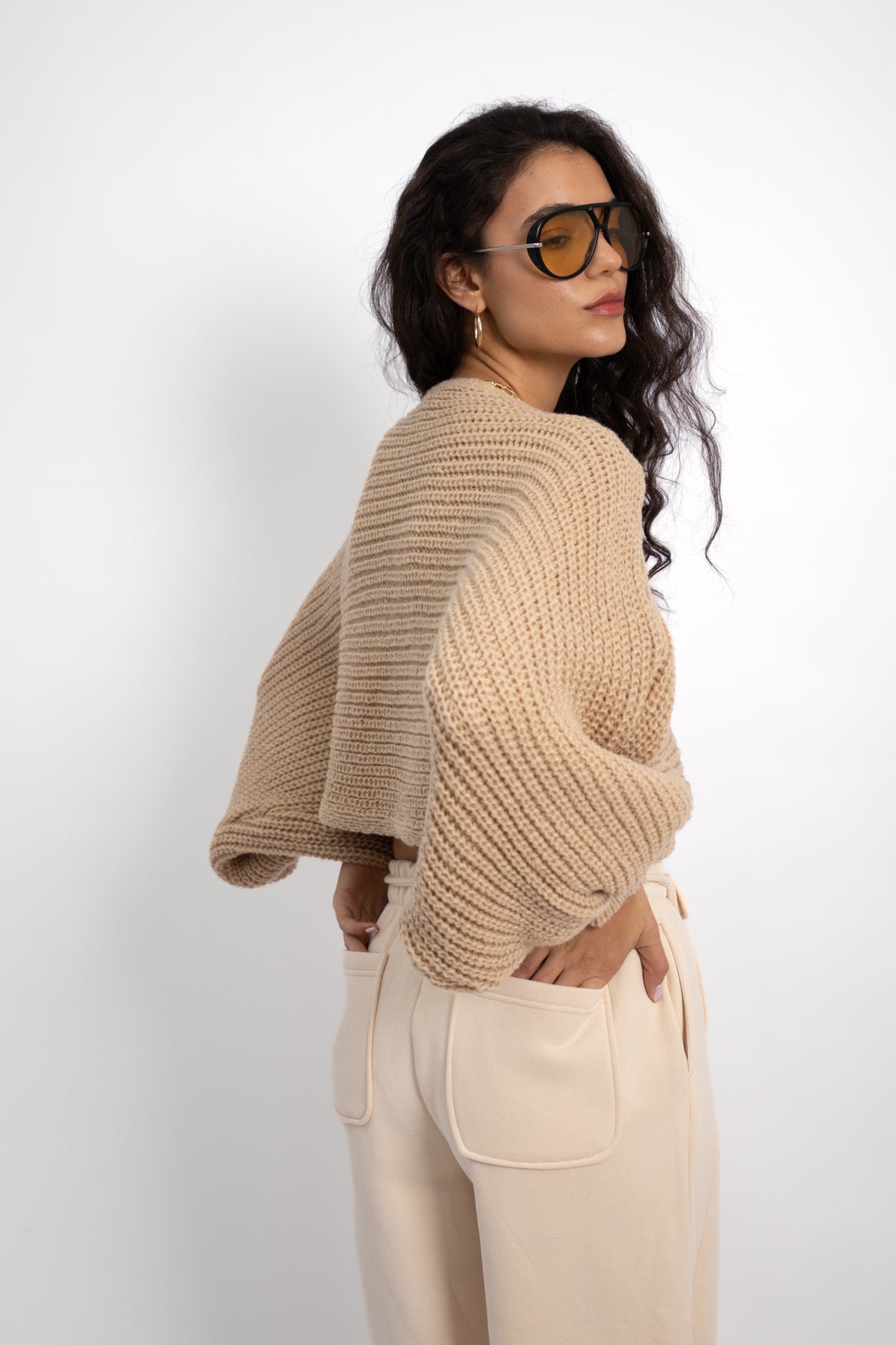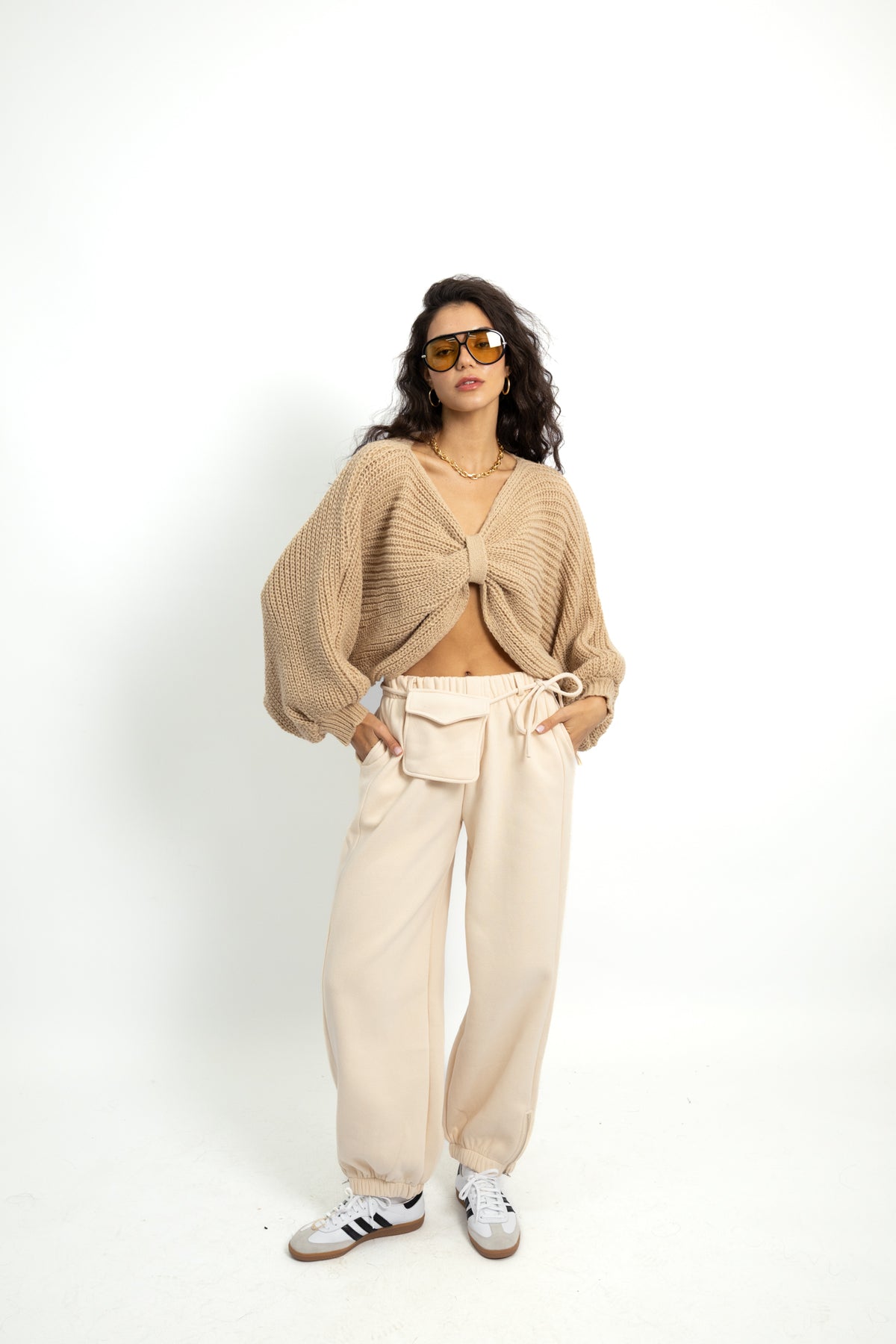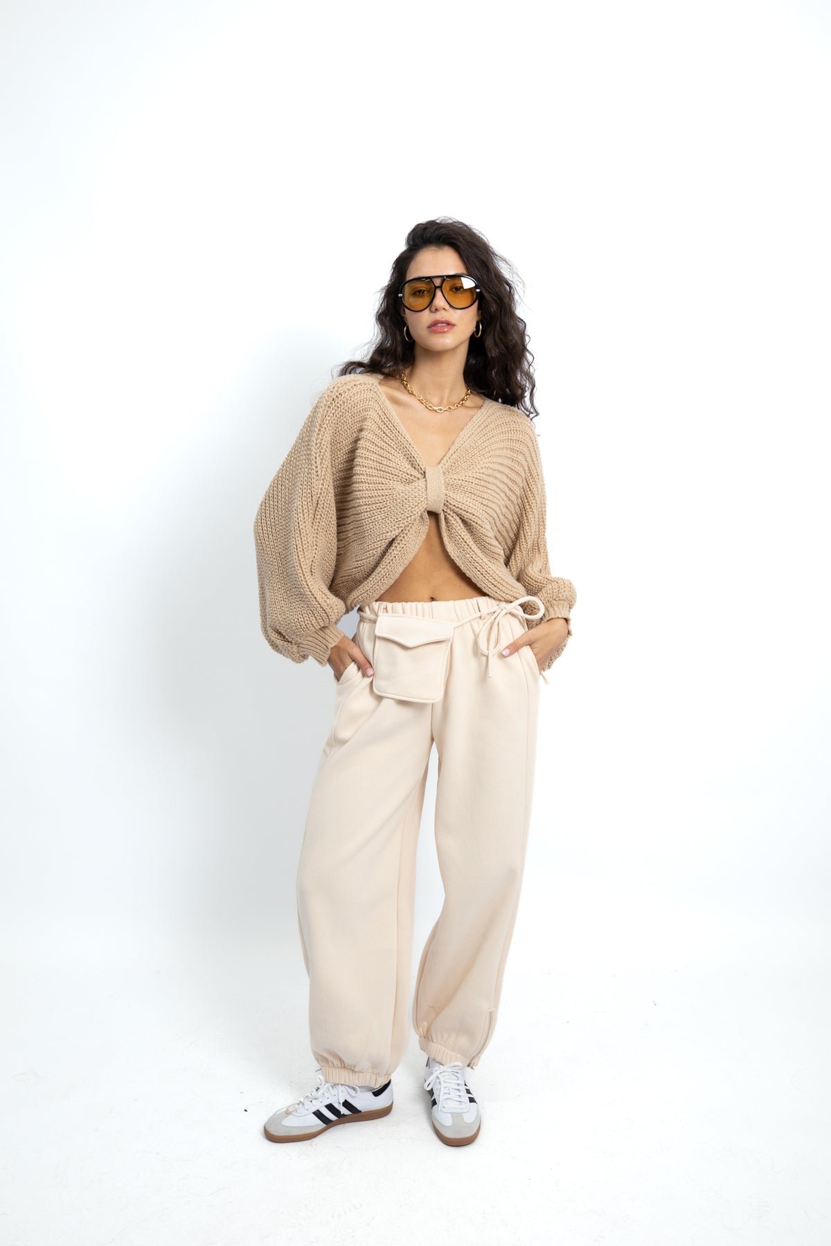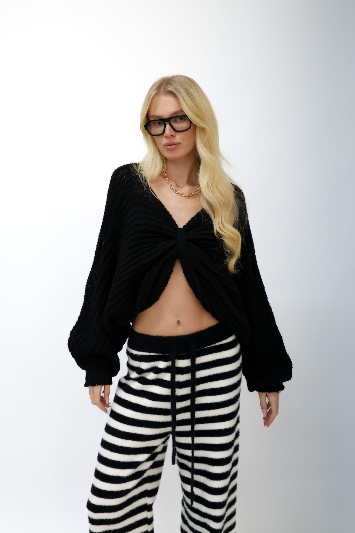 סוודר פפיון קצר במותן עם שרוולים תפוחים