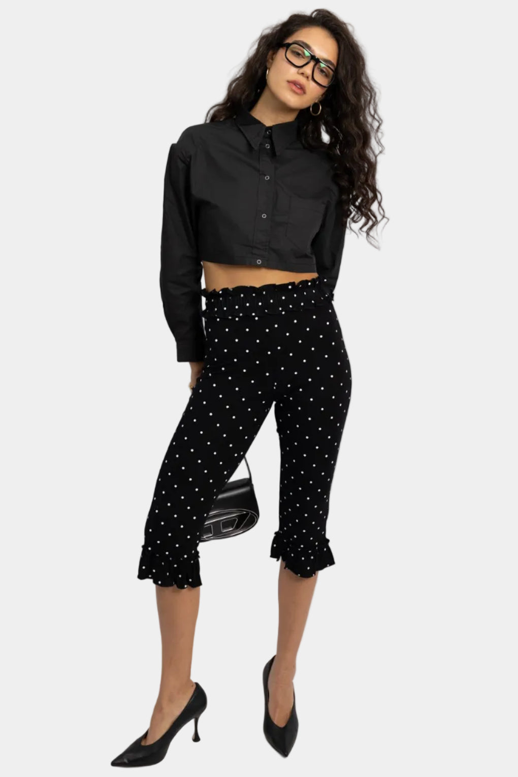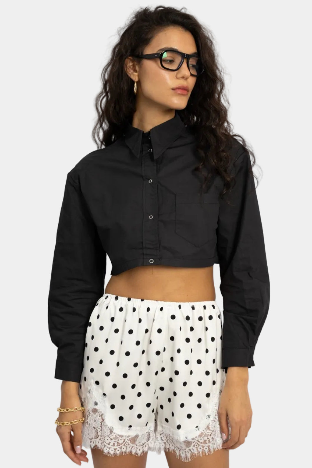 חולצה מכופתרת קרופ דני - שחור