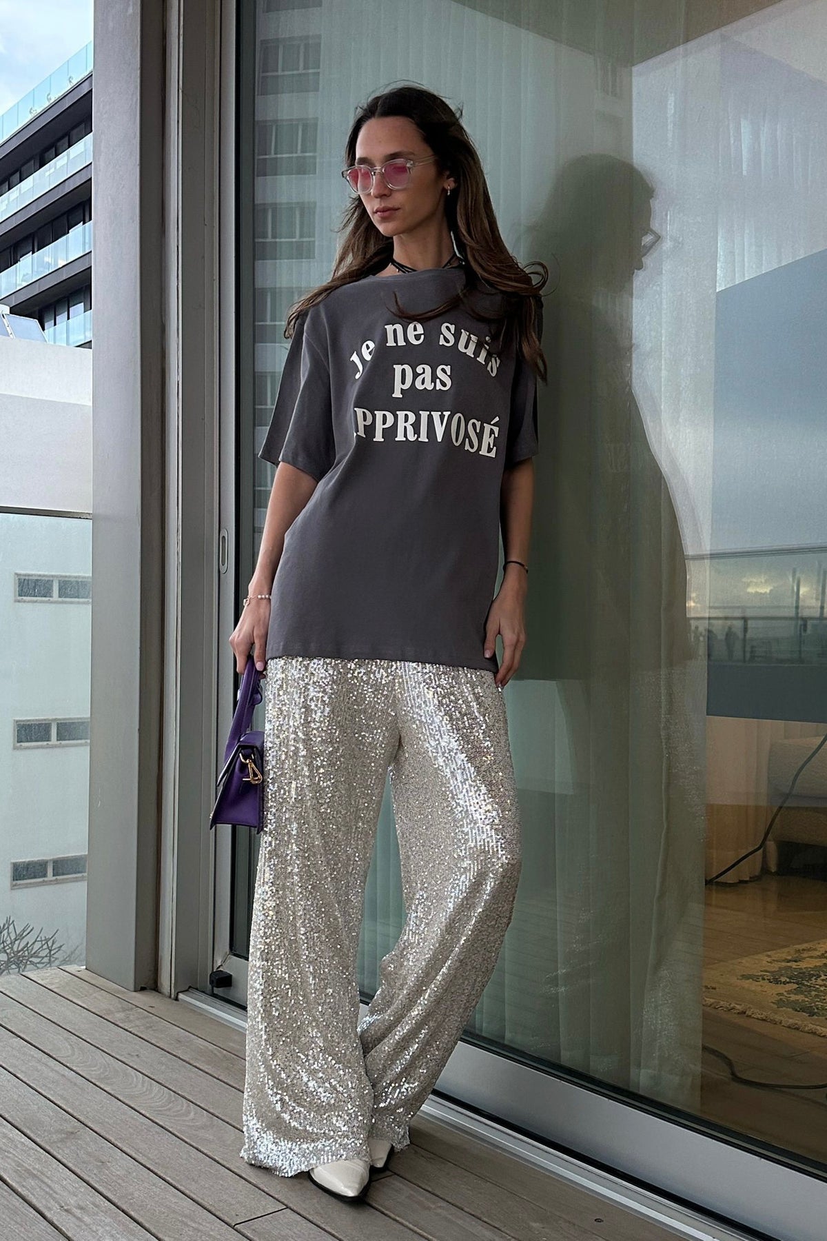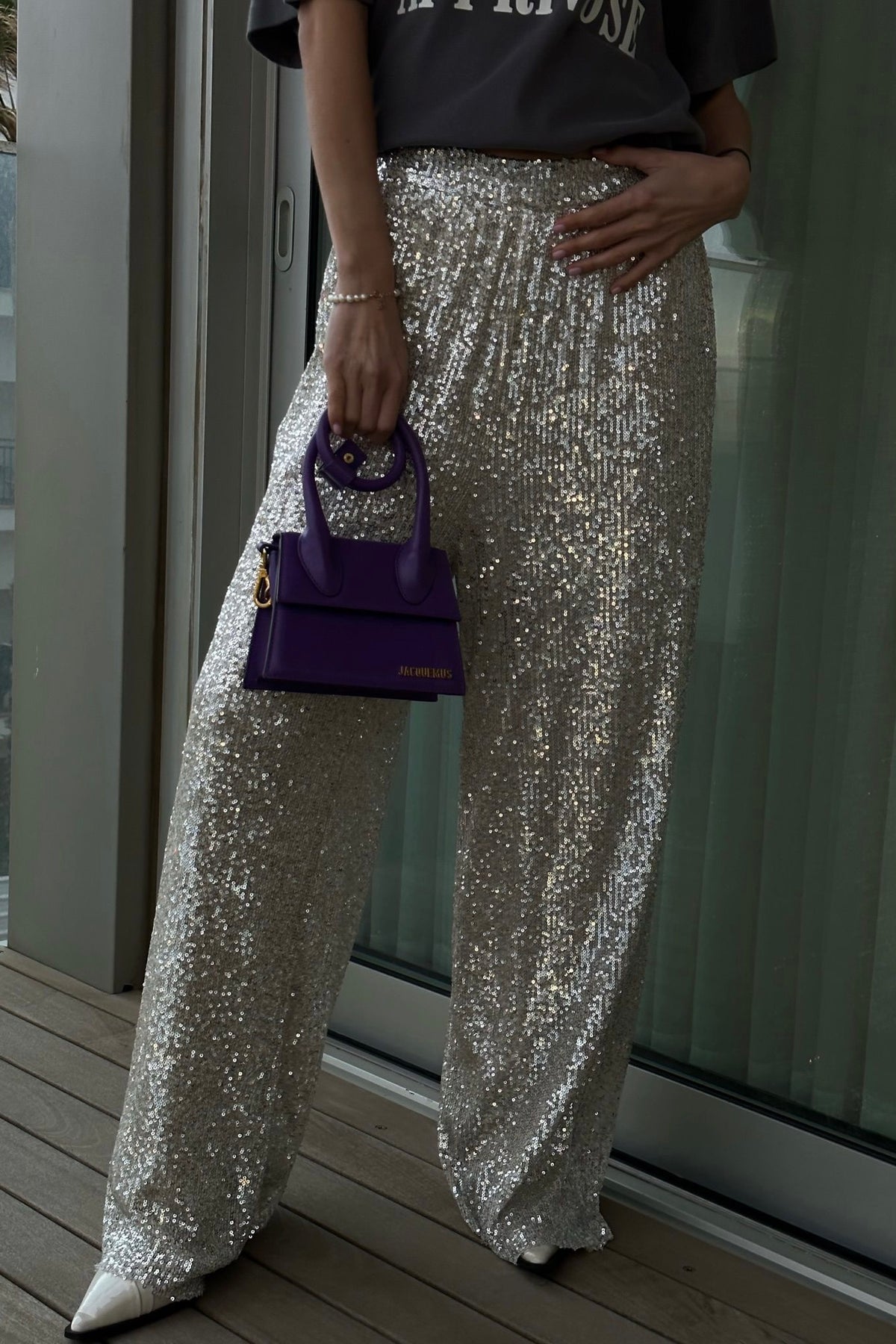 מכנסי פאייטים רחבים בגזרה רחבה