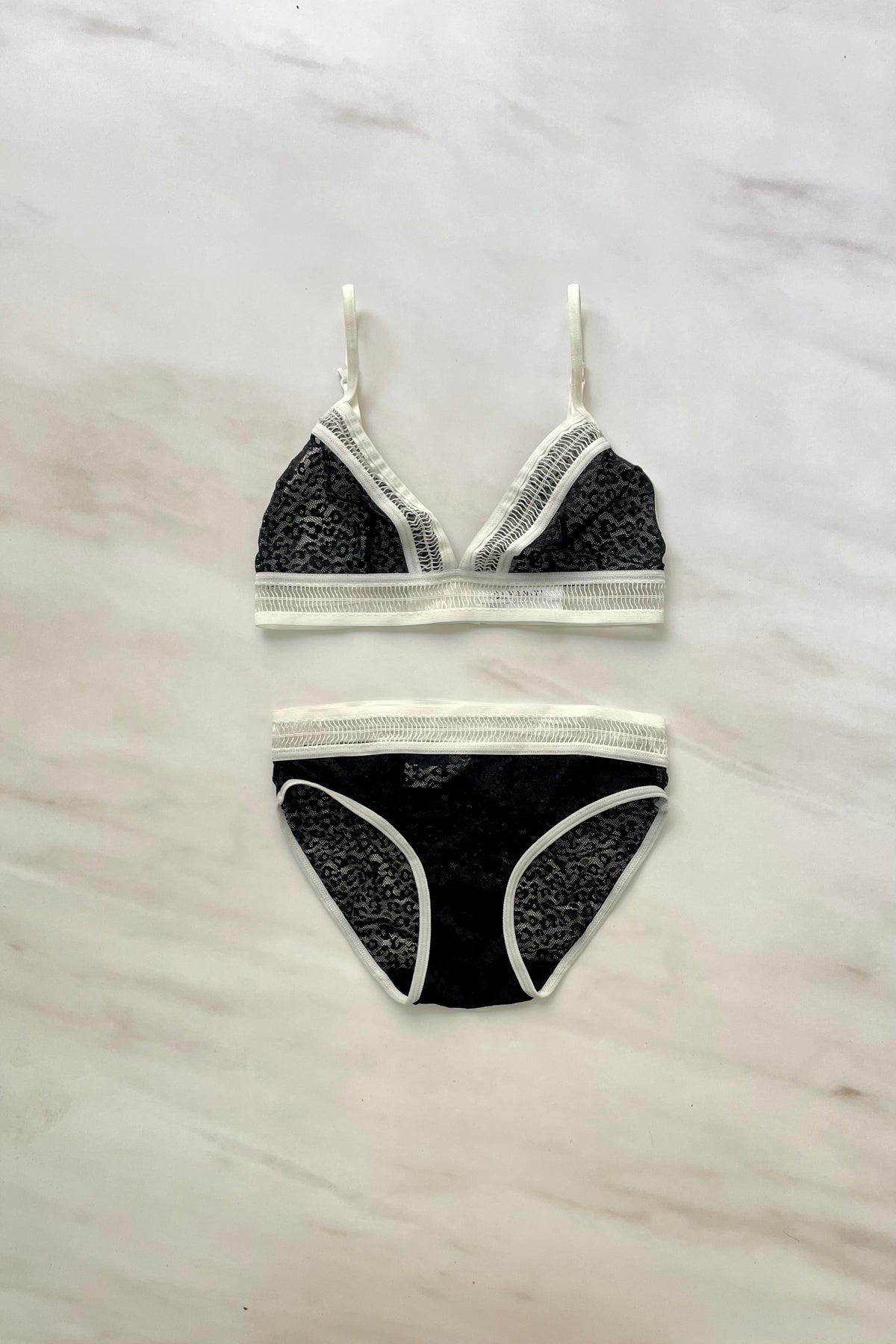 סט תחרה בצבעוניות של שחור לבן בסגנון ספורט אלגנט