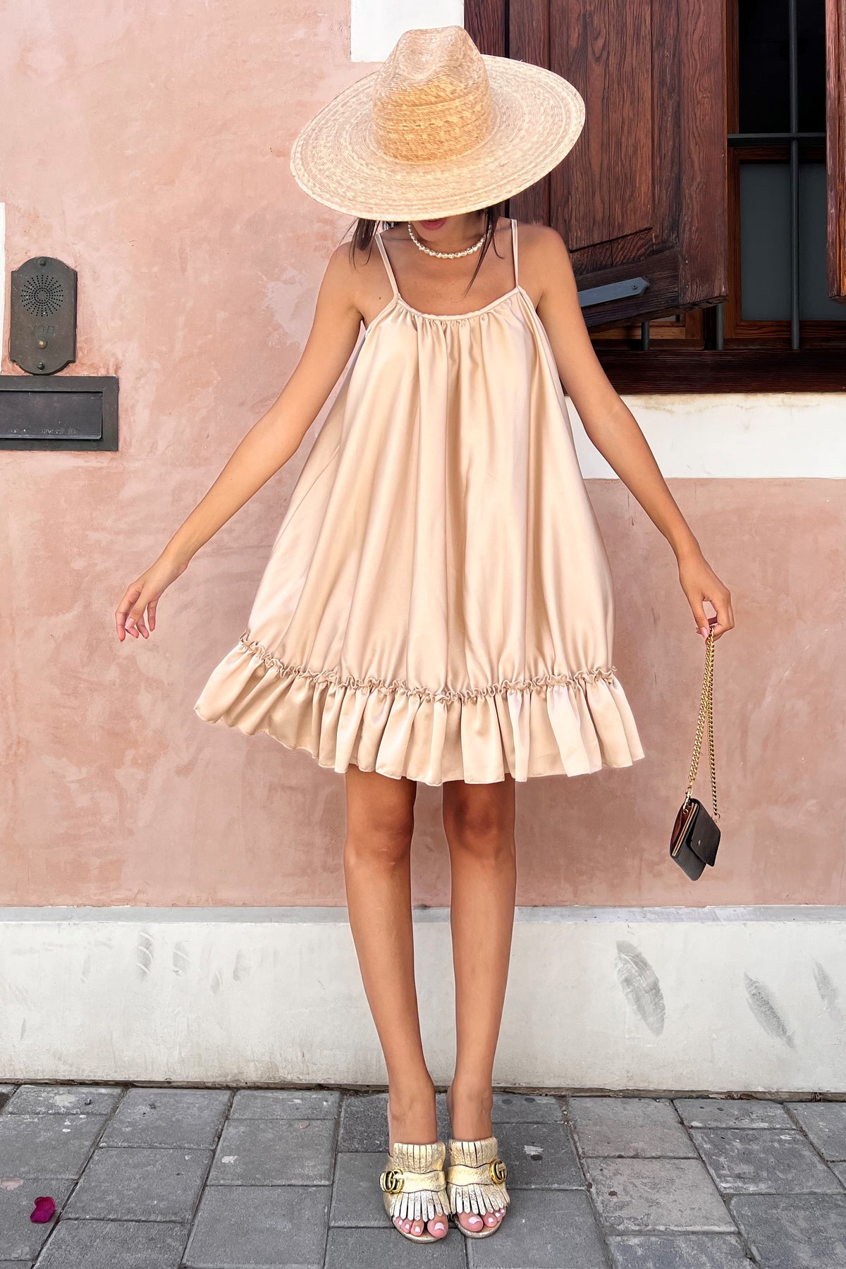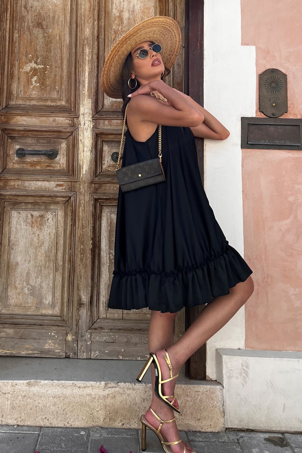שמלת מלמלה קצרה משוחררת שכיף ללבוש עם כתפיות דקות