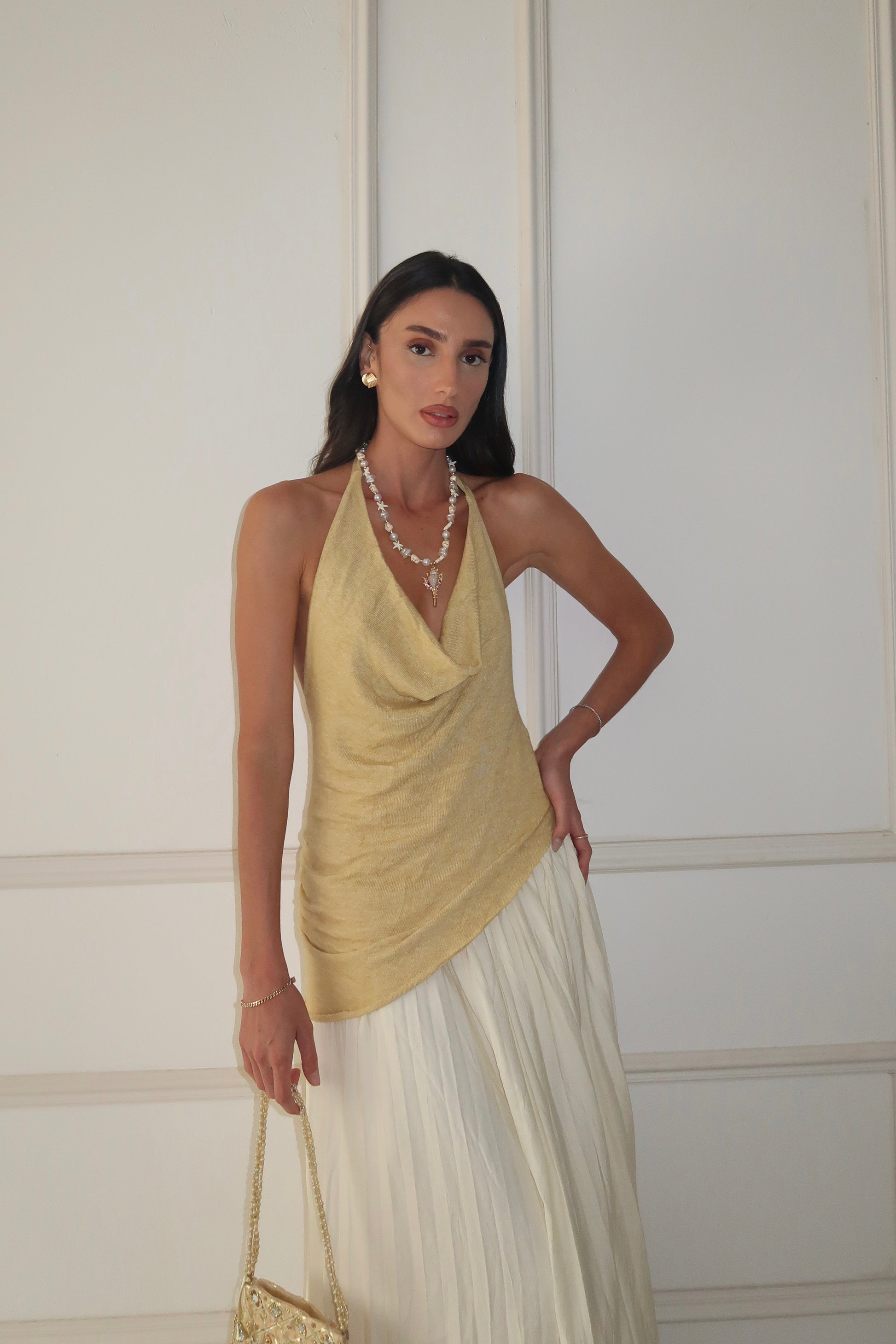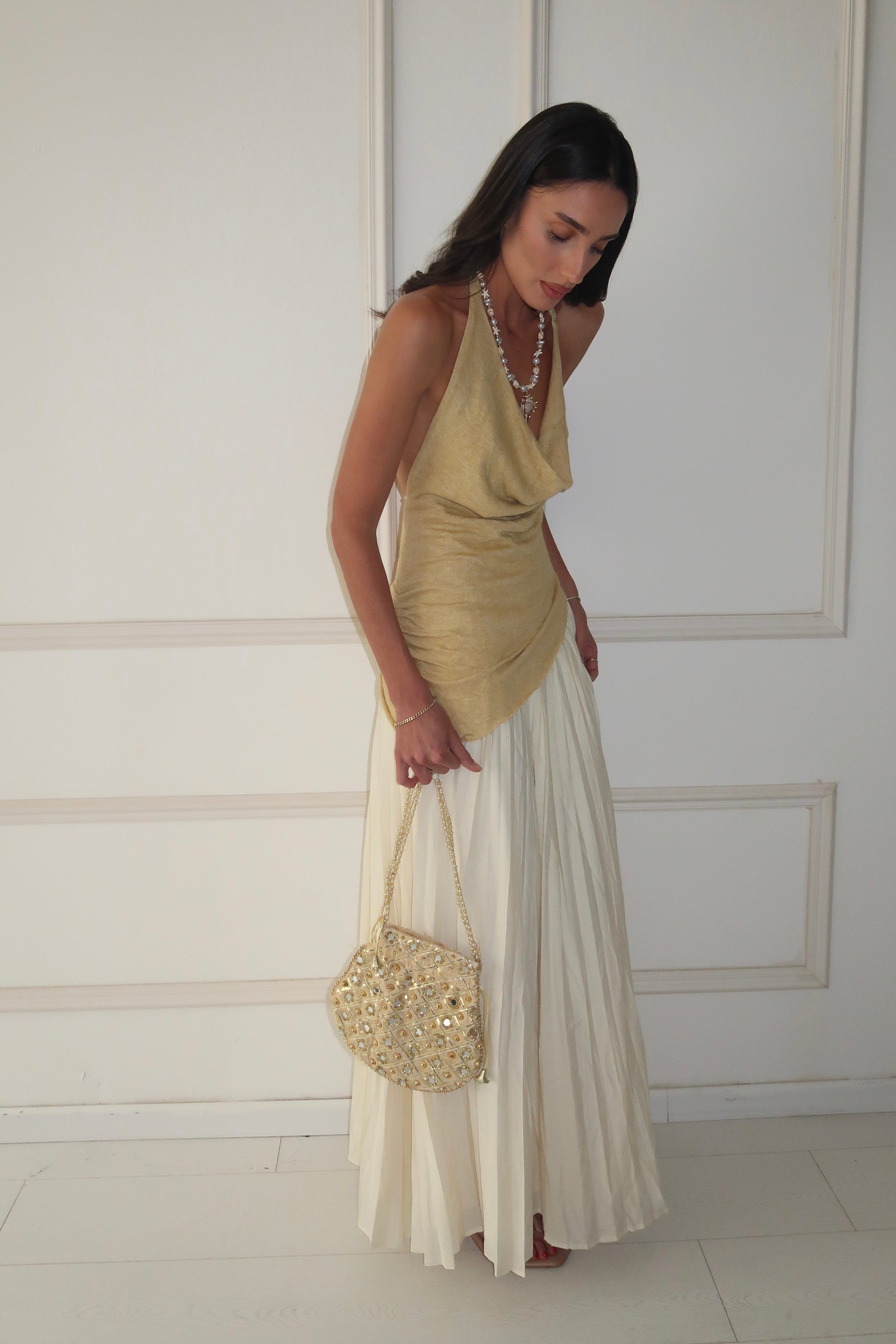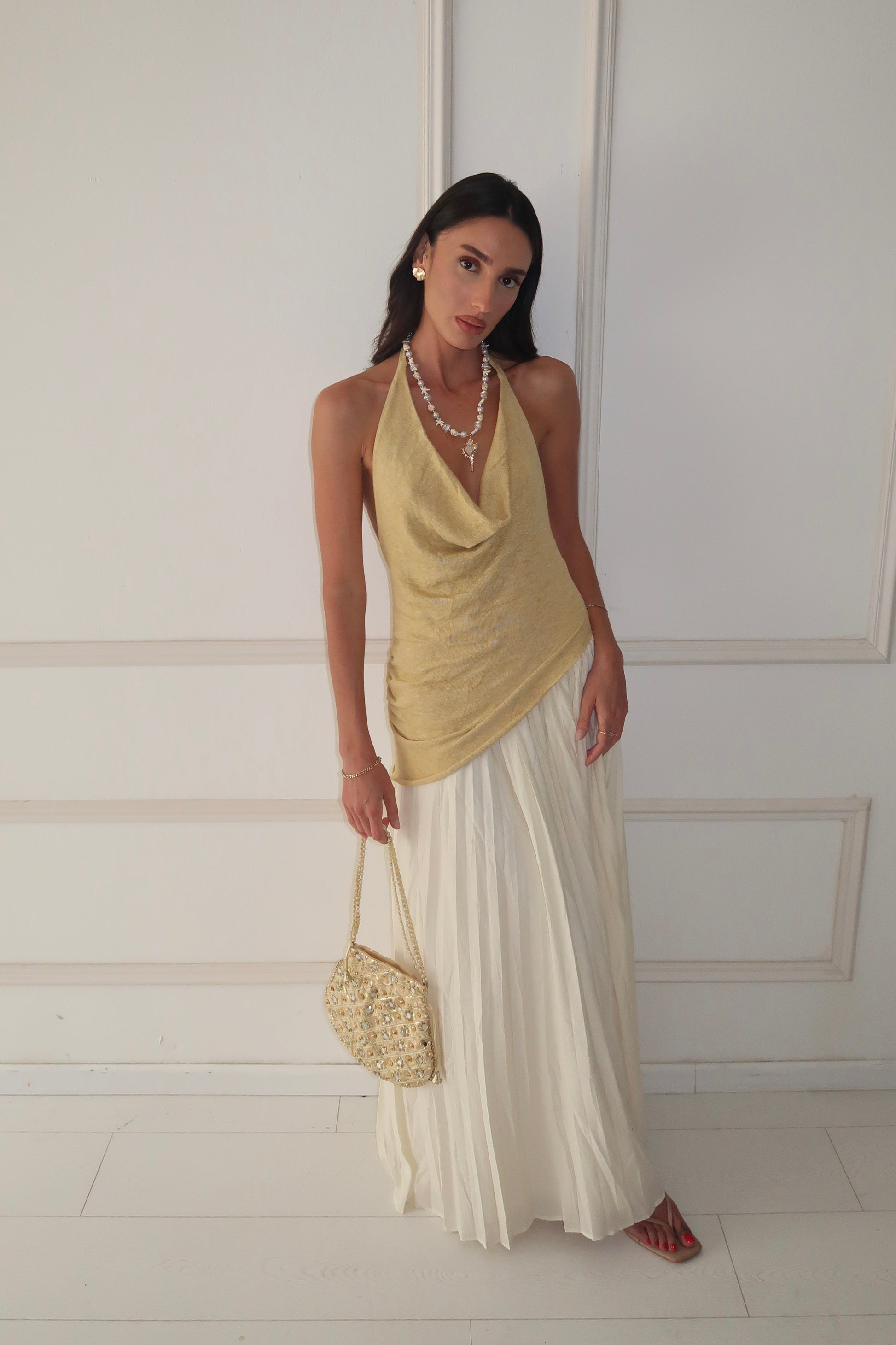 שמחה המורכבת מחצאית פליסה וגופיית קולר מבד סריג