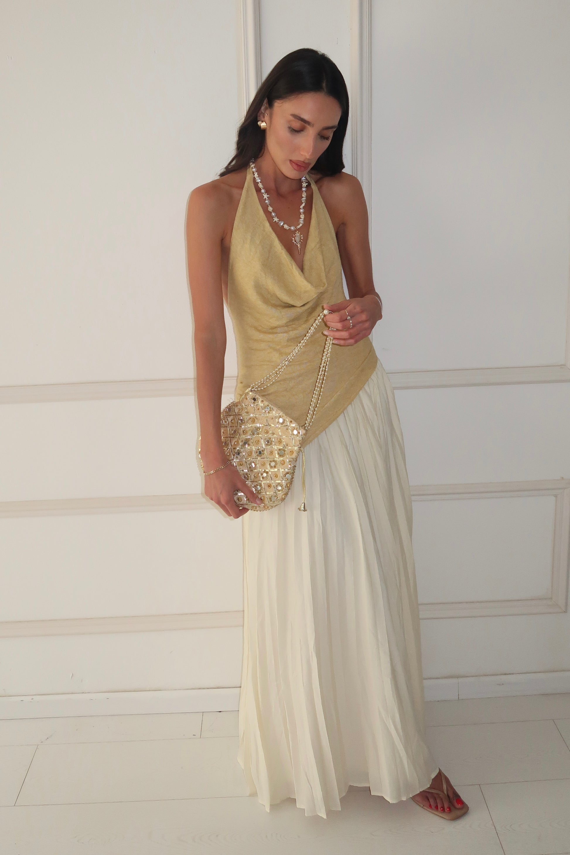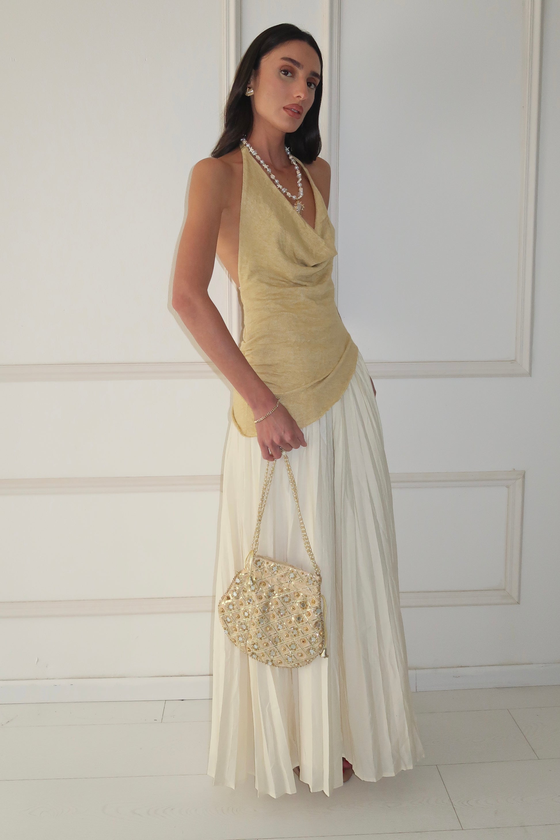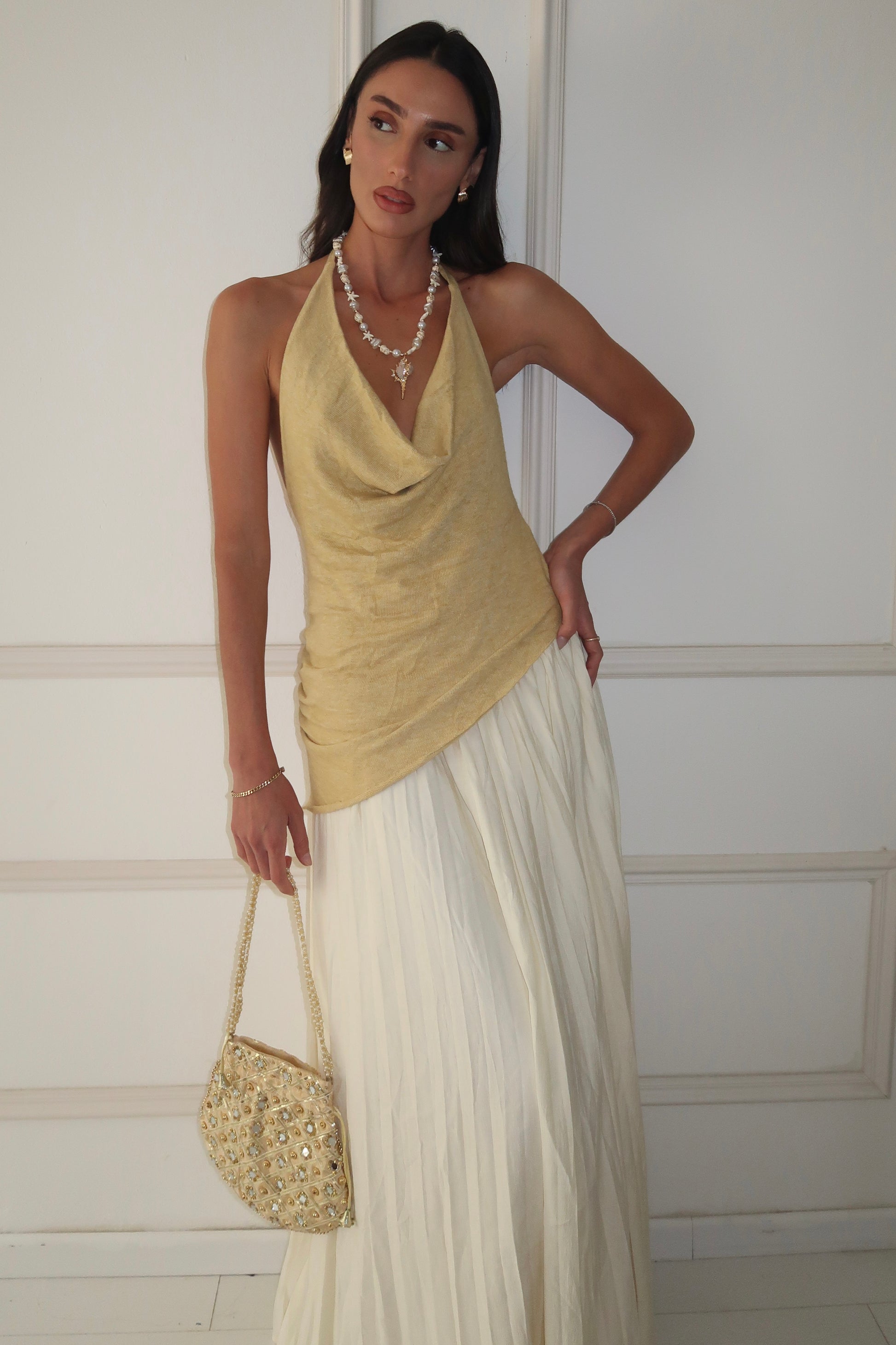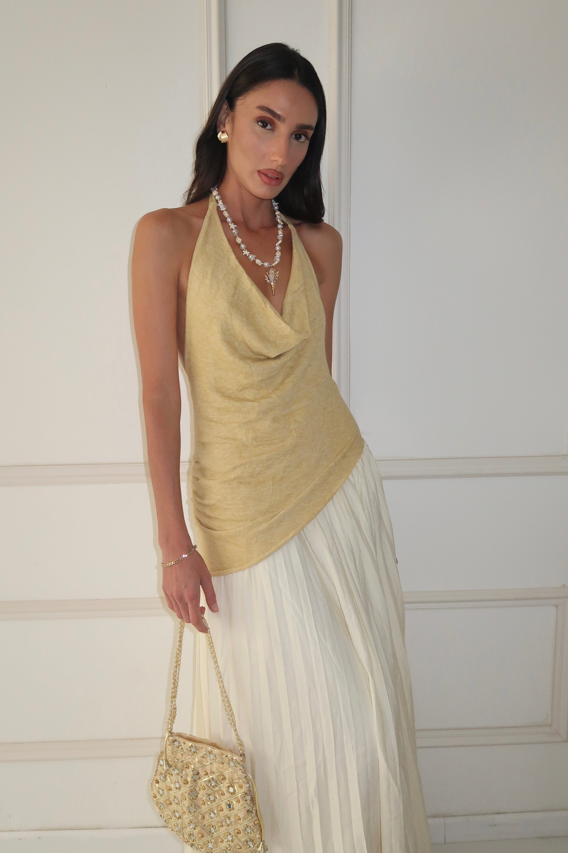 שמחה המורכבת מחצאית פליסה וגופיית קולר מבד סריג