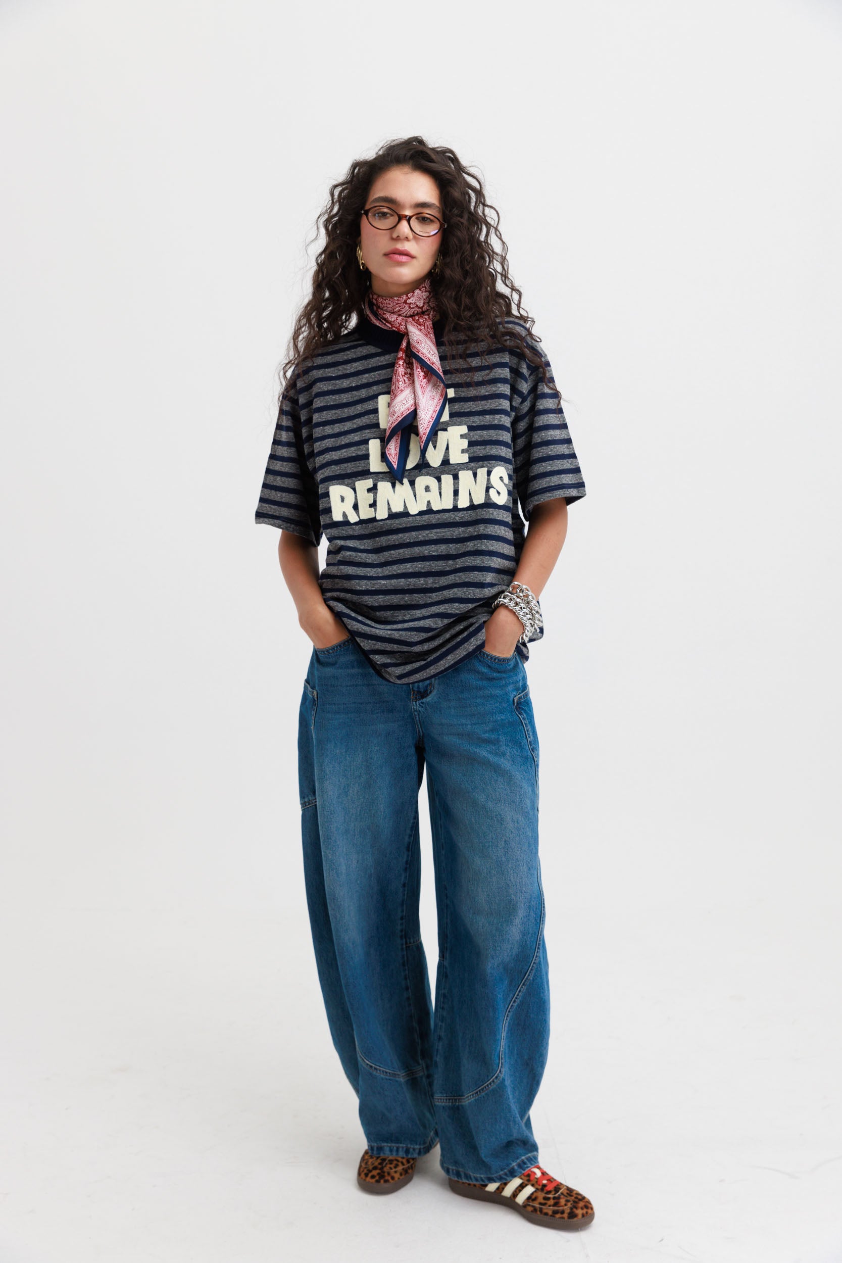 שילוב פסים בכחול כהה ואפור בהיר והדפס טקסט מובלט בחזית