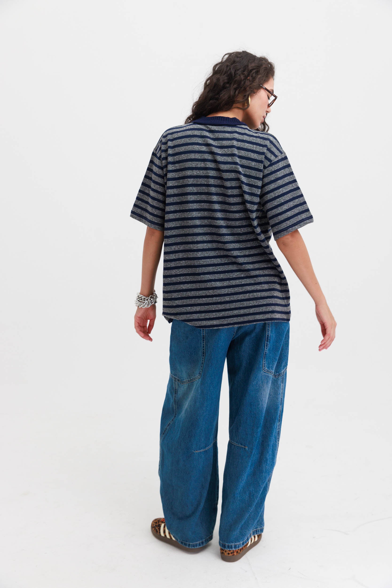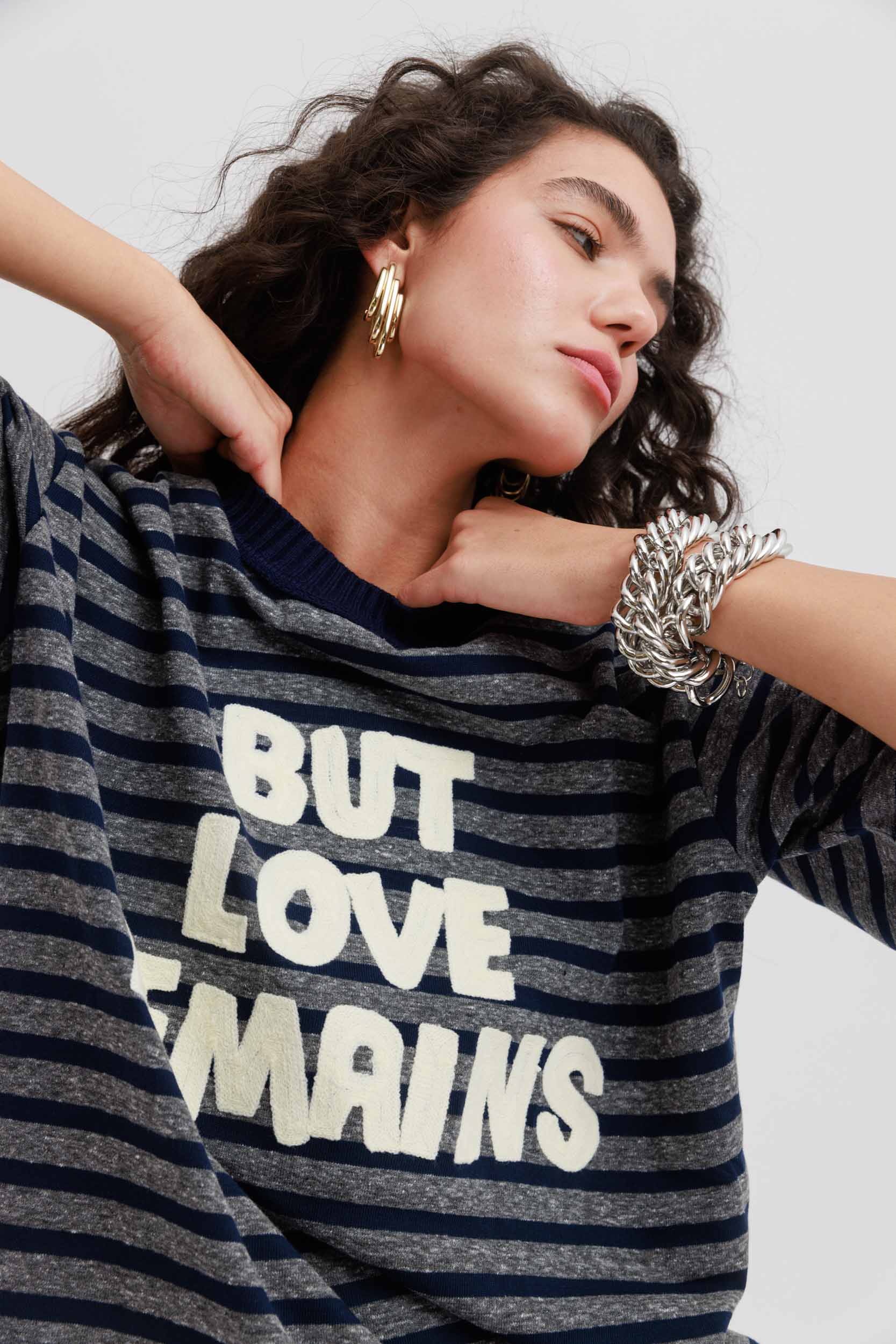 חולצת פסים מסריג צמר דק, בגזרת אוברסייז נינוחה