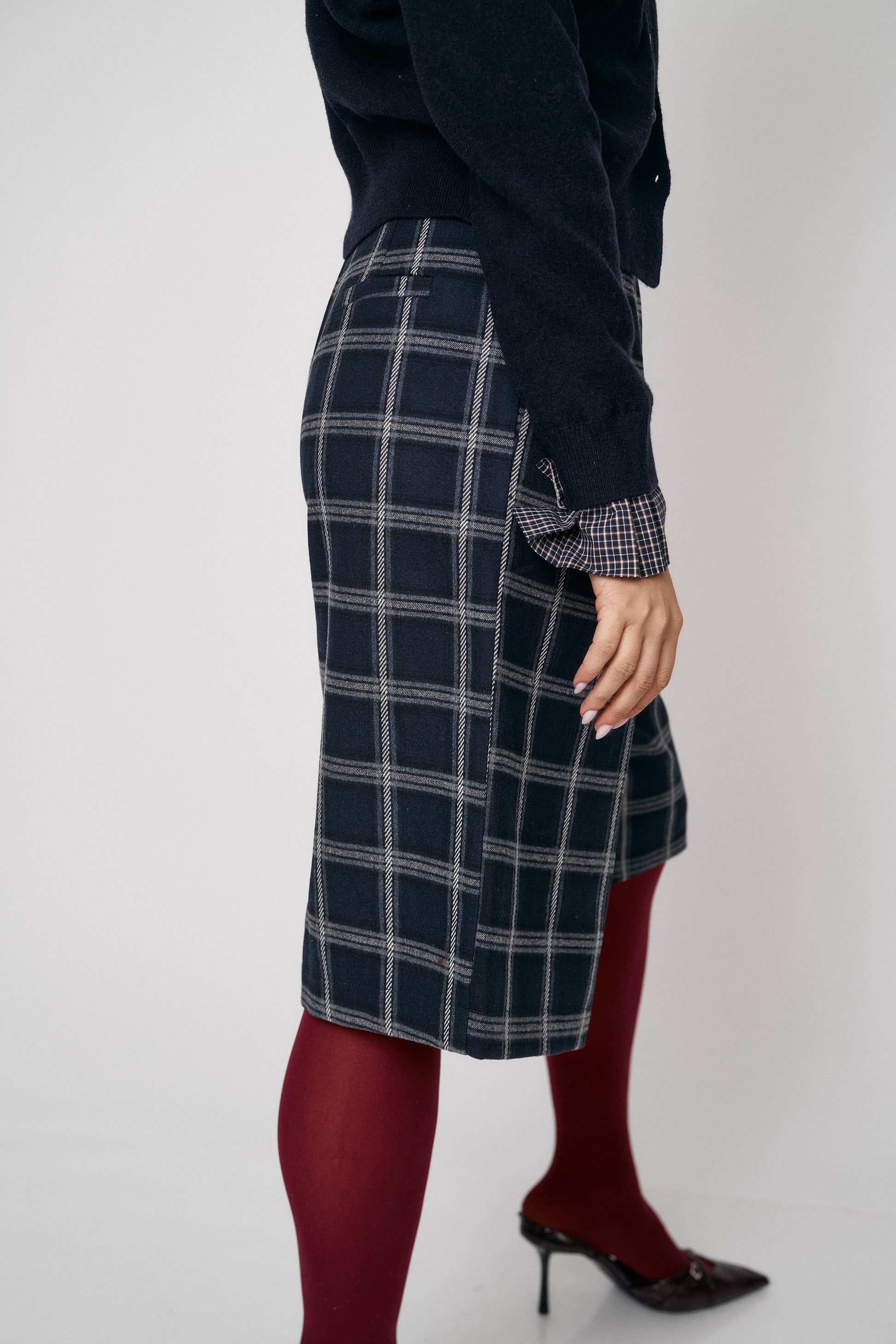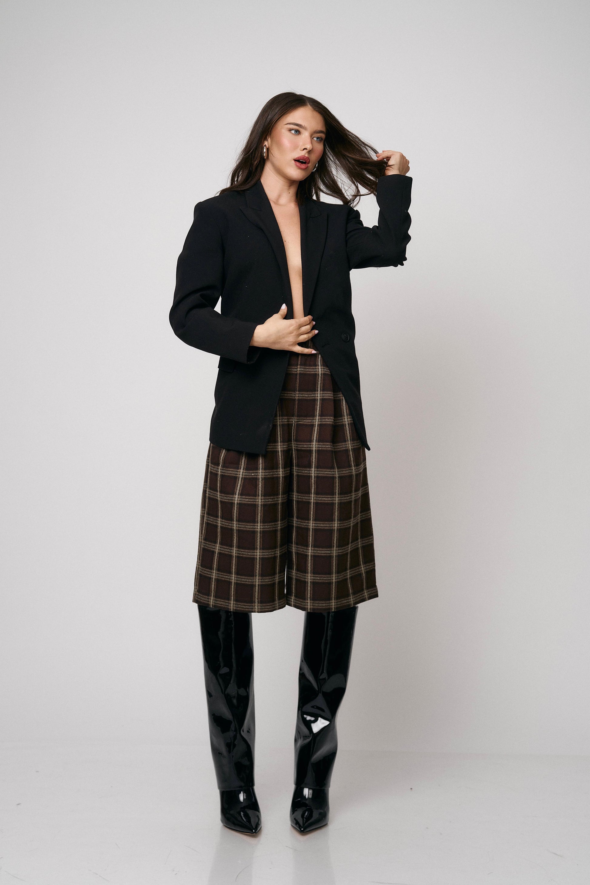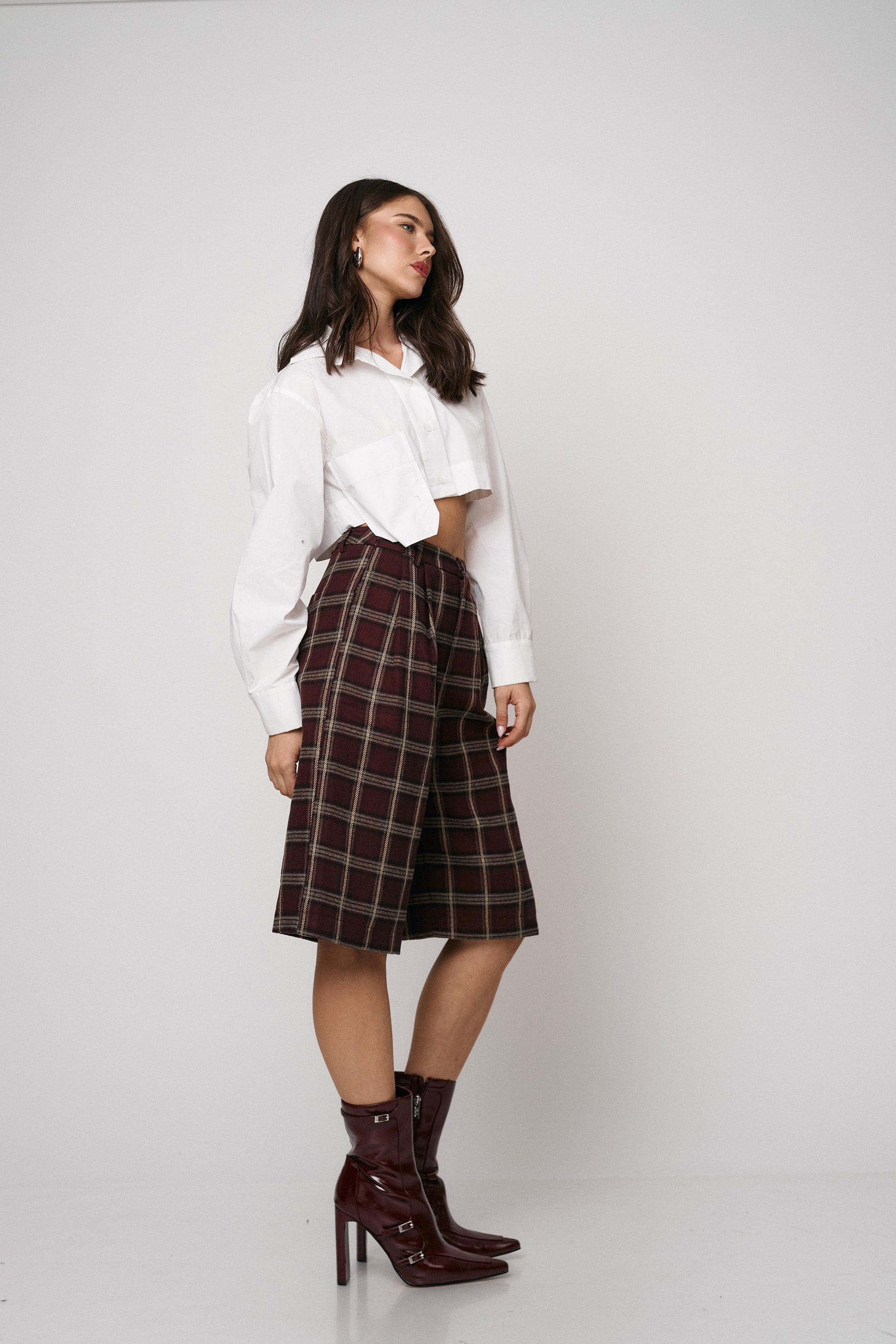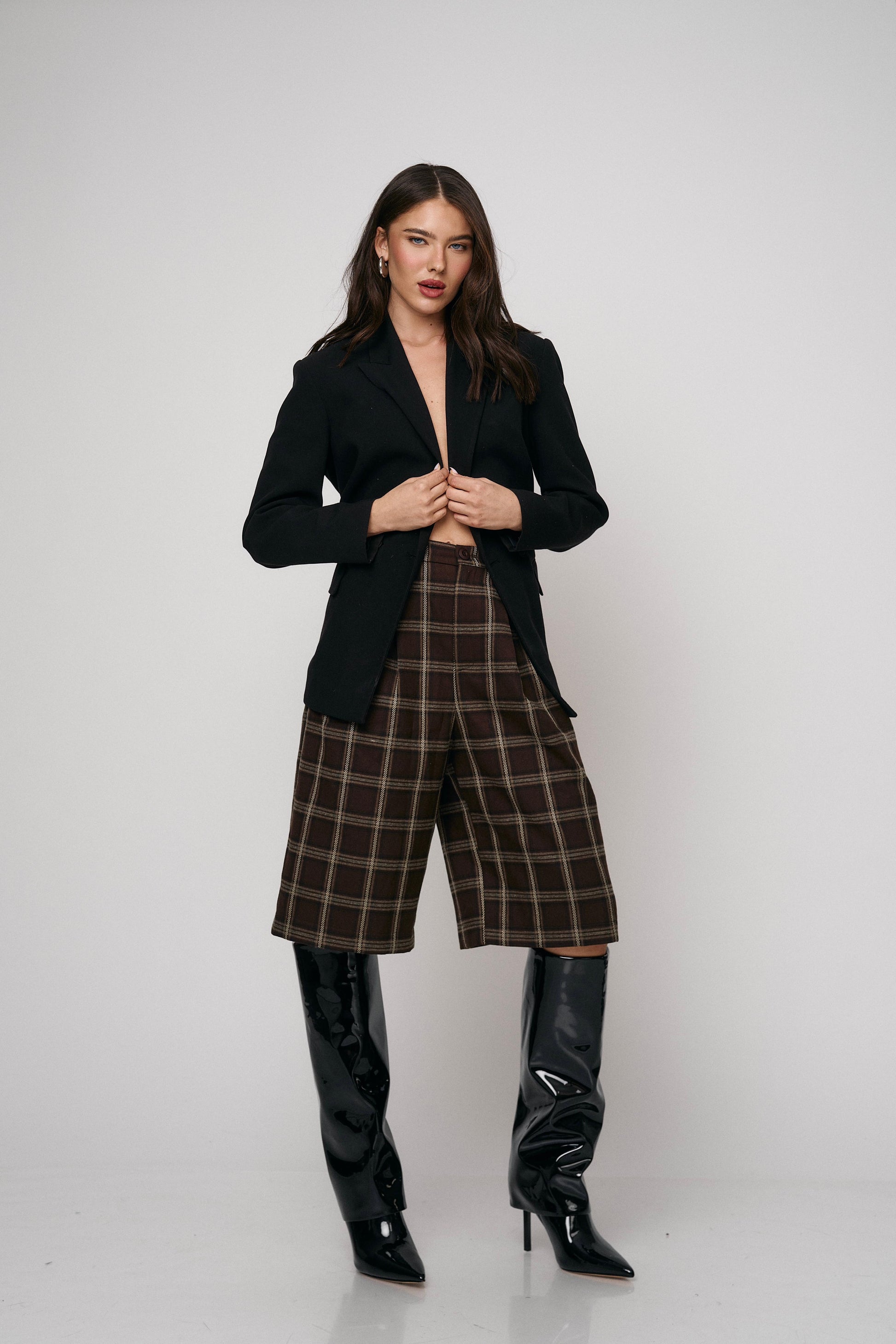 מכנס קלאסי בגזרת ברמודה עם הדפס משבצות מודרני. נוח, מחטב ומתאים ללוקים יום־יומיים או יציאה