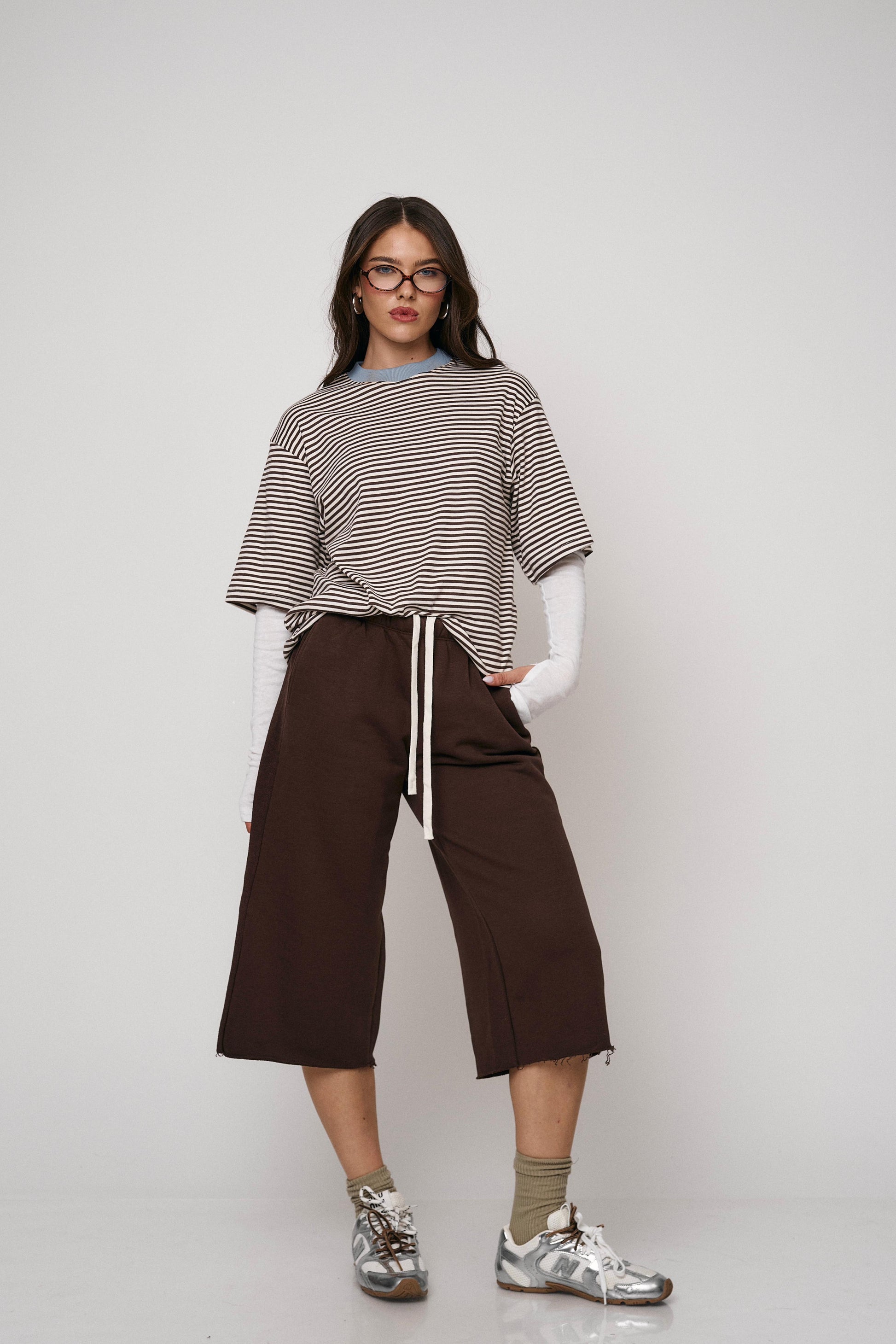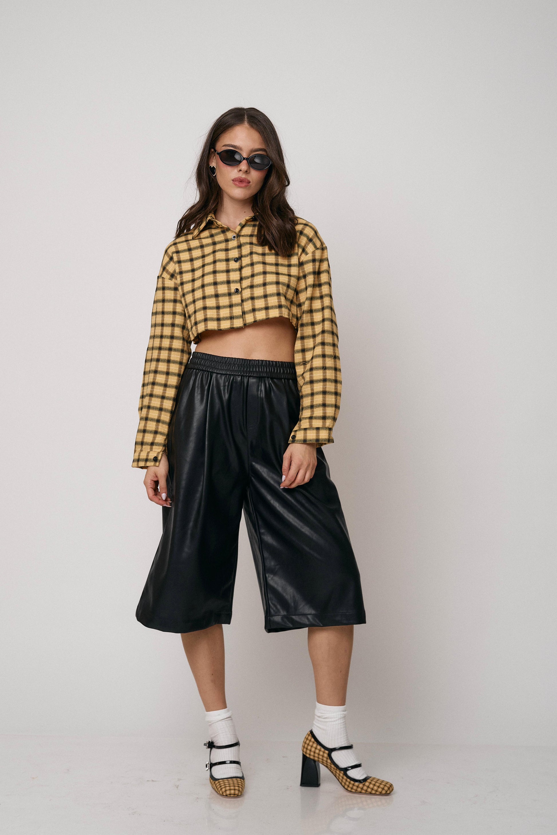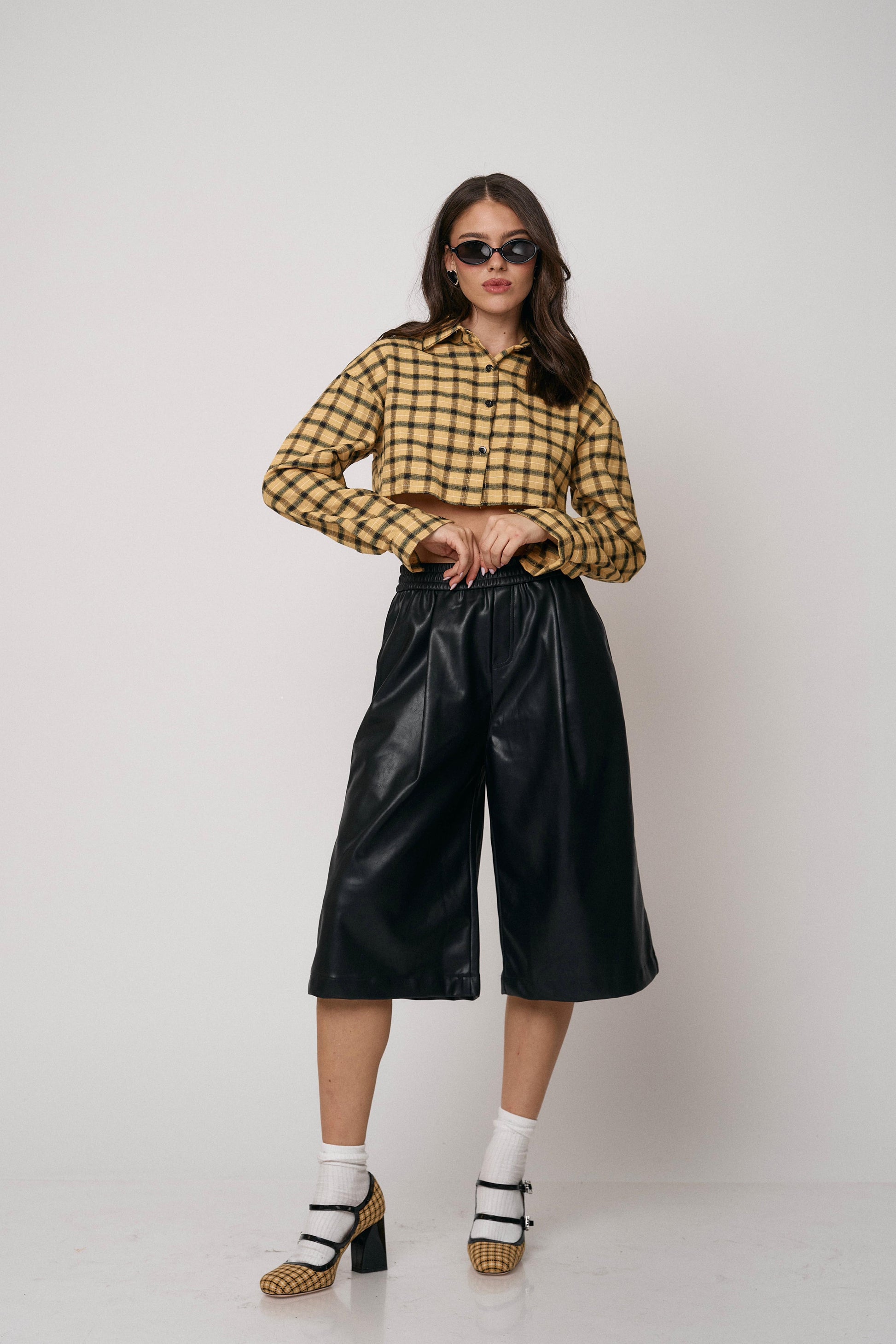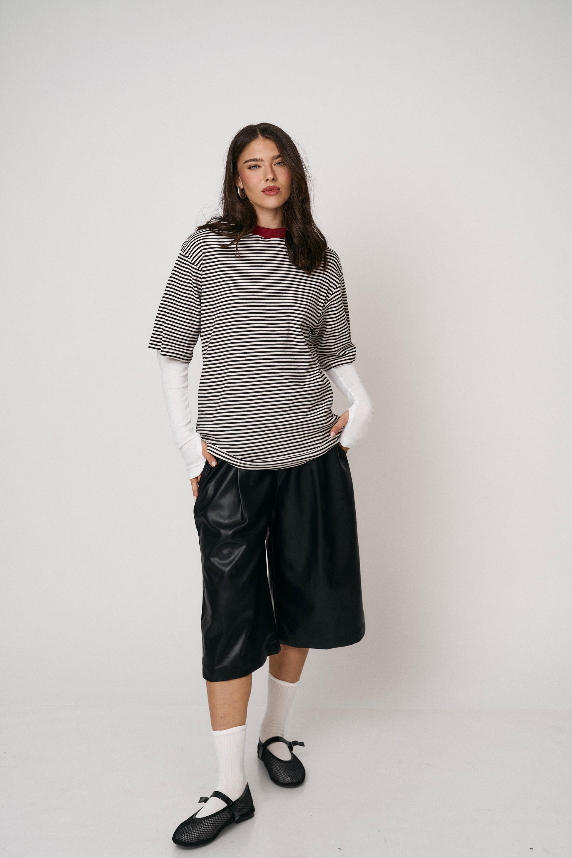 מכנס ברמודה דמוי עור, גזרה רחבה ונוחה עם מראה מעוצב ומתקדם. מושלם ליום ולערב.