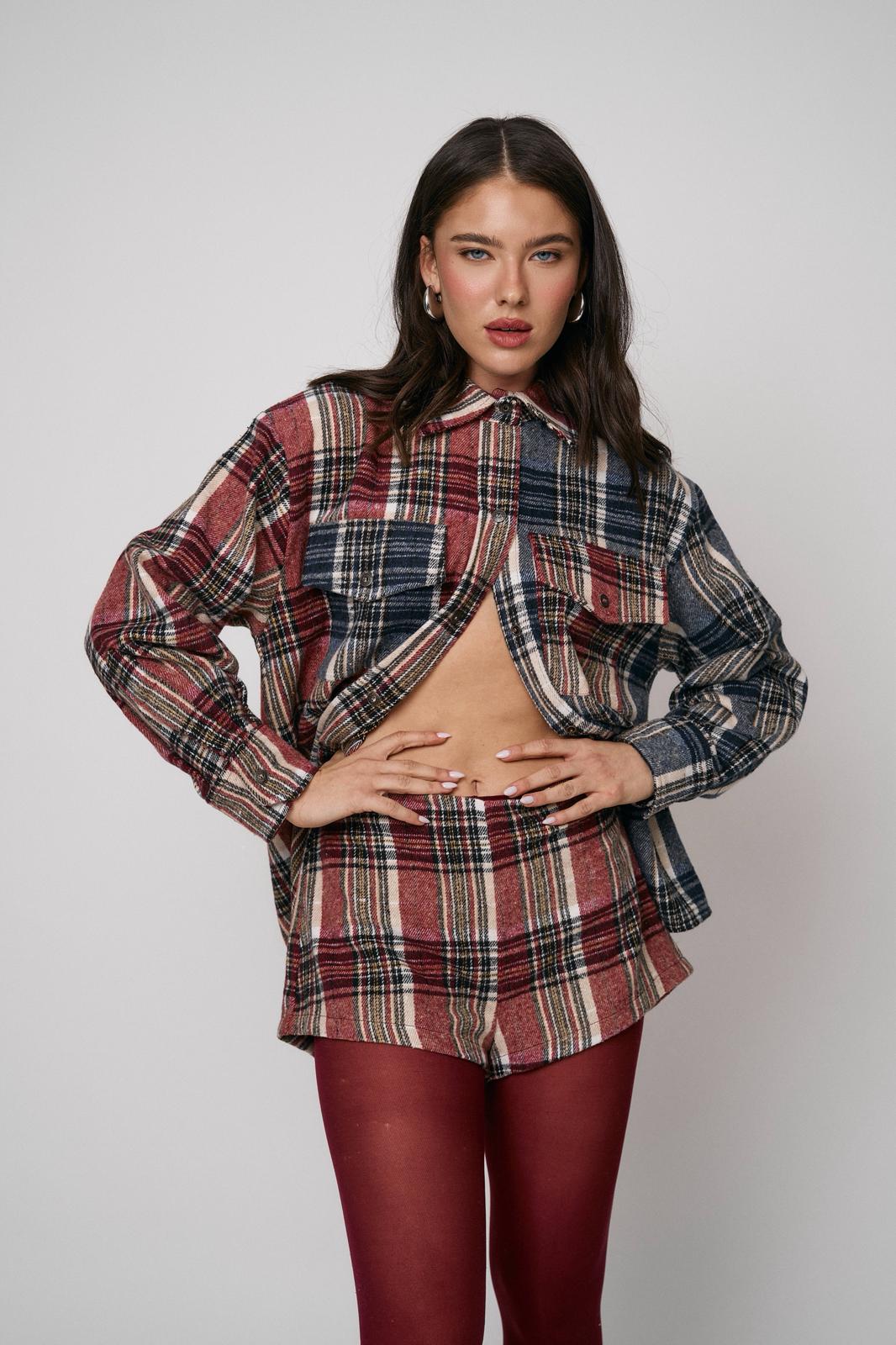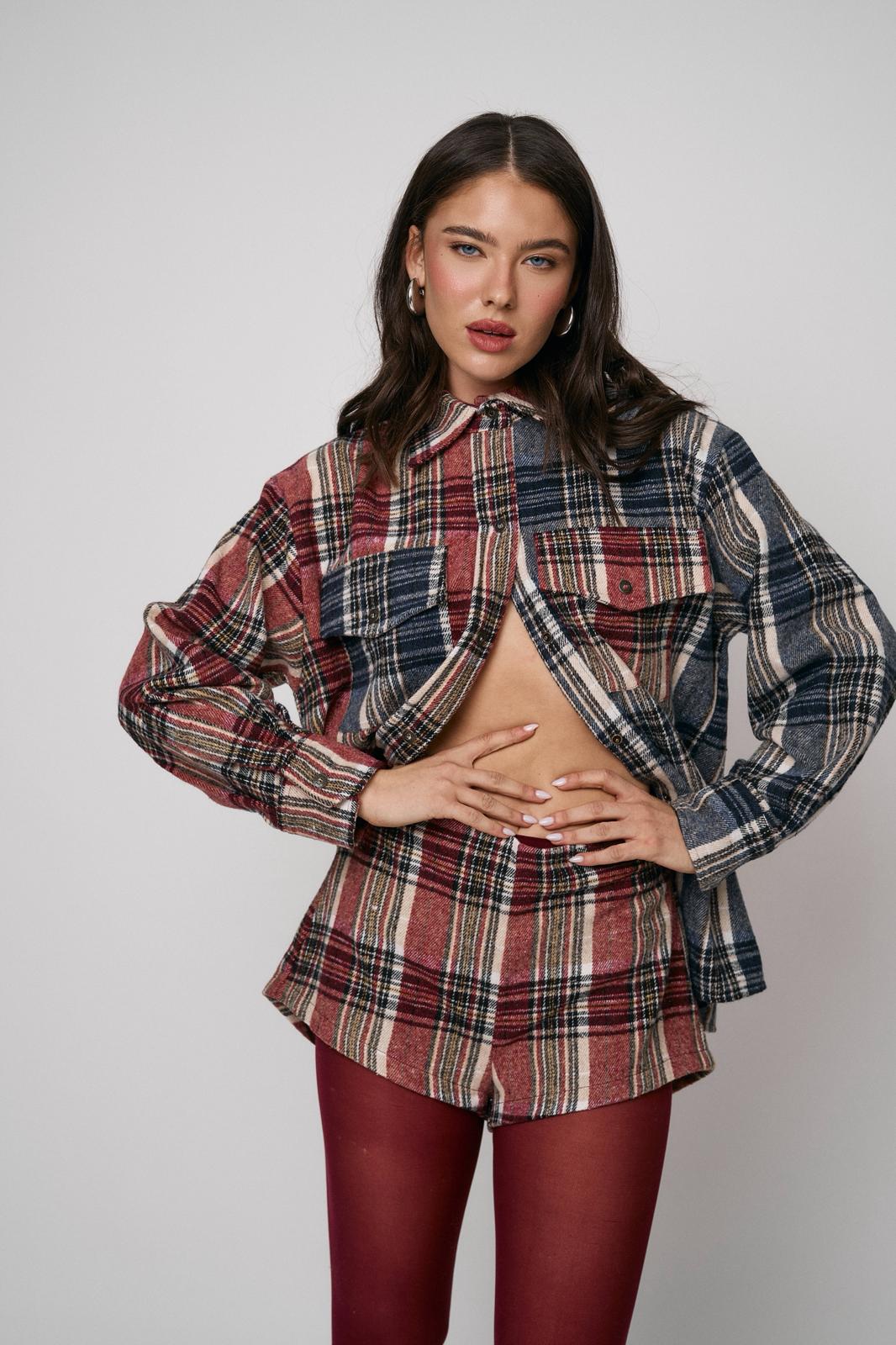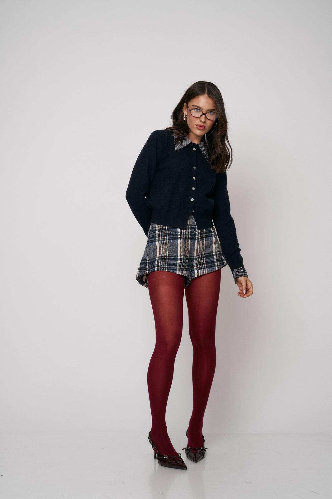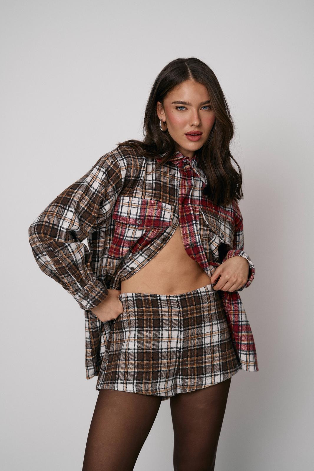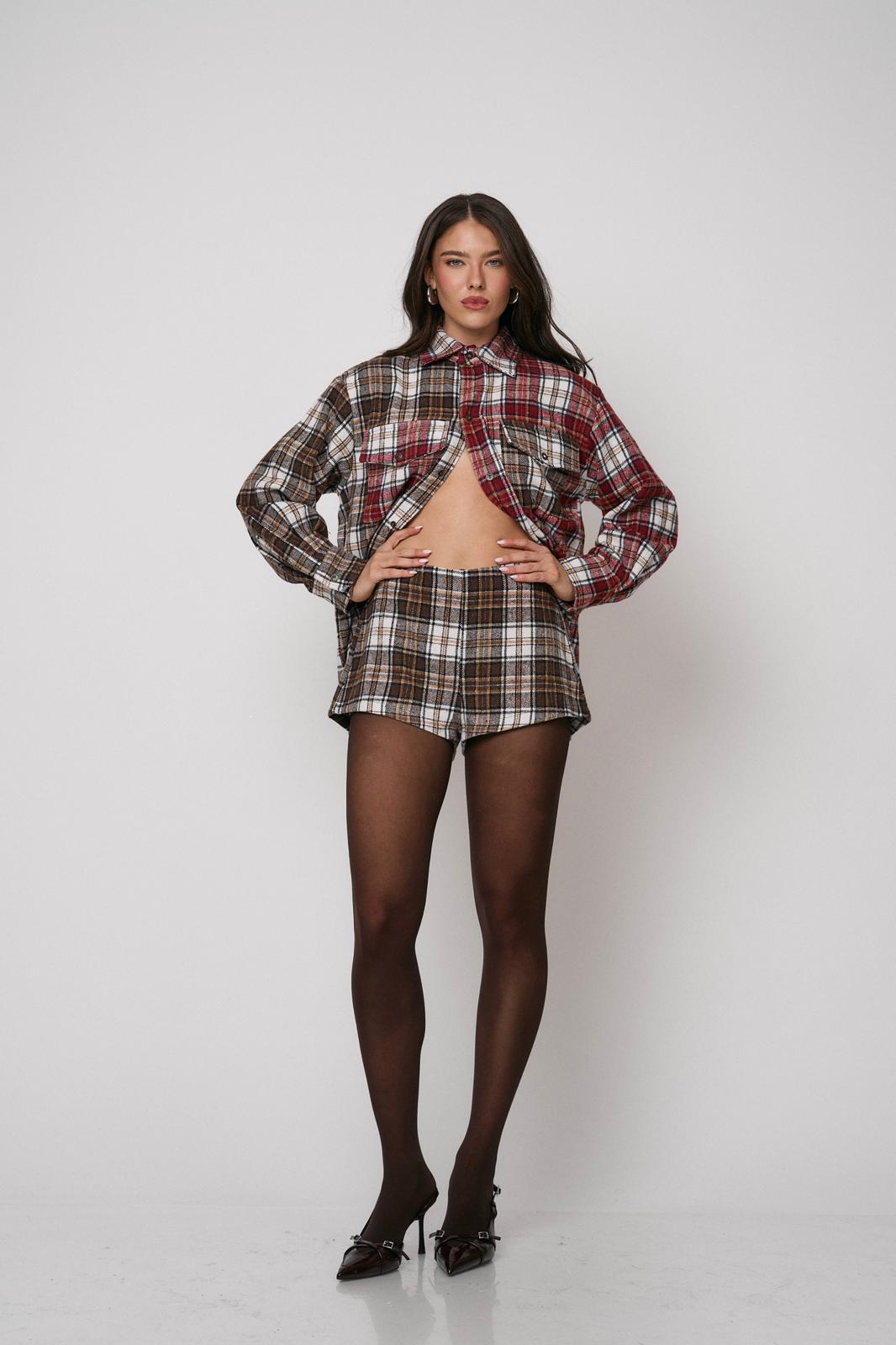 מכנס קצר משובץ בגזרה מחמיאה, מתאים לשילוב עם קרדיגנים וחולצות פלנל למראה מלא סטייל.