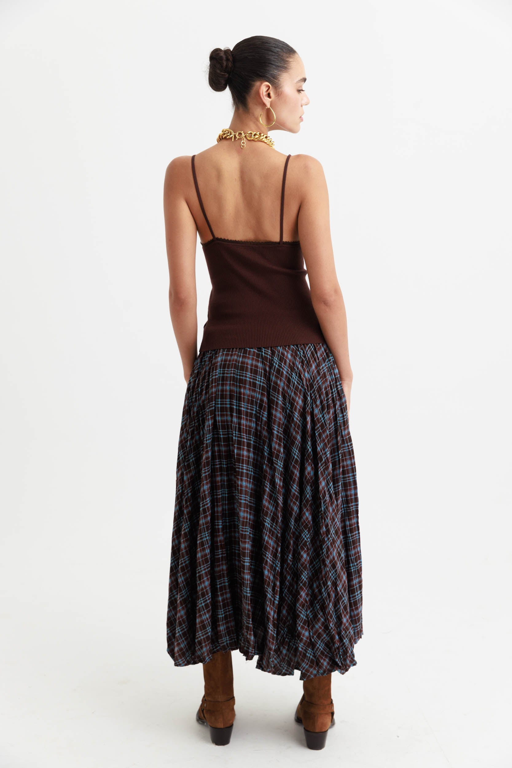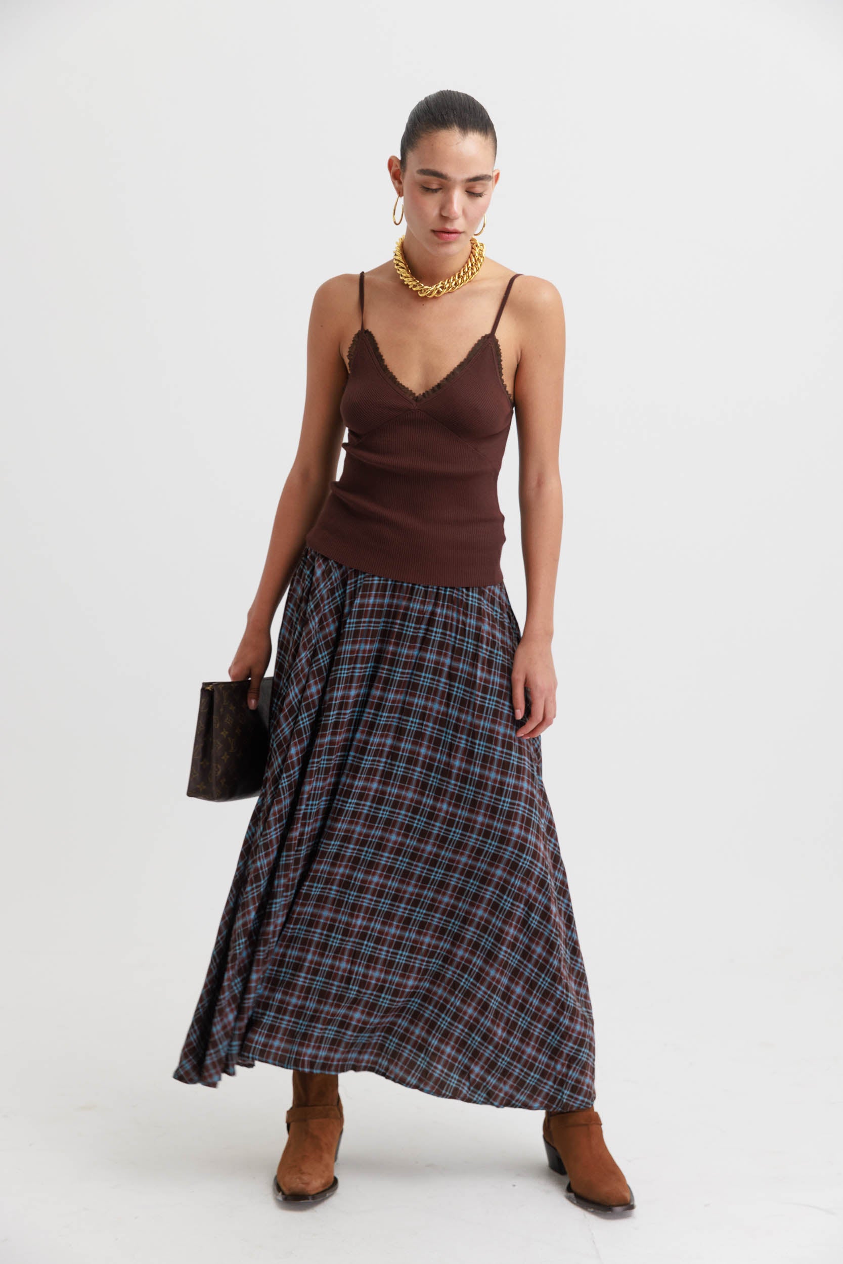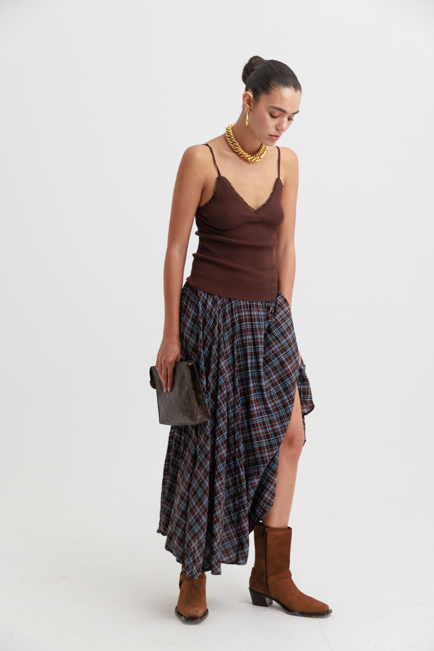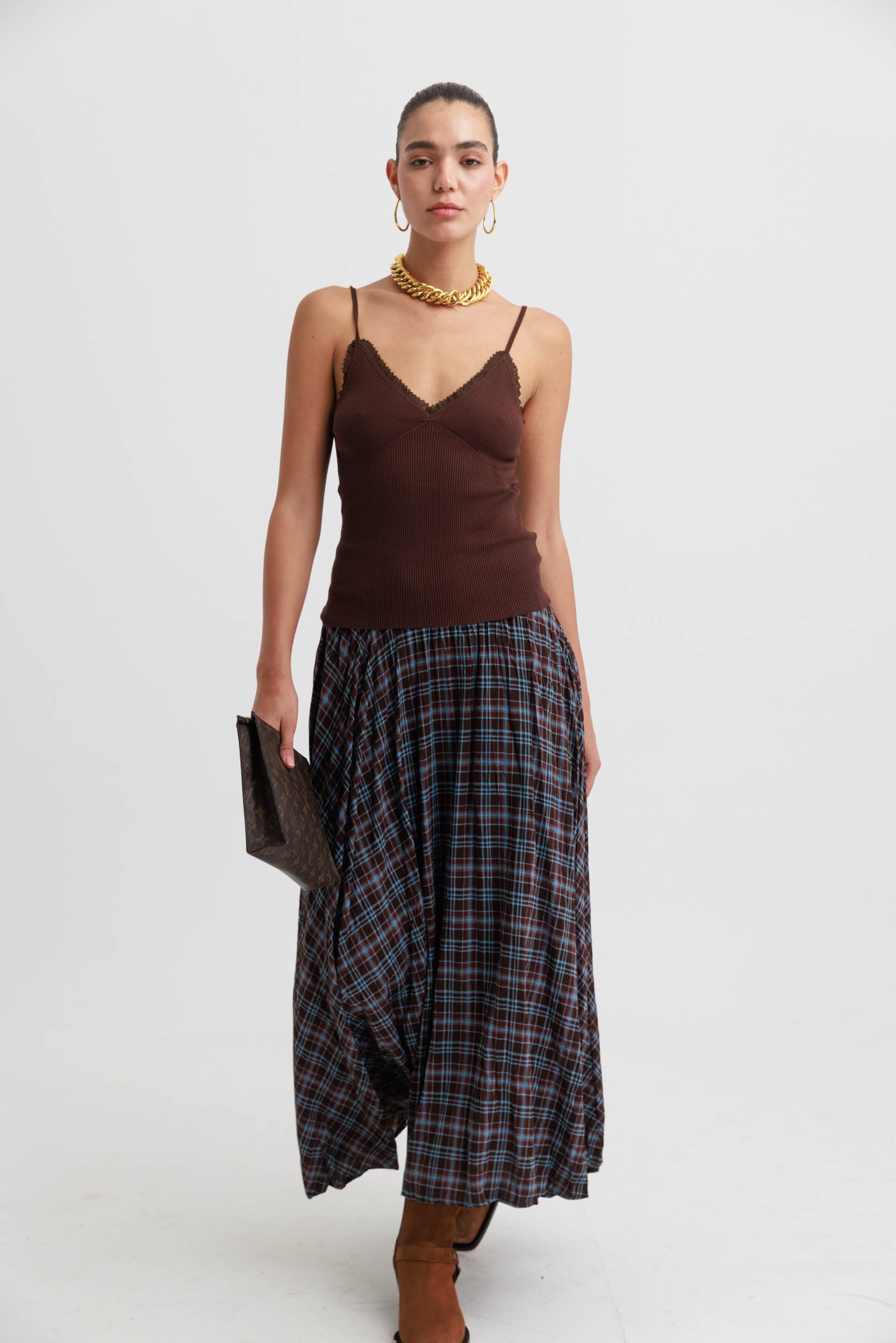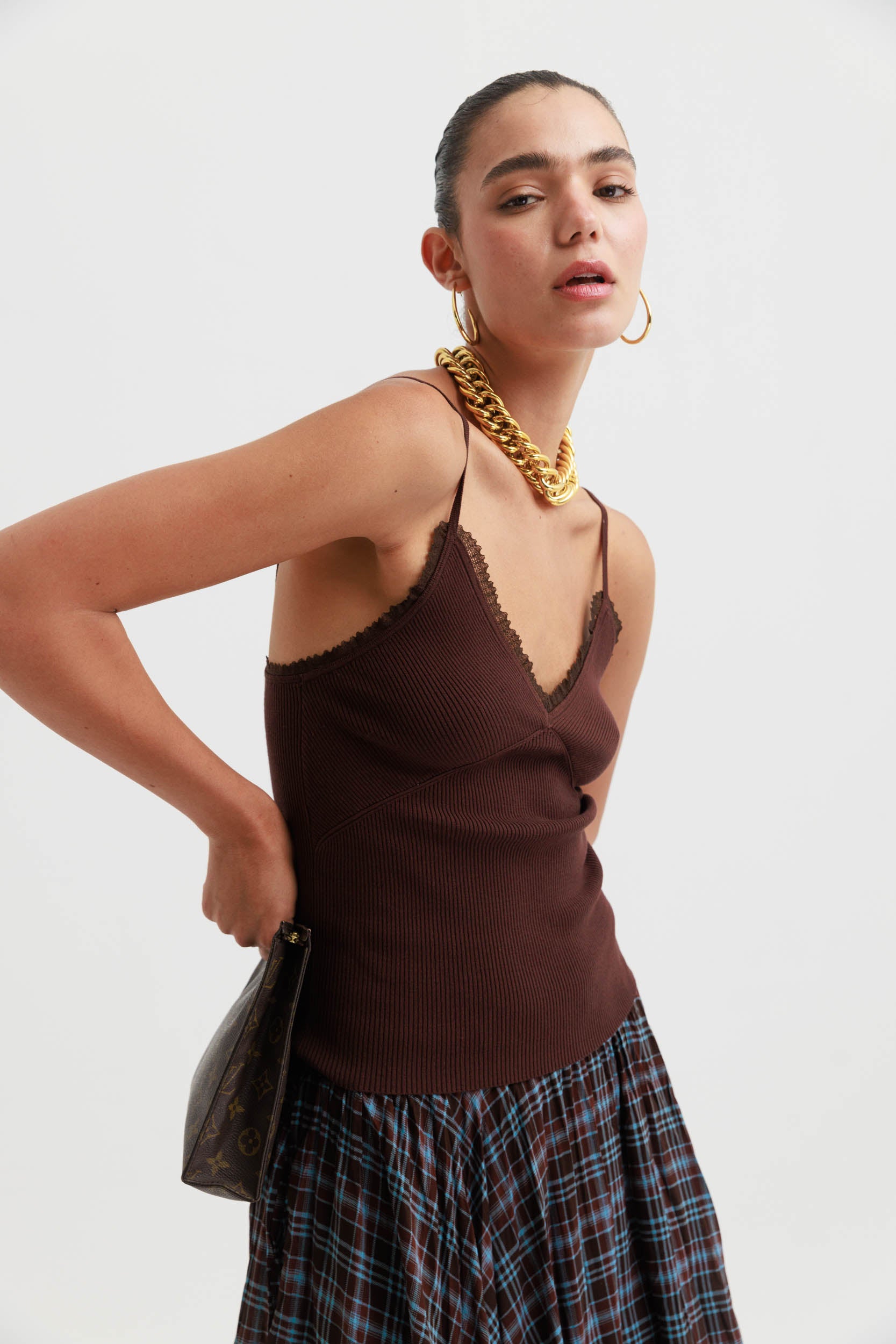 גופייה צמודה עשויה בד ריב אלסטי, בגוון חום שוקולד