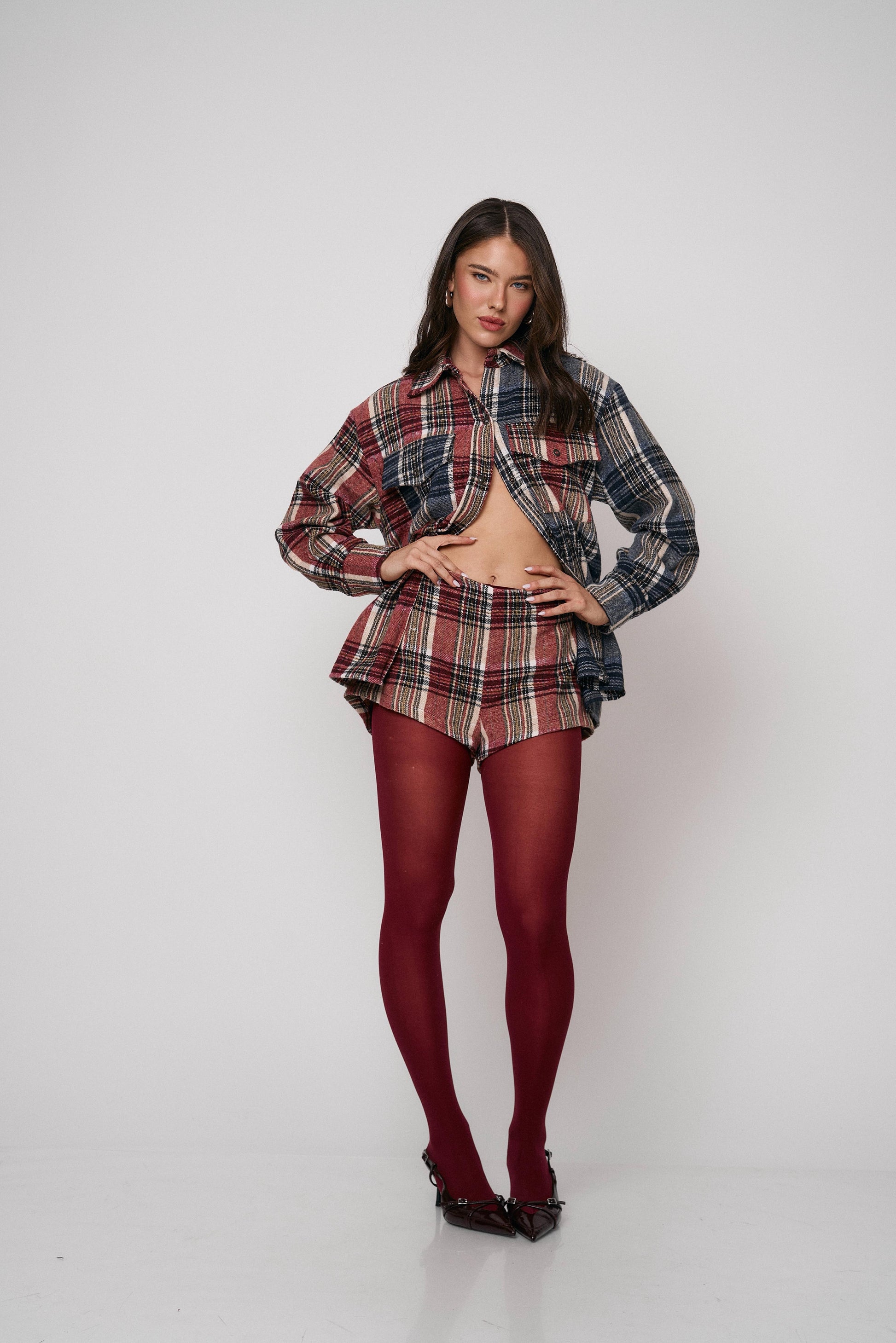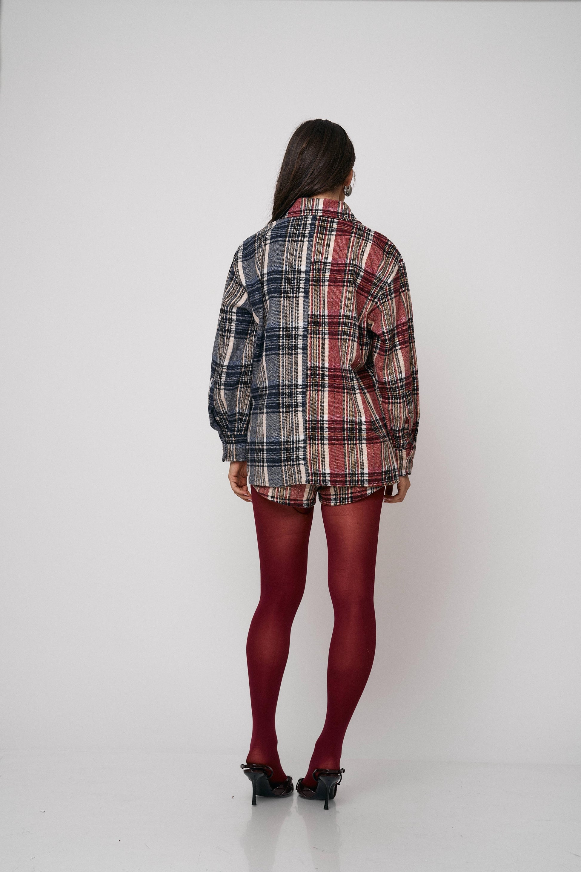 גקט פלנל קצר, מעוצב בגזרה מחמיאה עם שילובי משבצות בשני צבעים. מעניק לוק אורבני וייחודי.