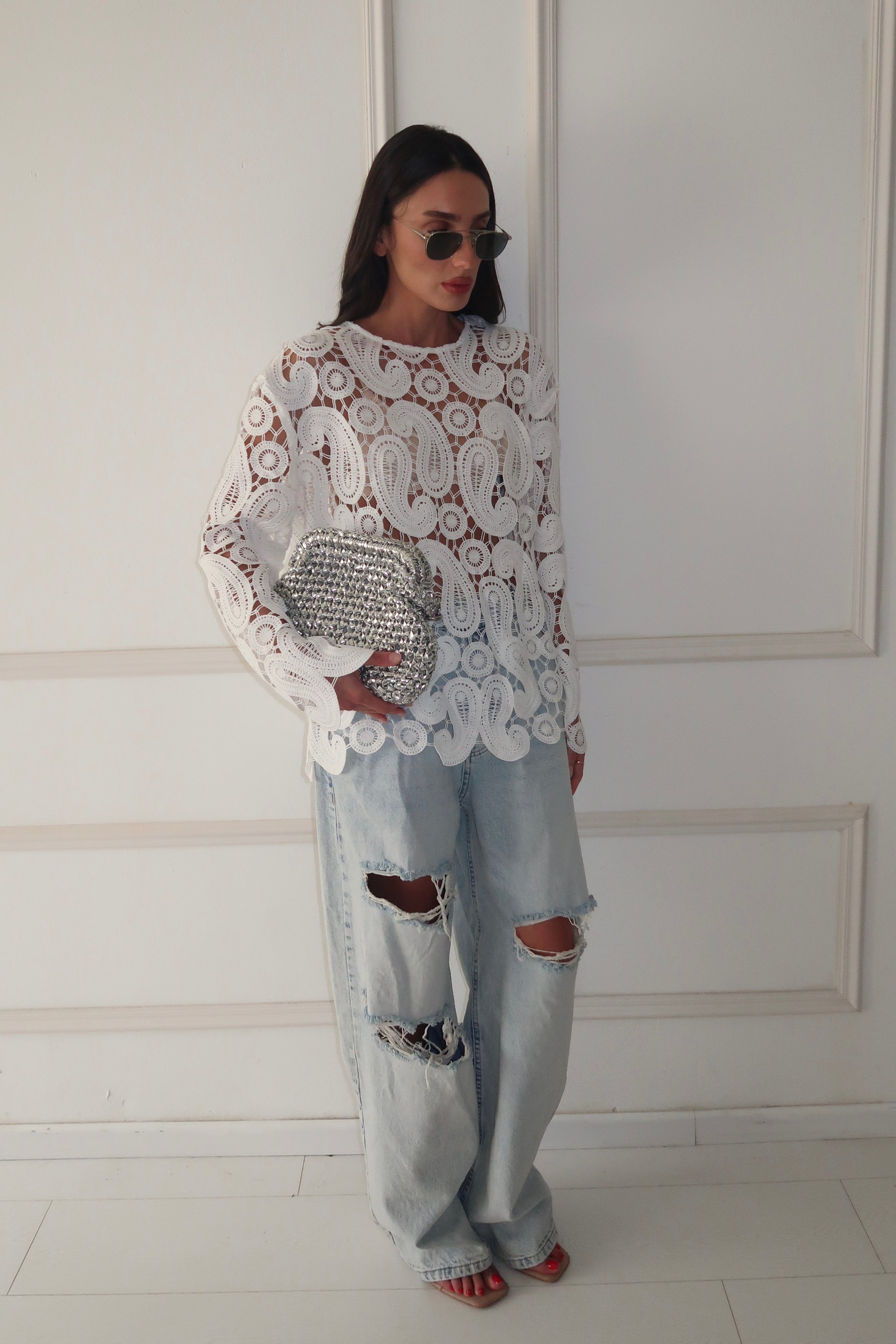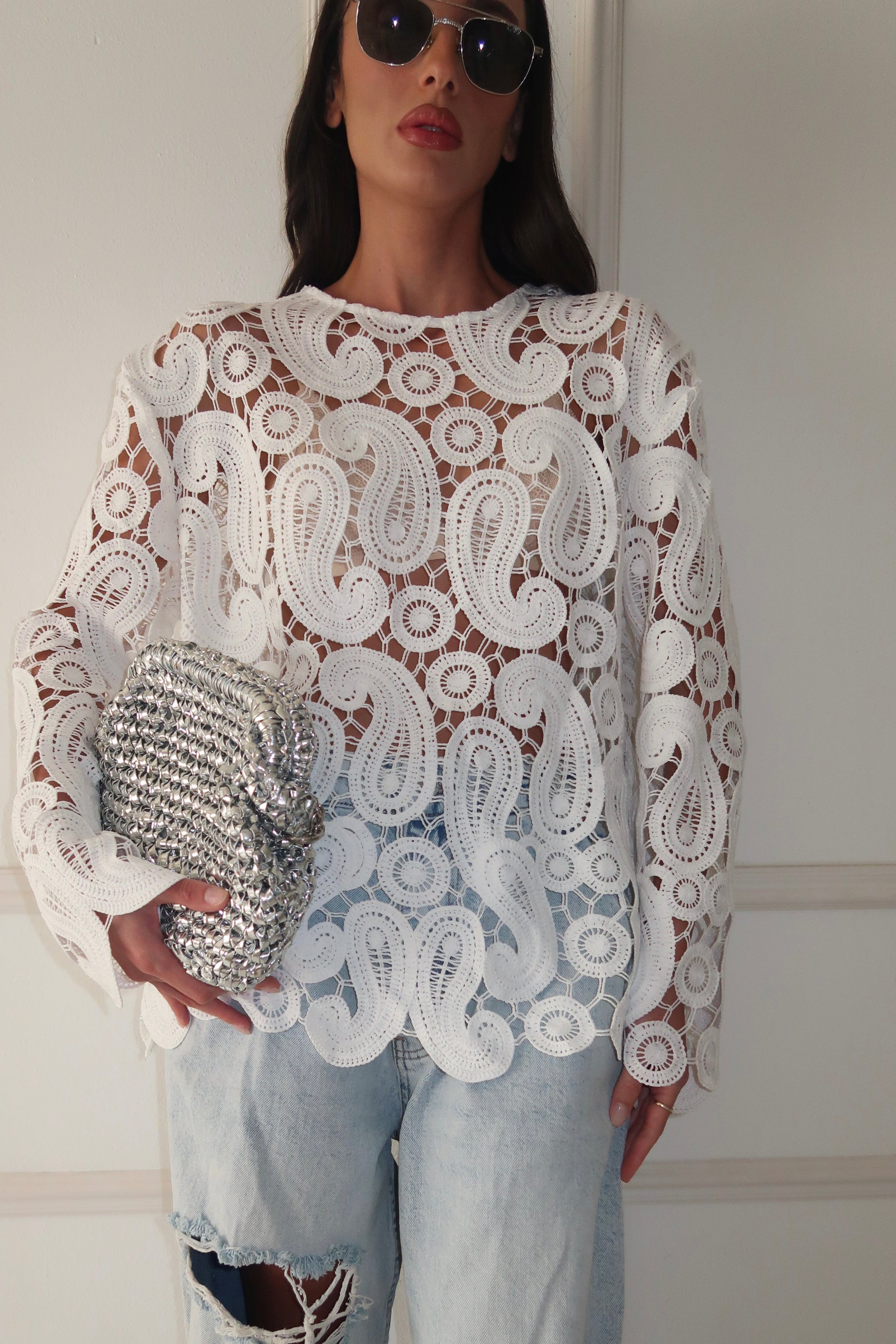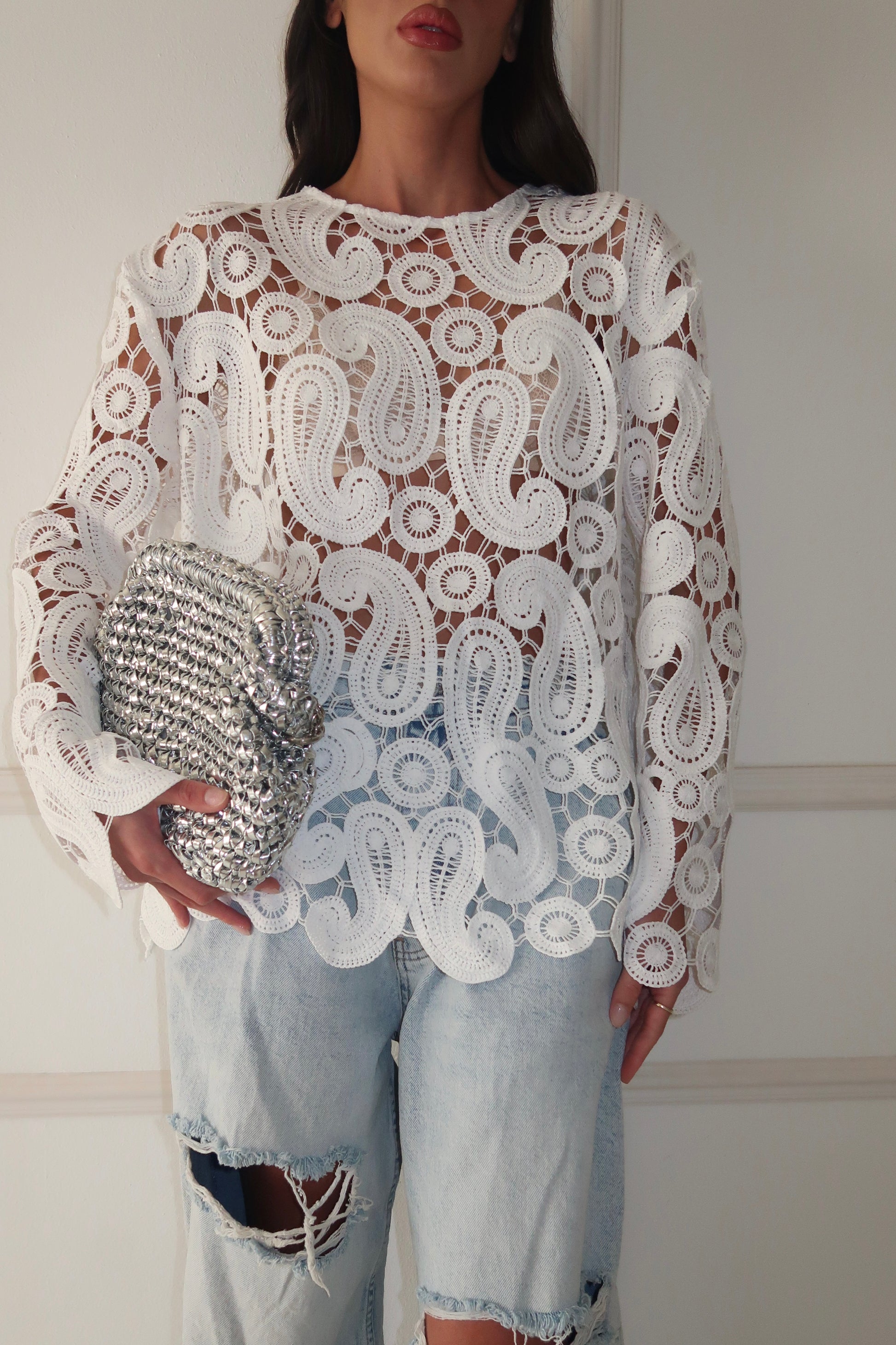 חולצת לייס שקופה עם דיטיילס גאומטריים