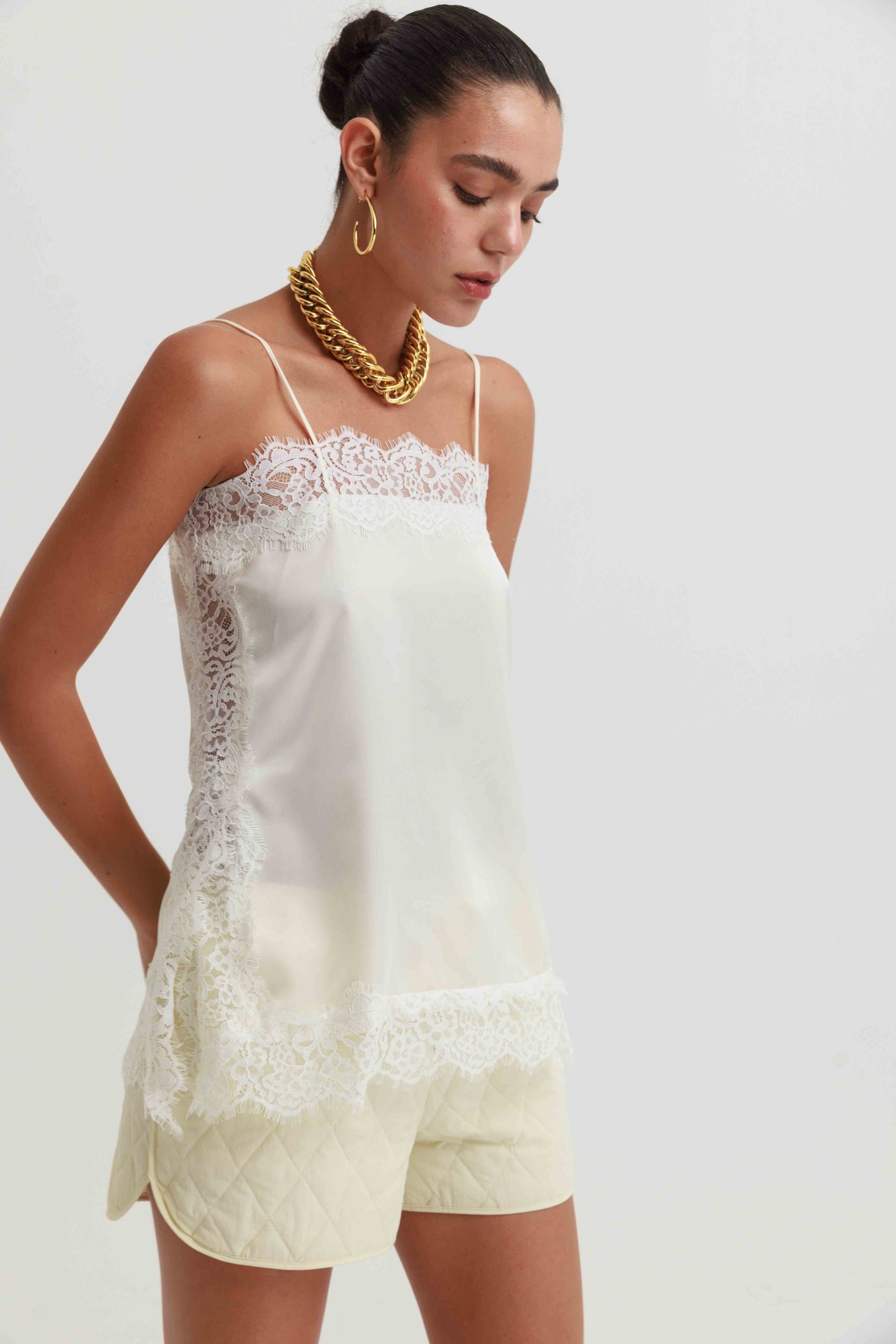 גם בשוליים התחתונים של הטופ מופיע פס תחרה תואם, היוצר מסגרת אלגנטית ונקייה