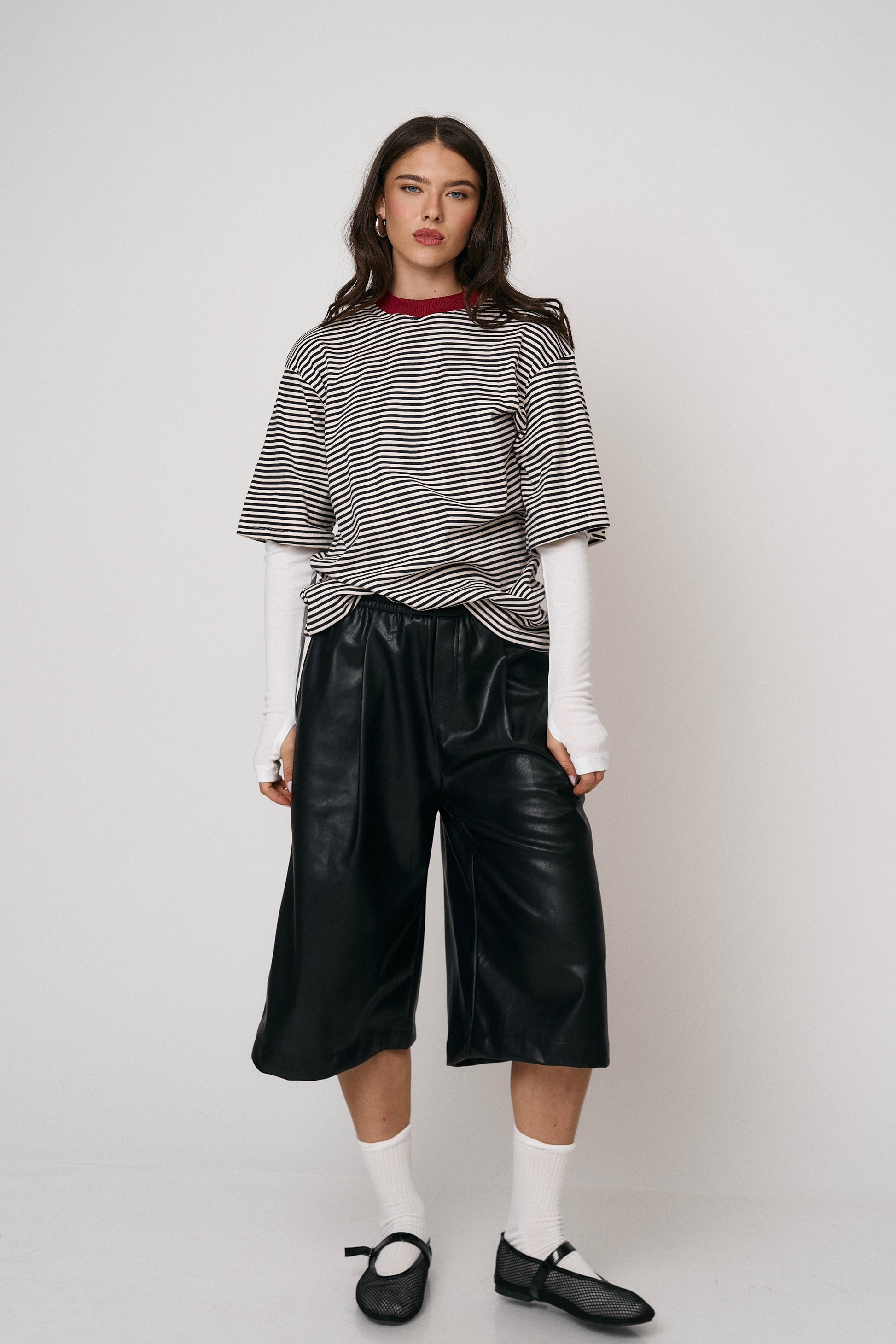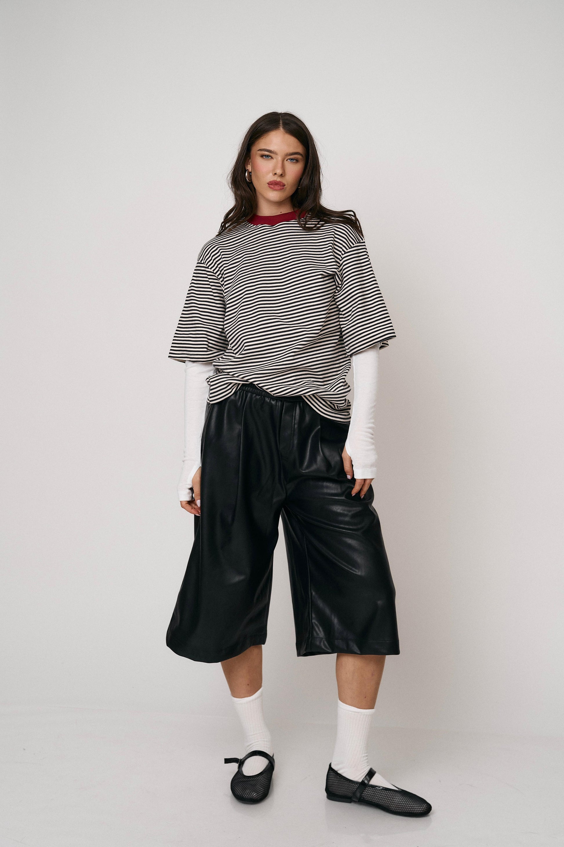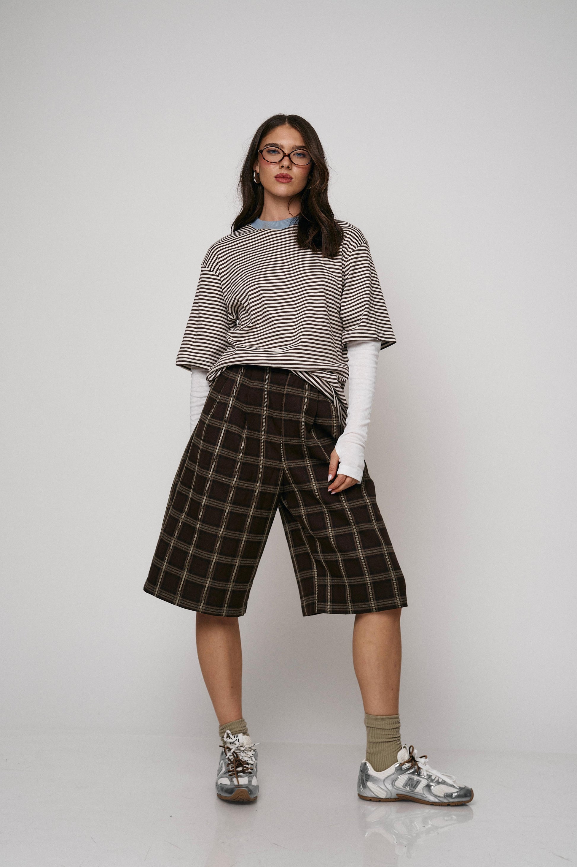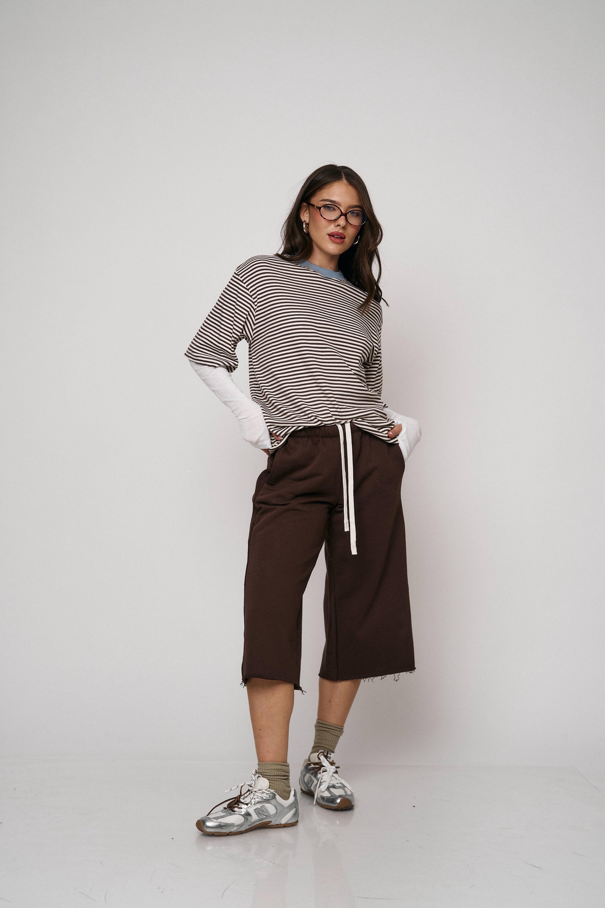 טי־שירט אוברסייז משוחררת עם פסים, מראה שכבות טרנדי ונוח, מושלם ללוק יומיומי