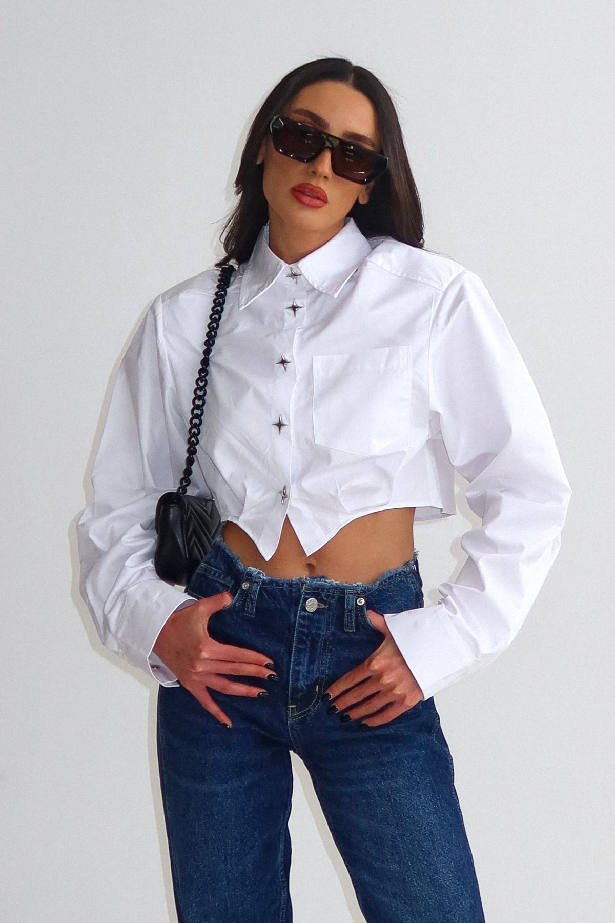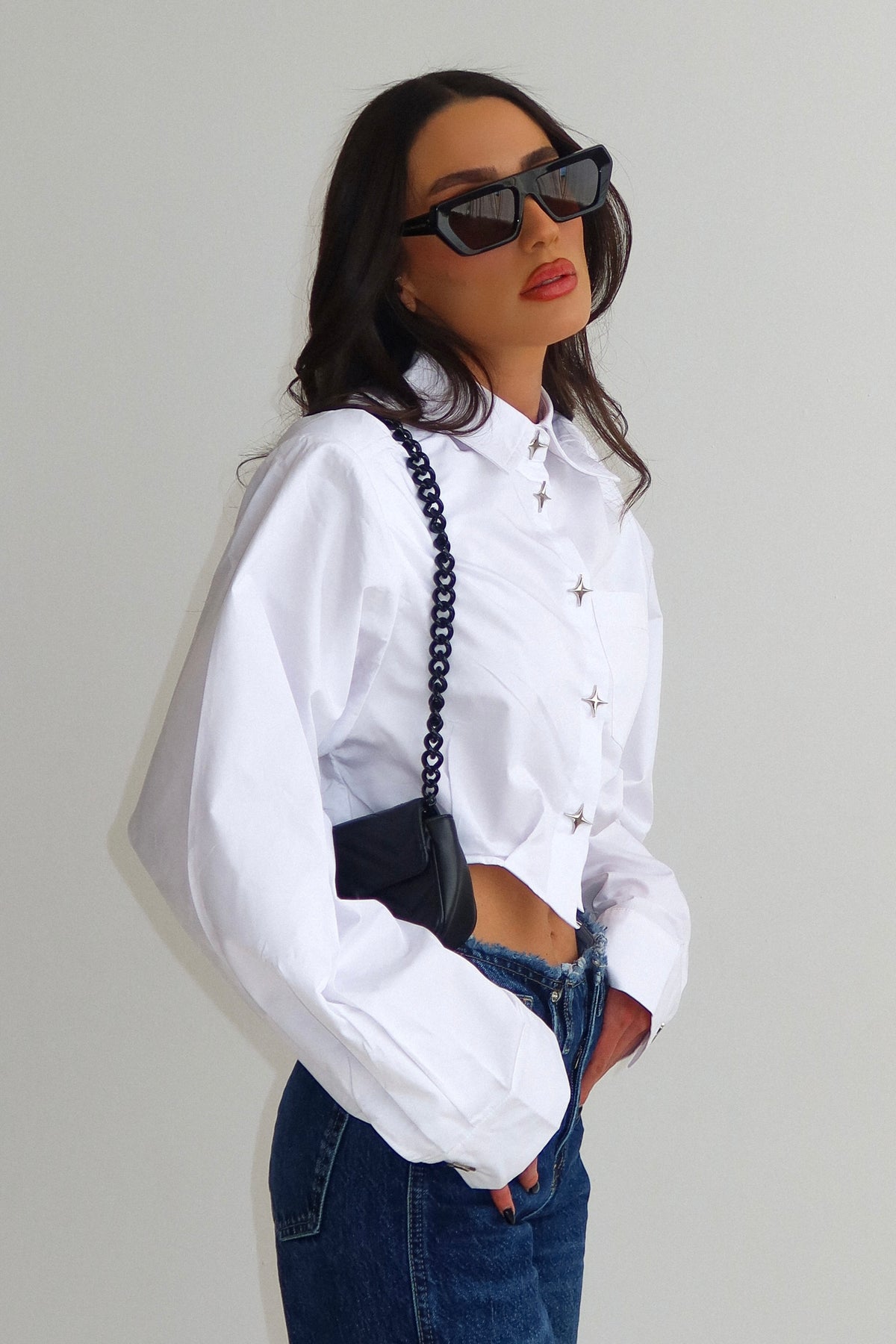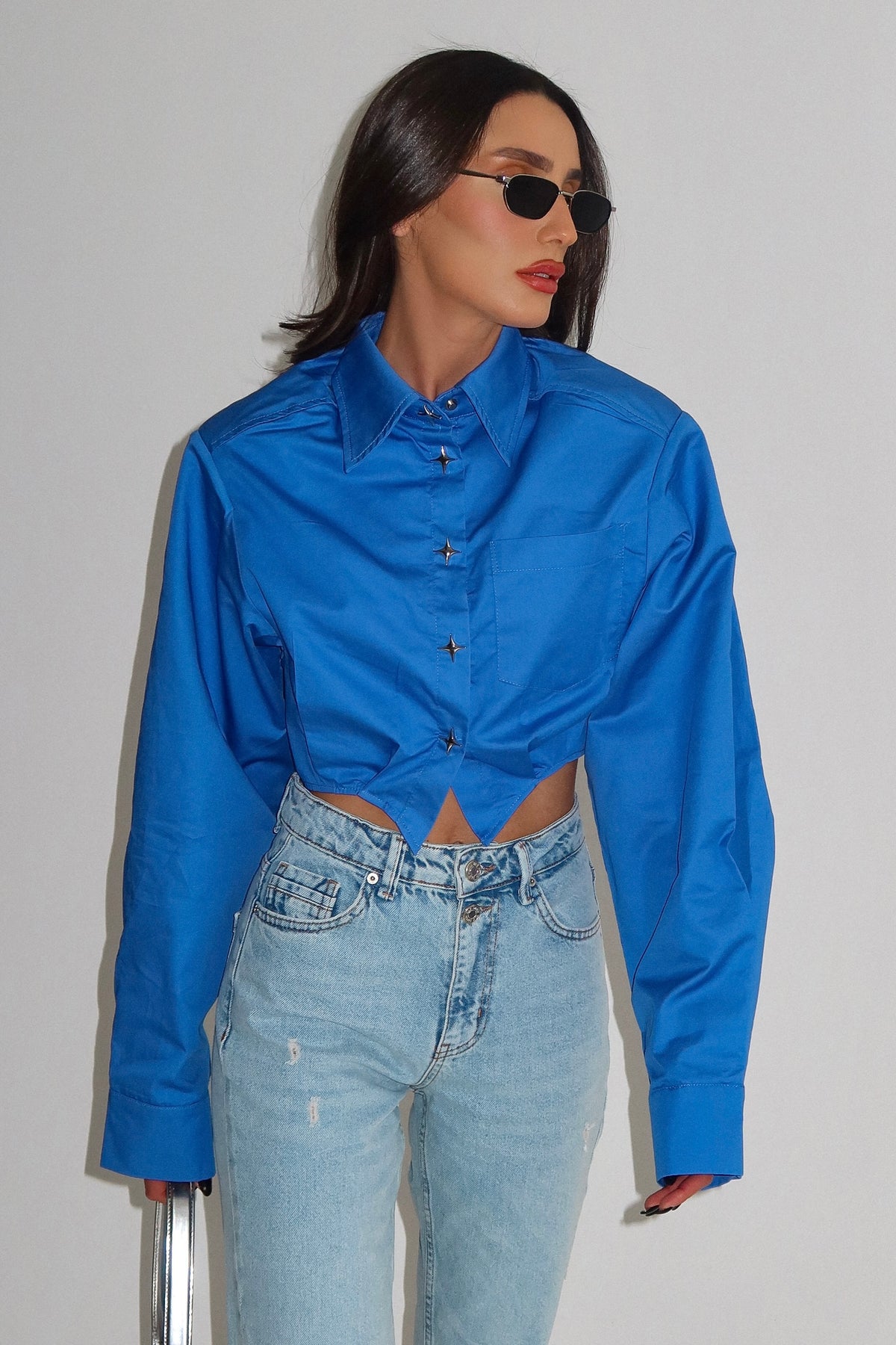 חולצת קרופ עם דייטליז בכפתורים