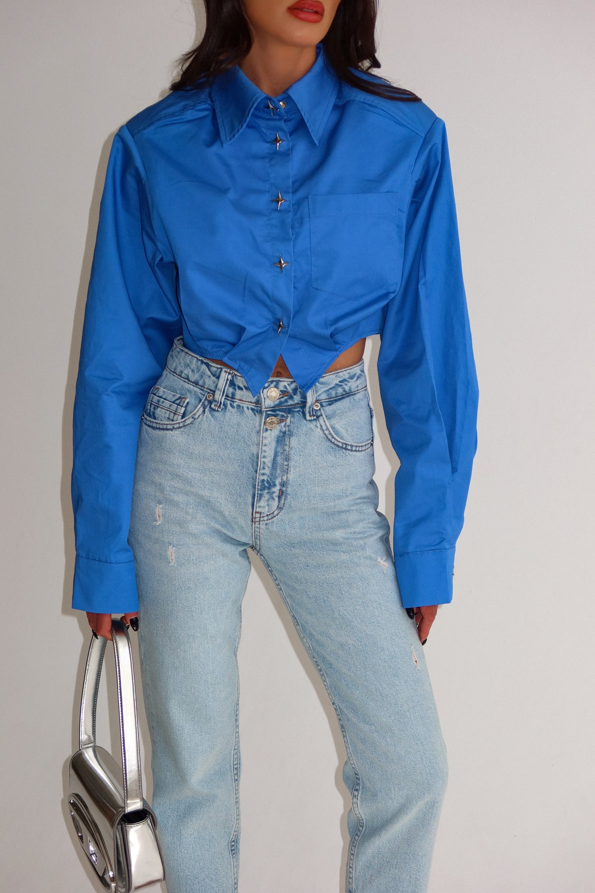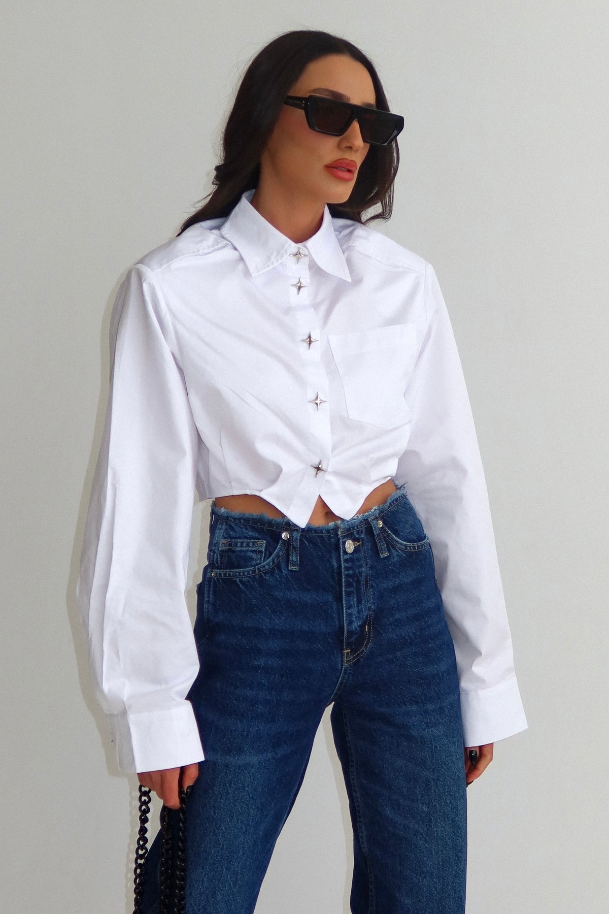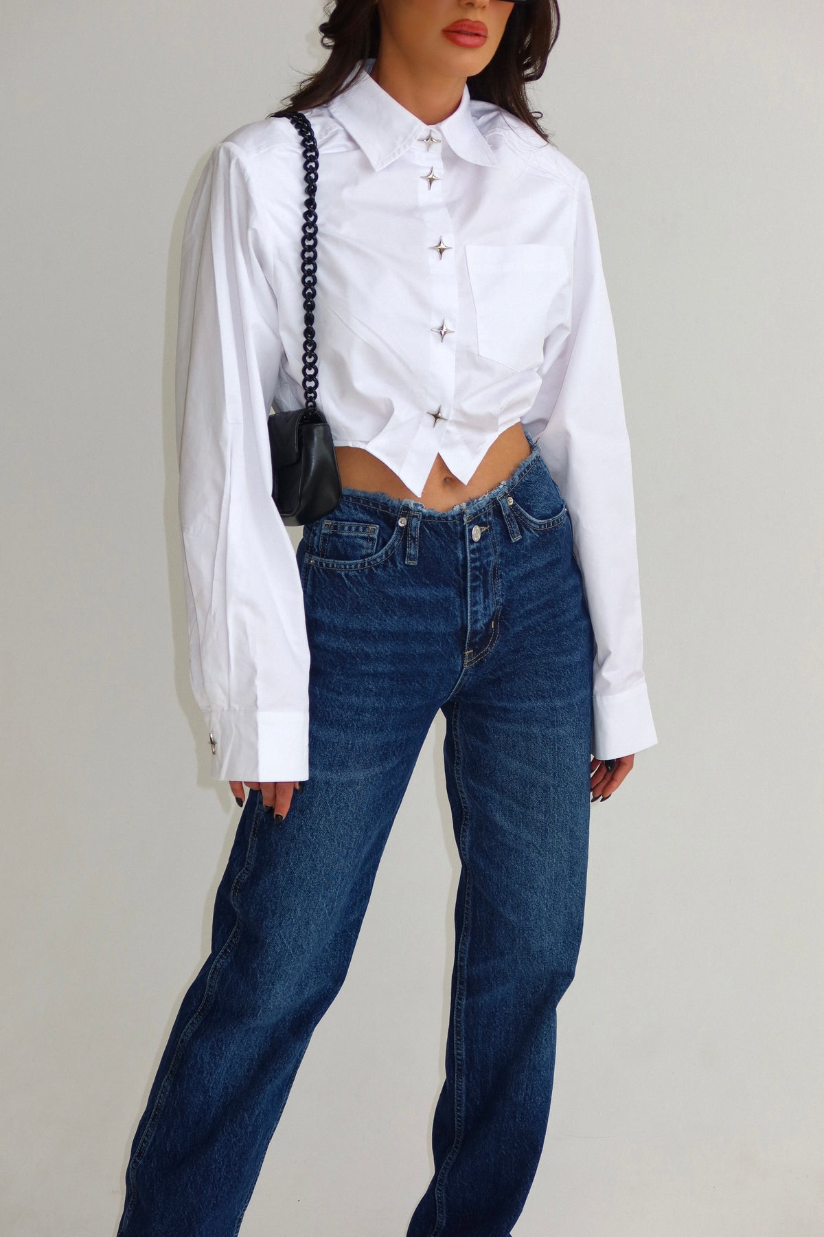 חולצת קרופ עם דייטליז בכפתורים