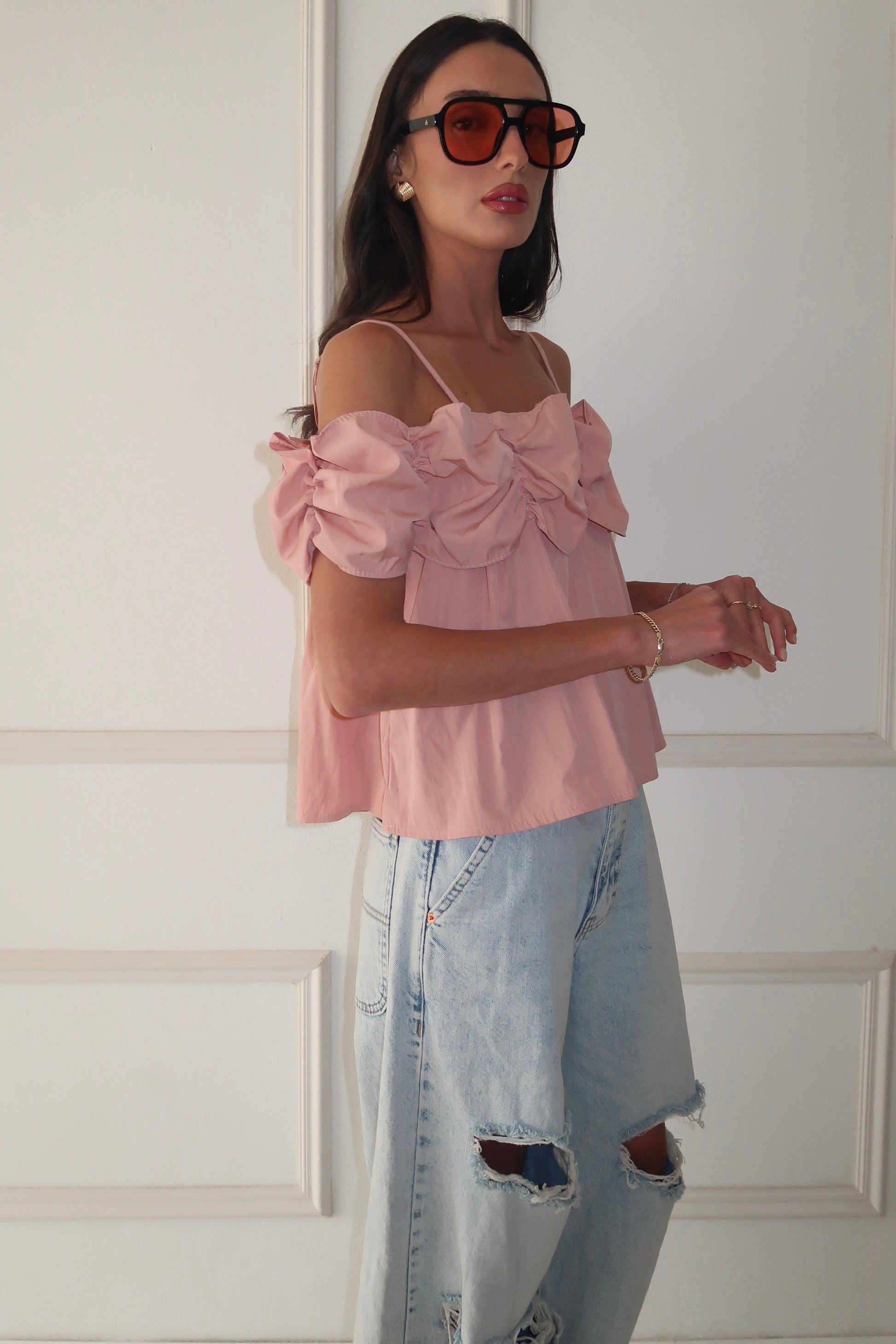 מתיקות עם טוויסט. טופ ורוד עם רפלסים דרמטיים + דנים משוחרר וקרוע = הלוק האורבני המנצח. 🌸