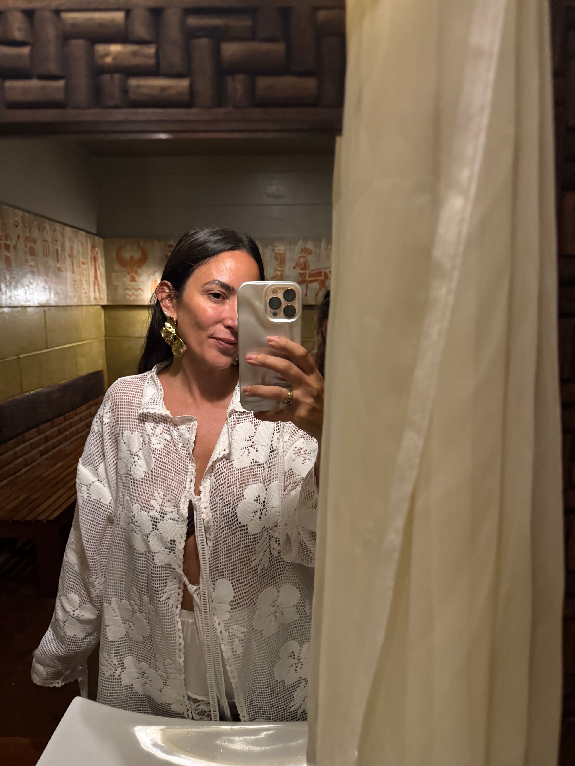 חולצת תחרה עם שרוול ארוך וקשירות בידיים