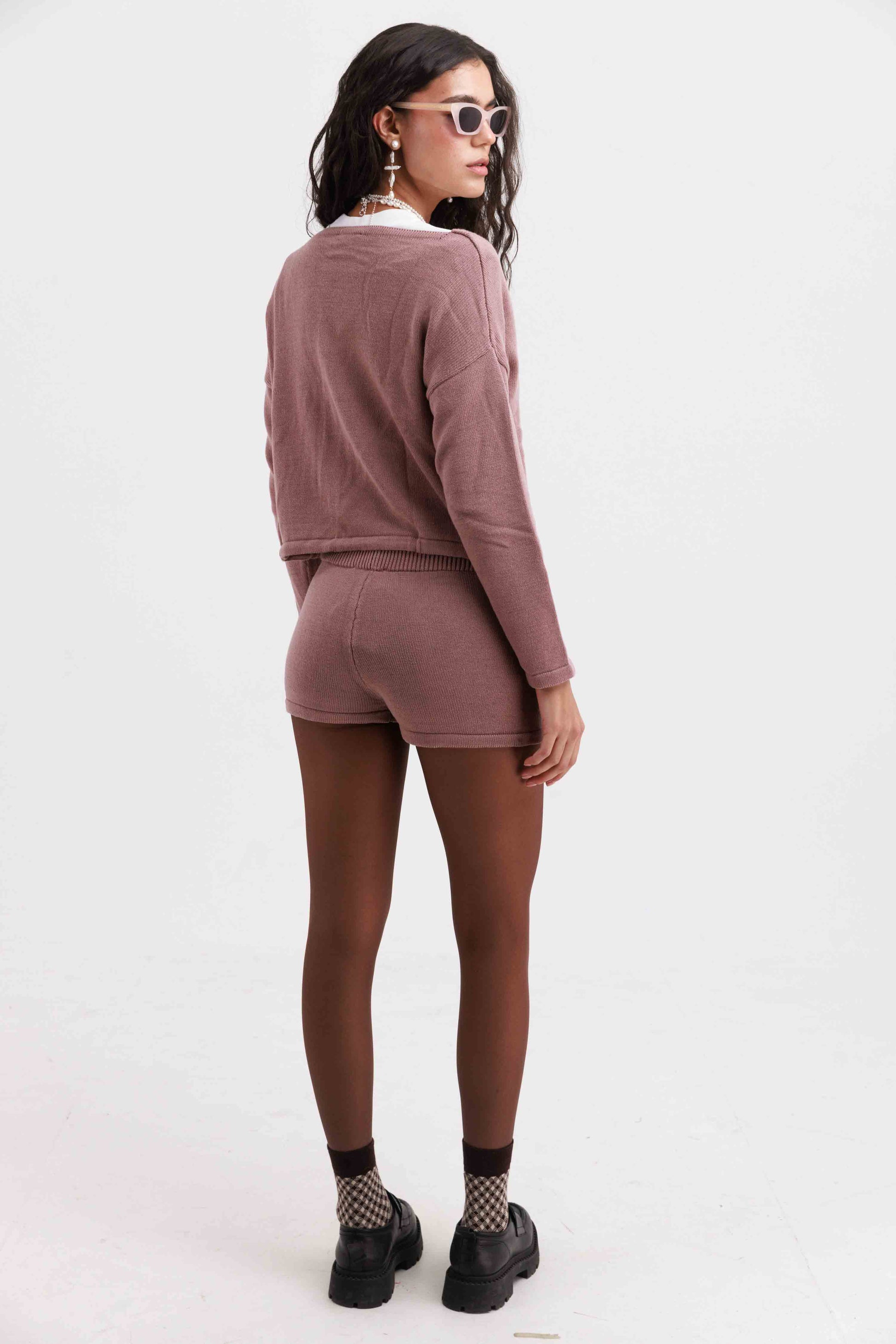 חולצת סריג מכופתרת עם שרוול ארוך ומפתח צוואר וי
