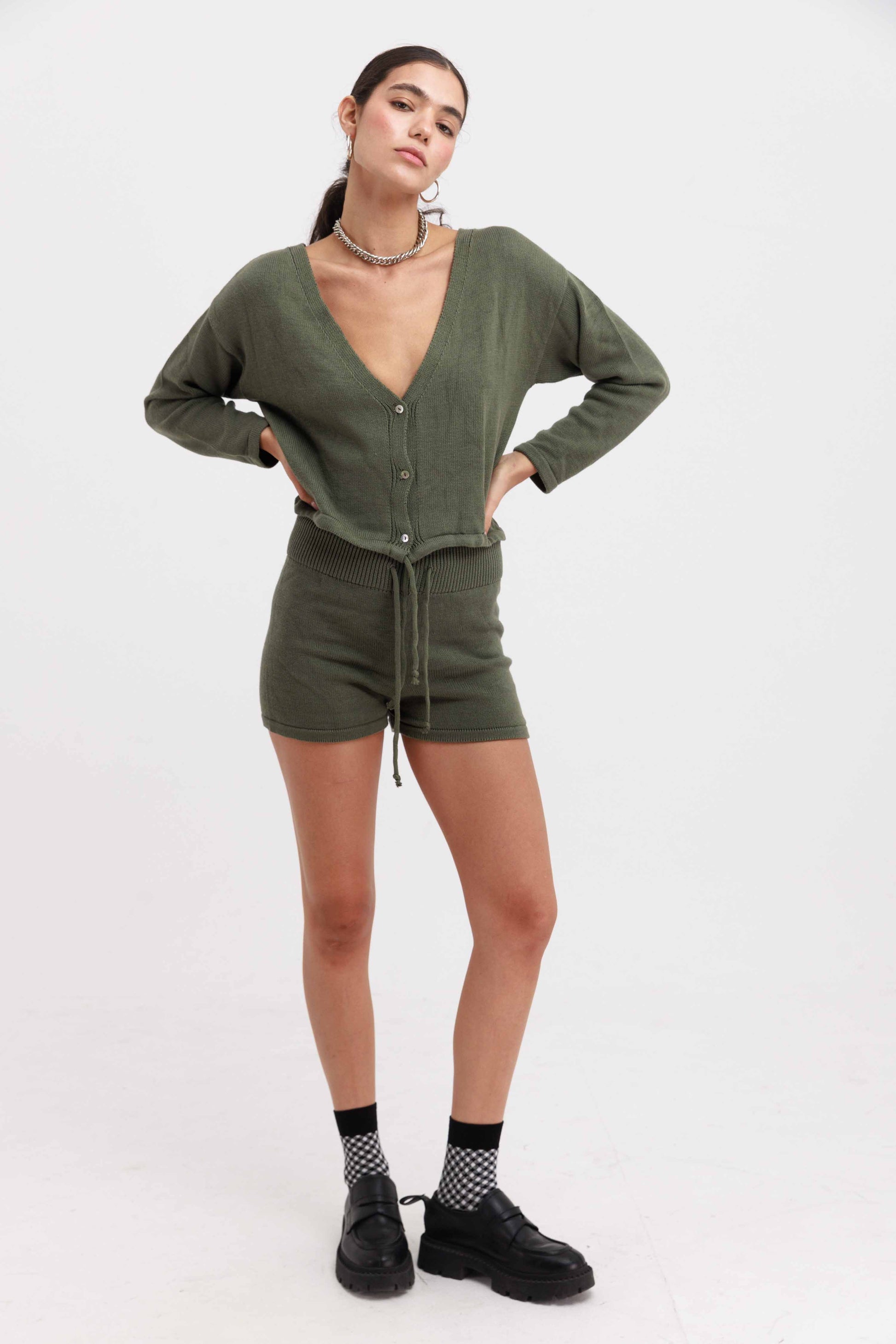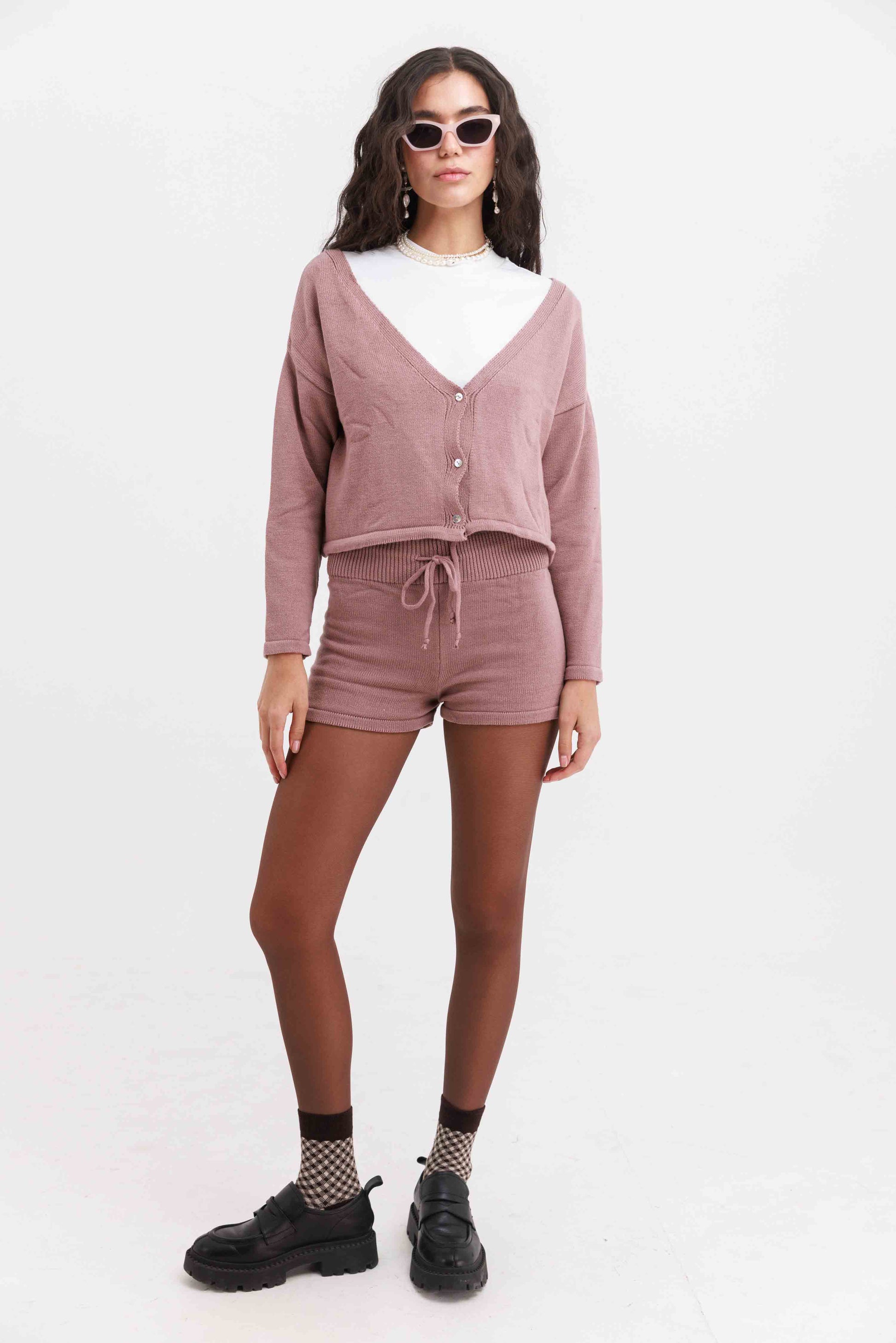 חולצת סריג מכופתרת עם שרוול ארוך ומפתח צוואר וי