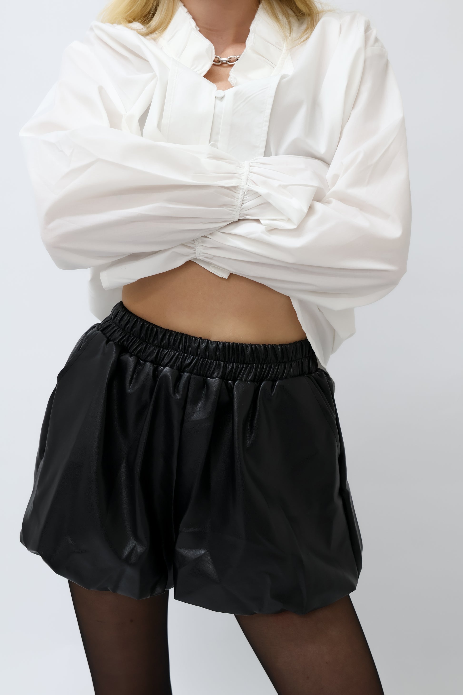 מכנסי דמוי עור קצרים בגזרת בלון עדינה עם גומי במותן