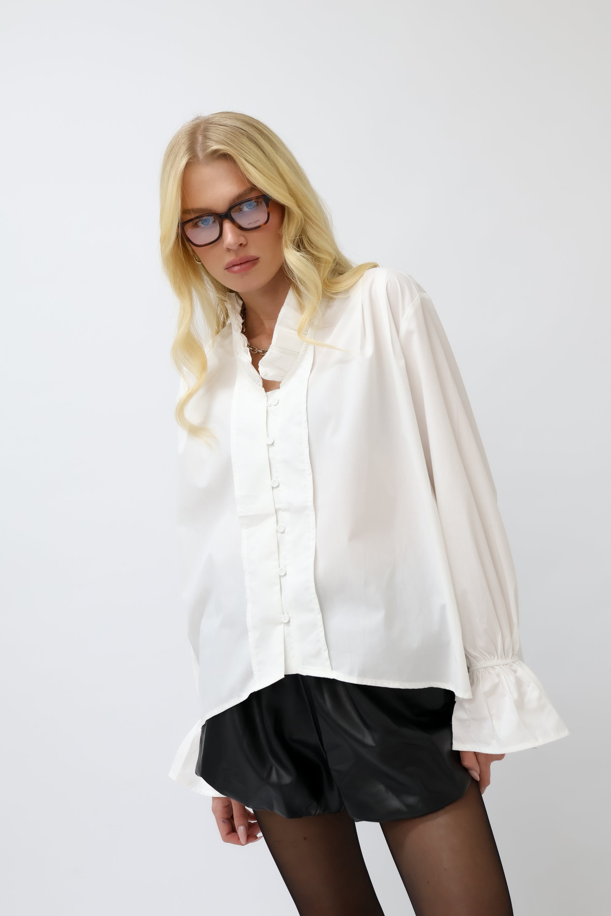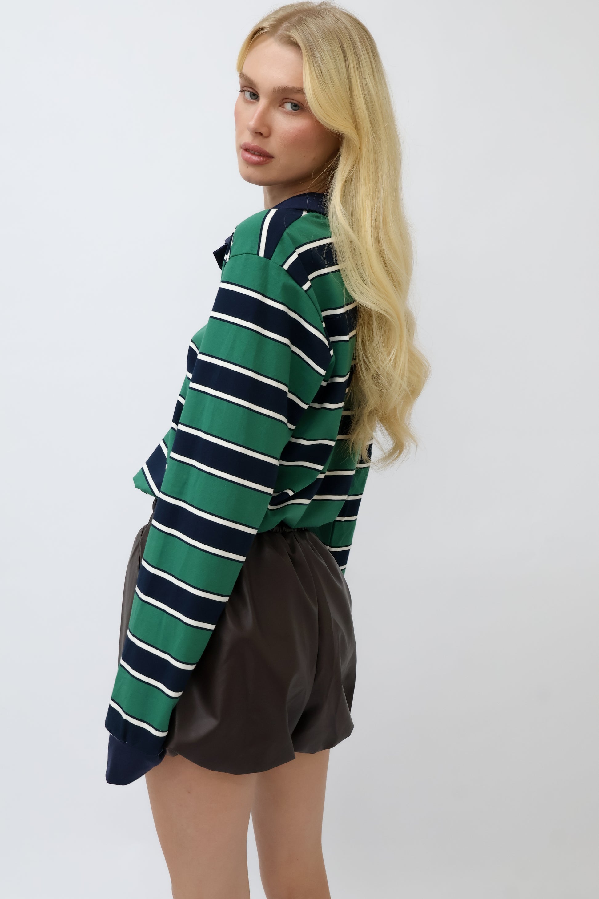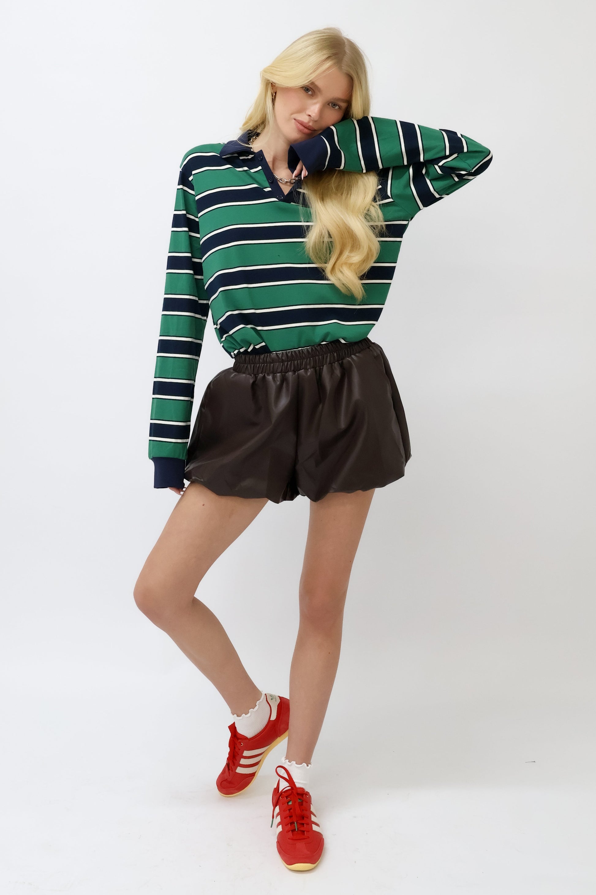 מכנסי דמוי עור קצרים בגזרת בלון עדינה עם גומי במותן