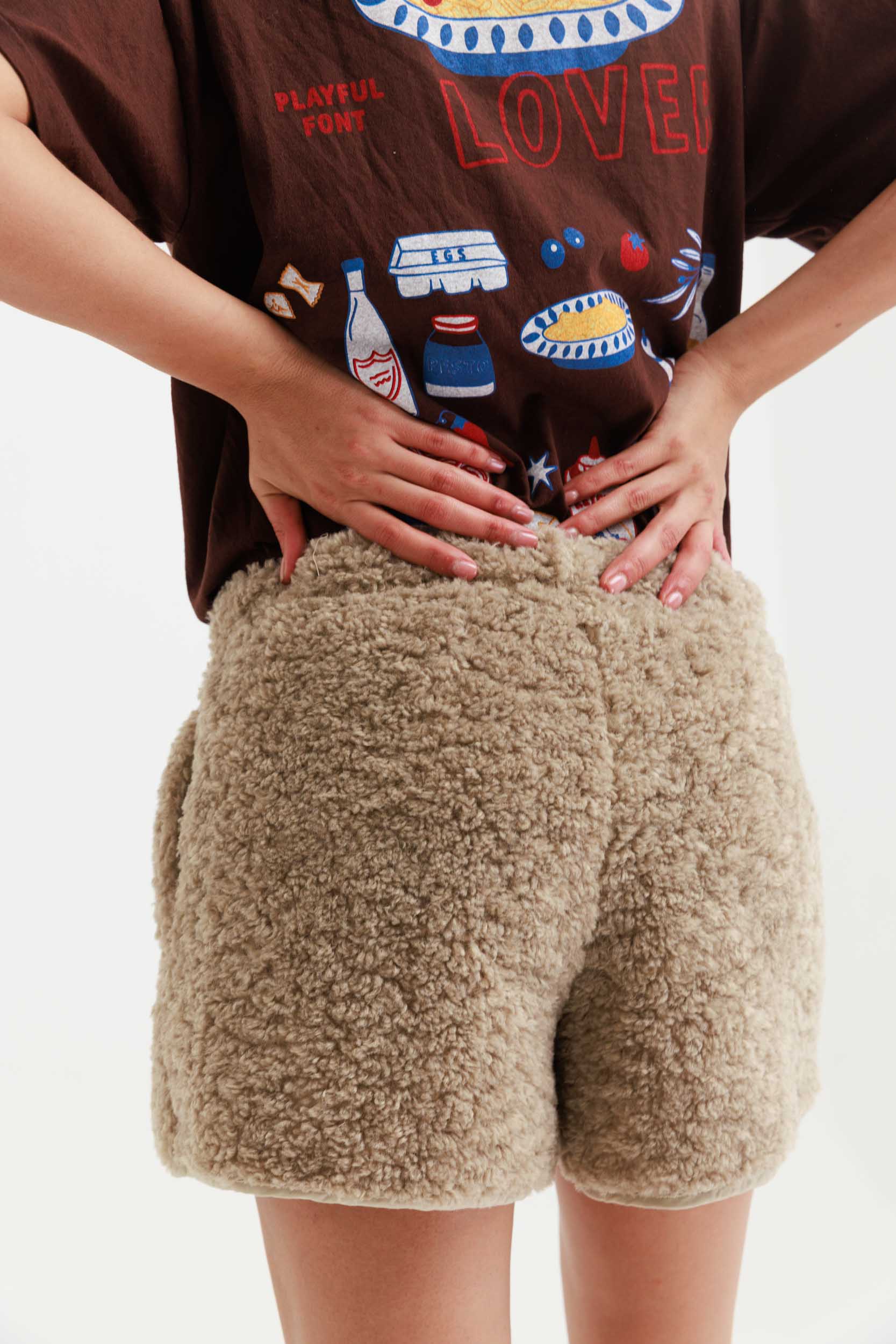 שורט קצר מבד קווילט רך ומרופד, עם תפרי מעוינים לכל אורכו